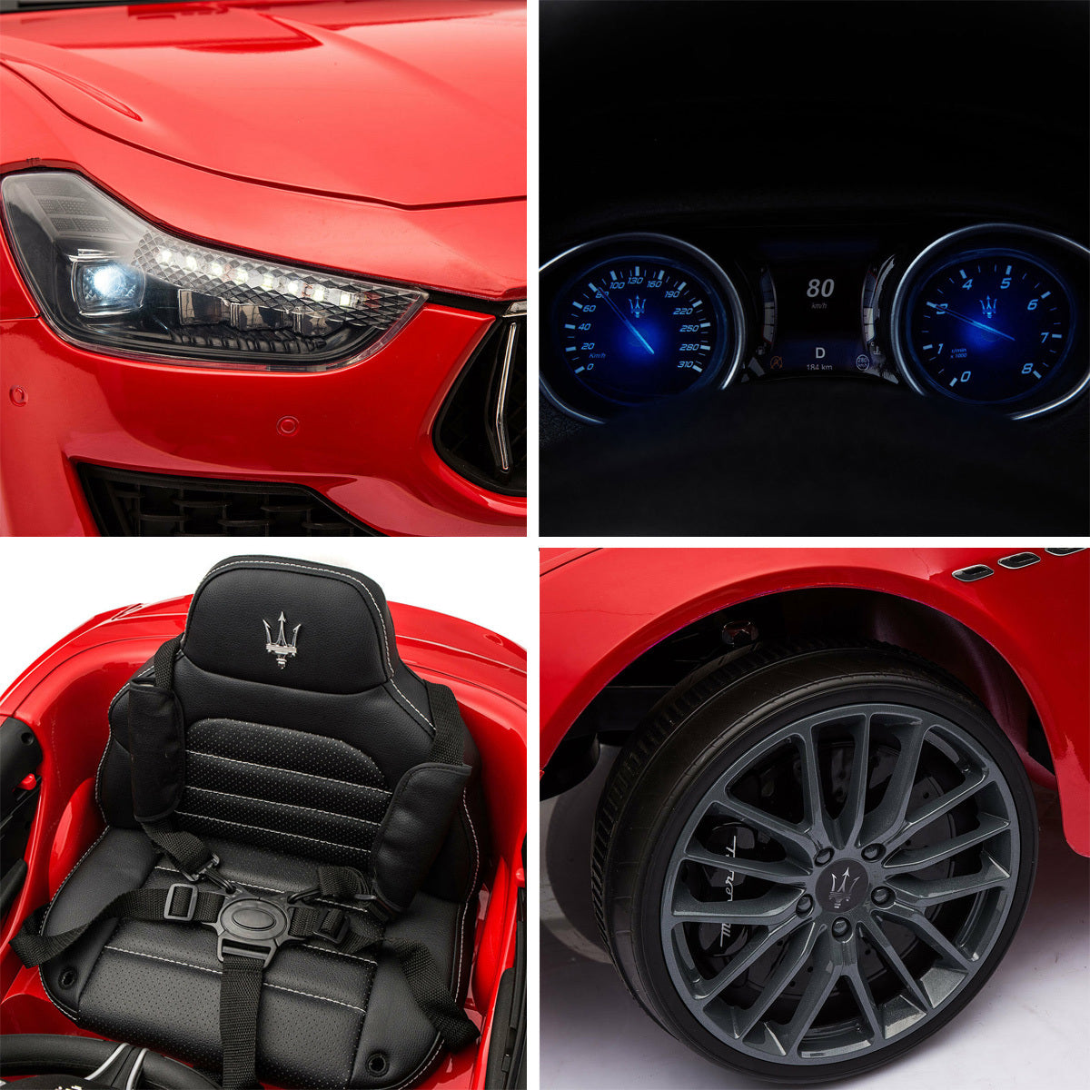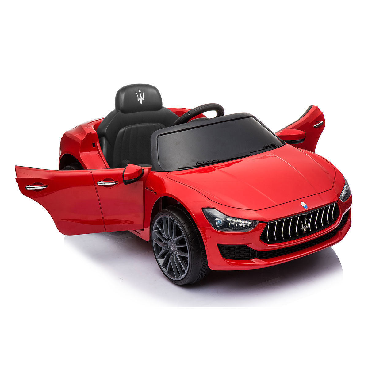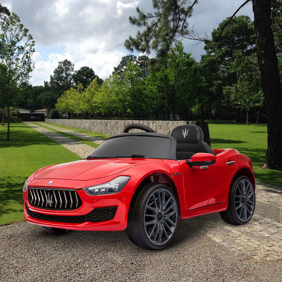 This Cfowner ride on car is officially licensed by Maserati which is a perfect gift for children. Parent can control this toy car by provided remote control, which promotes parent-child interaction. And it also allows children to freely control it to move forward or backward. Just press the foot pedal and go! Whether it is brick road or cement road. Made from high-quality PP material, it is both kid-friendly and durable. Multifunctional ride on car, with build-in music, horn, story, headlights, and taillights, makes the ride more enjoyable. Moreover, featuring MP3 interface, USB port and TF card slot, it also allows you to connect to your own device to play music for your children. While offering endless fun, it also ensures your childrenâs safety. The spacious seat with safety belt and 2 openable doors with safety lock together provide safe and smooth ride. It is worth mentioning that the retractable handle and wheels help you transport the electric vehicle when not running. Let our ride on car satisfy your little driverâs dream of being a real road adventurer!