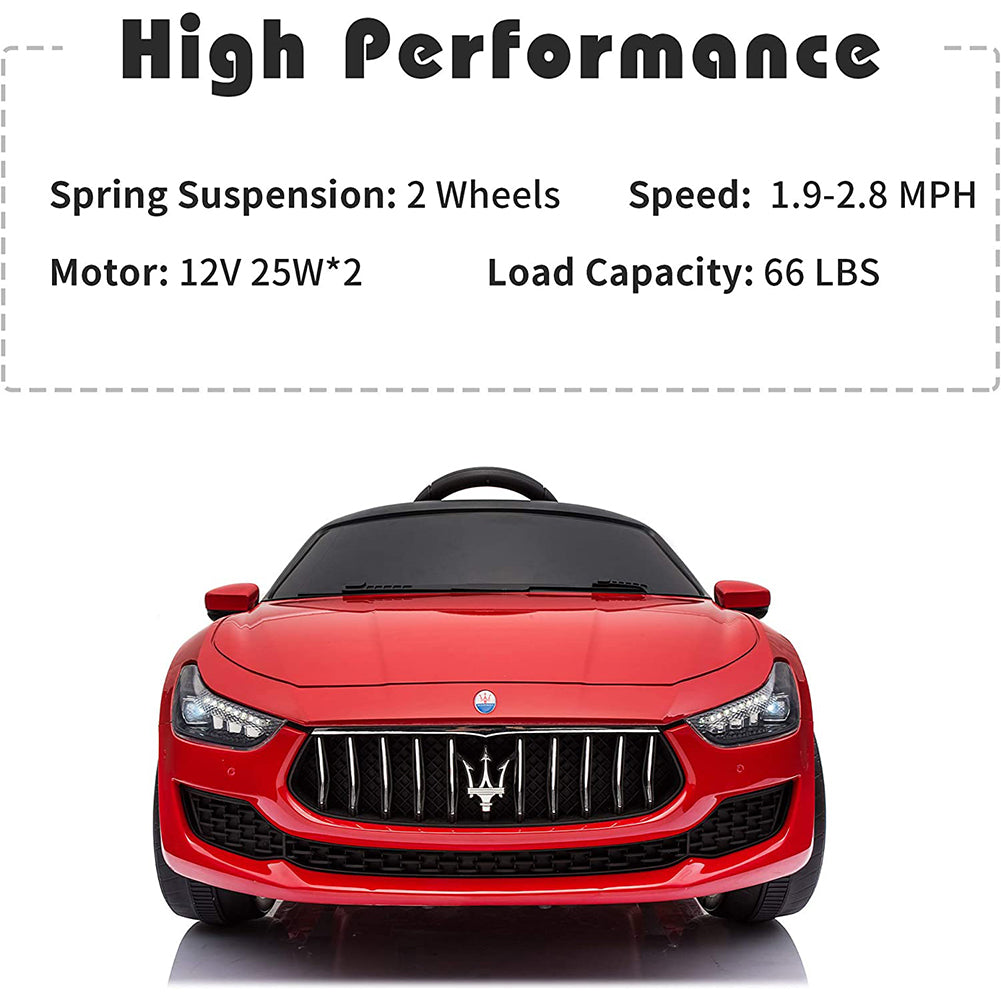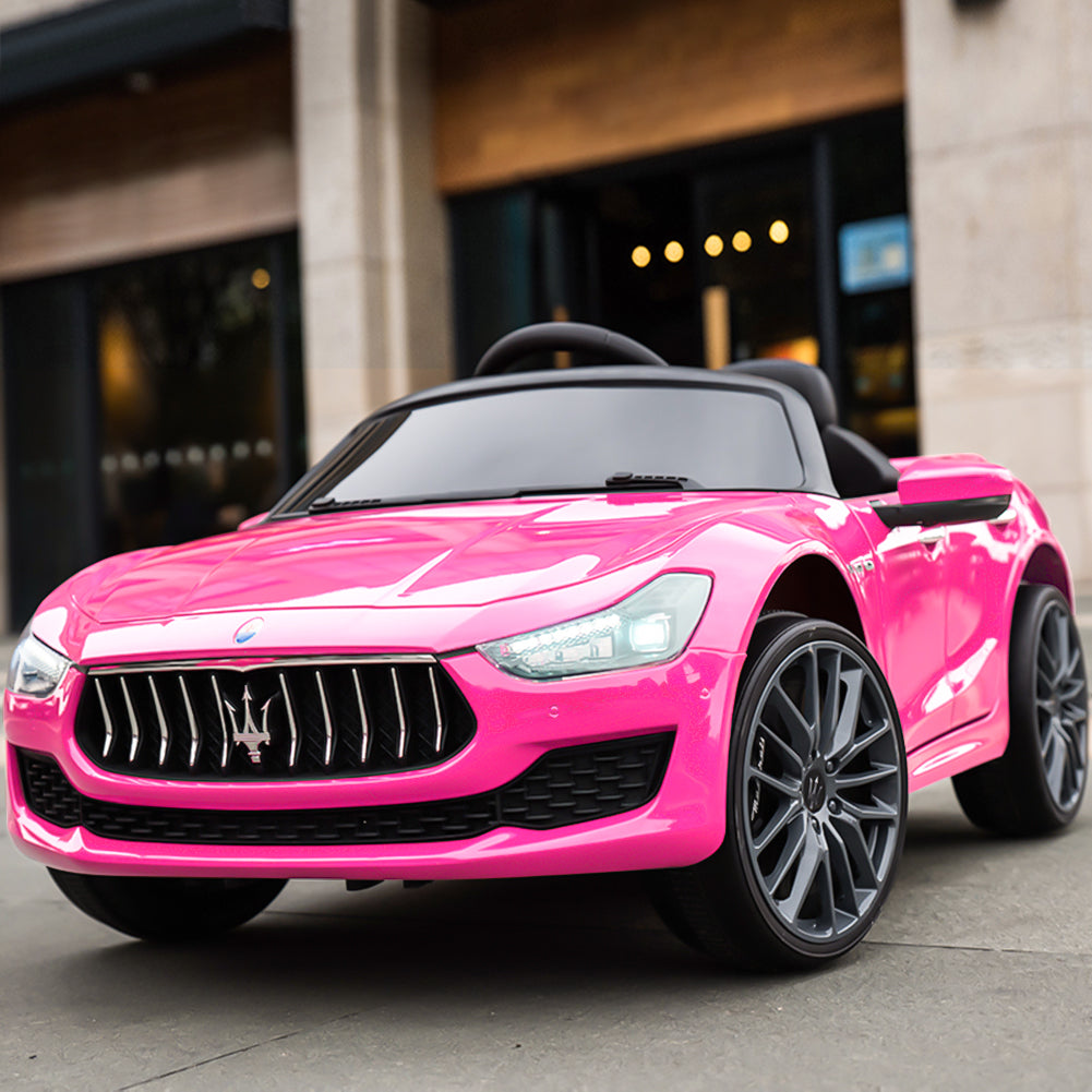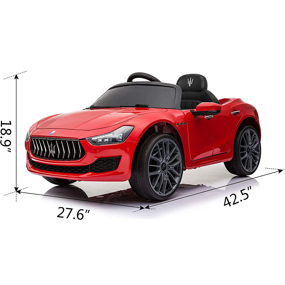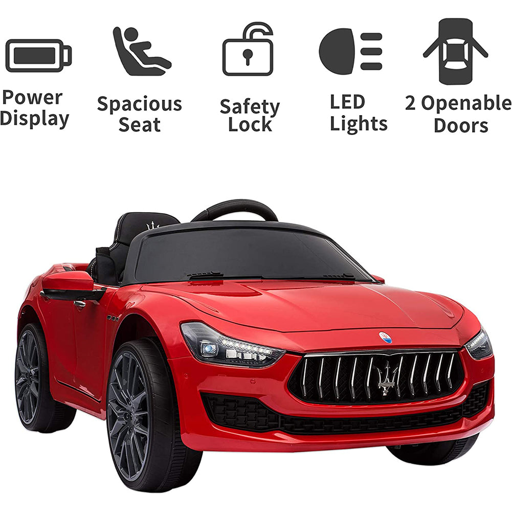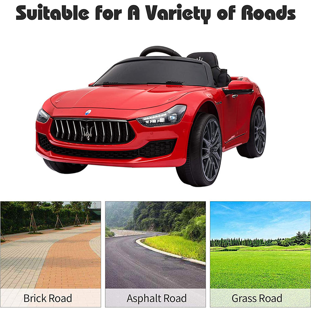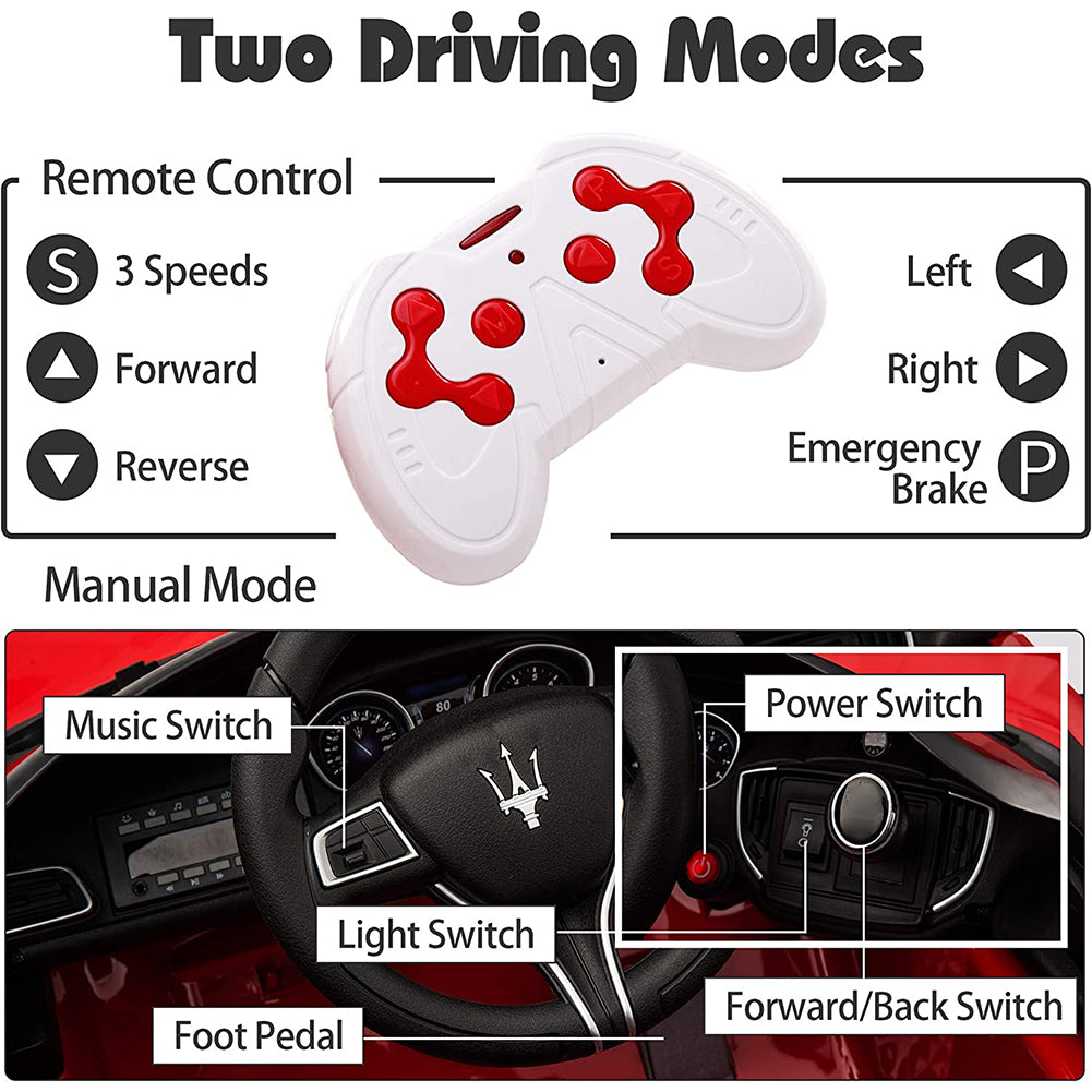 This Cfowner ride-on car is officially licensed by Maserati which is a perfect gift for children. A parent can control this toy car by providing remote control, which promotes parent-child interaction. And it also allows children to freely control it to move forward or backward. Just press the foot pedal and go! Whether it is a brick road or a cement road. Made from high-quality PP material, it is both kid-friendly and durable. A multifunctional ride-on car, with build-in music, horn, story, headlights, and taillights, makes the ride more enjoyable. Moreover, featuring an MP3 interface, USB port, and TF card slot, it also allows you to connect to your own device to play music for your children. While offering endless fun, it also ensures your children’s safety. The spacious seat with a safety belt and 2 openable doors with safety locks together with providing a safe and smooth ride. It is worth mentioning that the retractable handle and wheels help you transport the electric vehicle when not running. Let our ride-on car satisfy your little driver’s dream of being a real road adventurer!