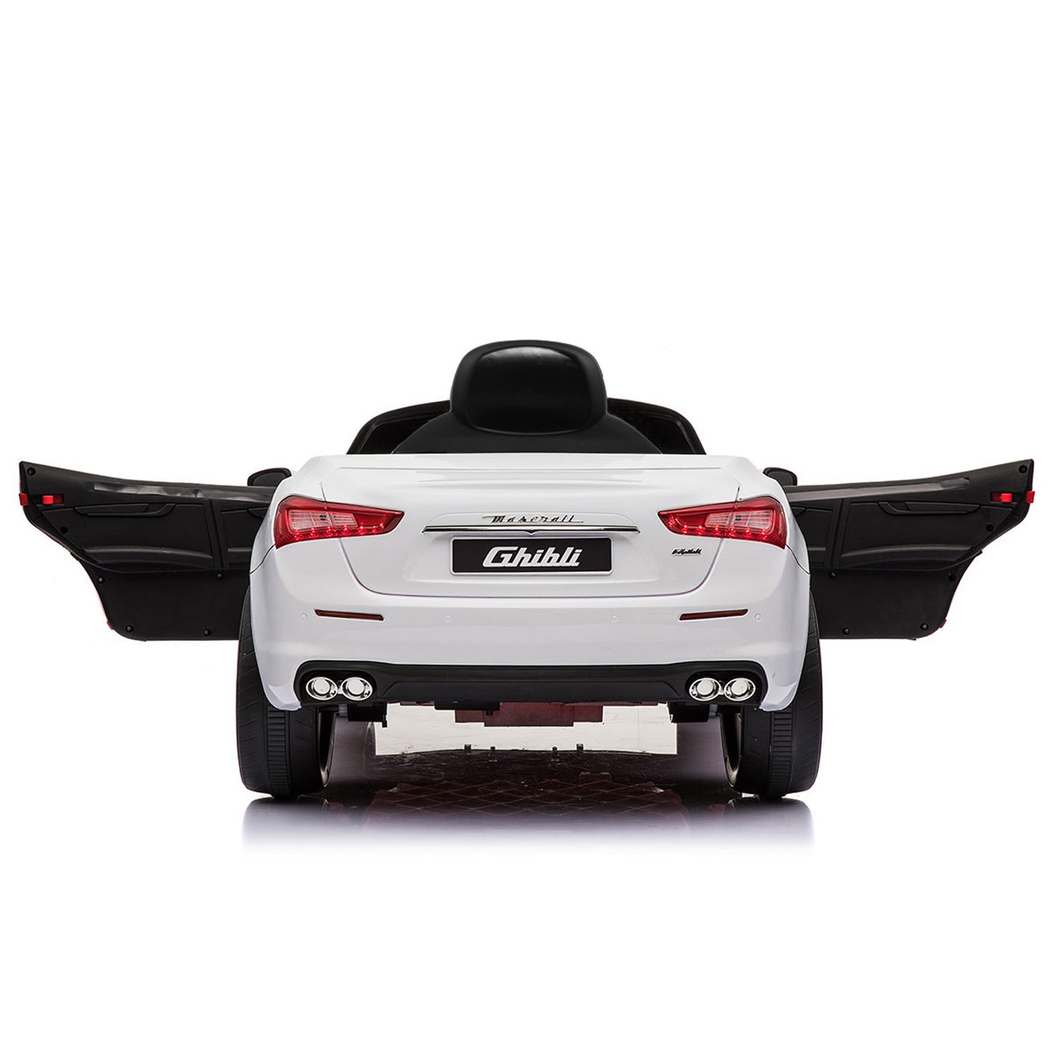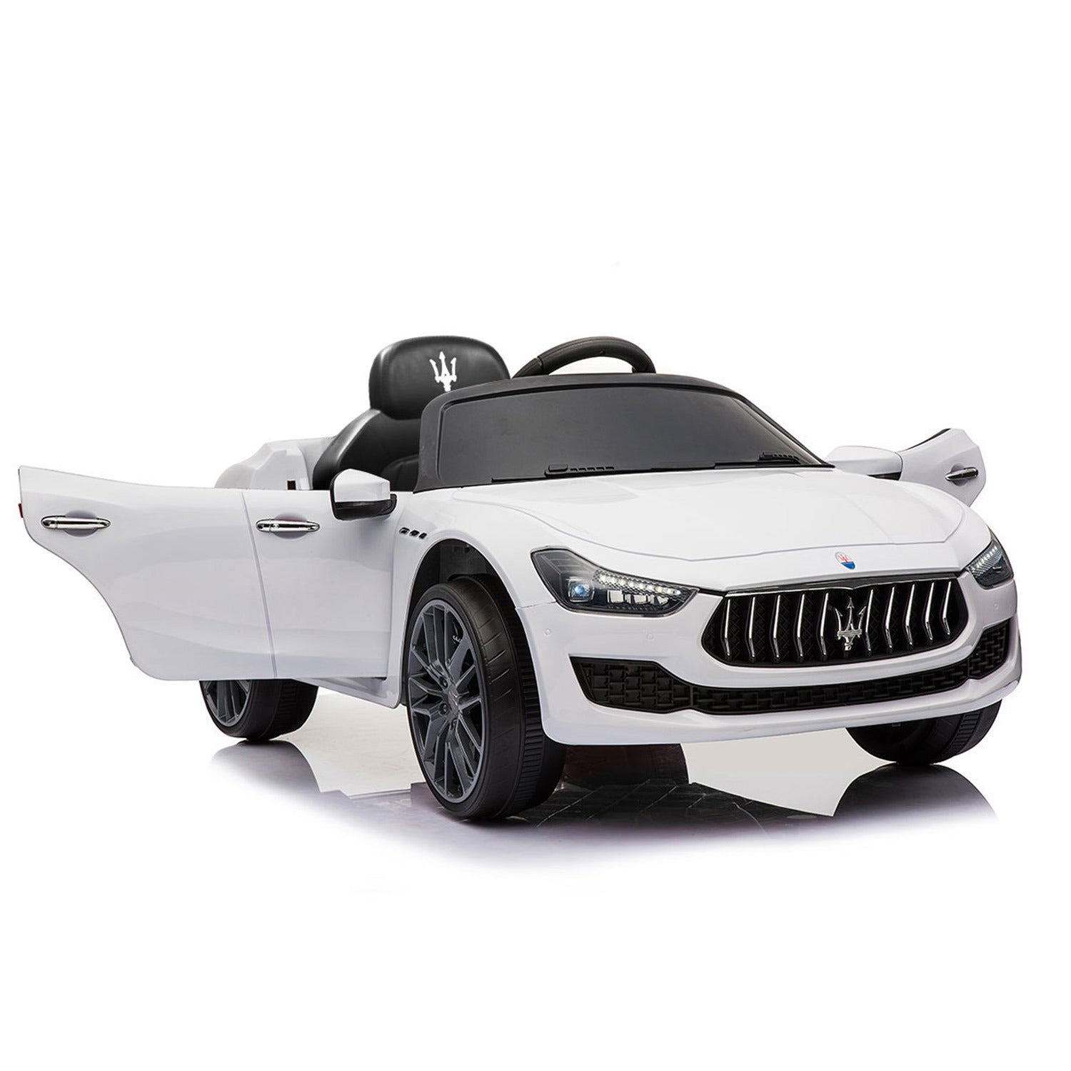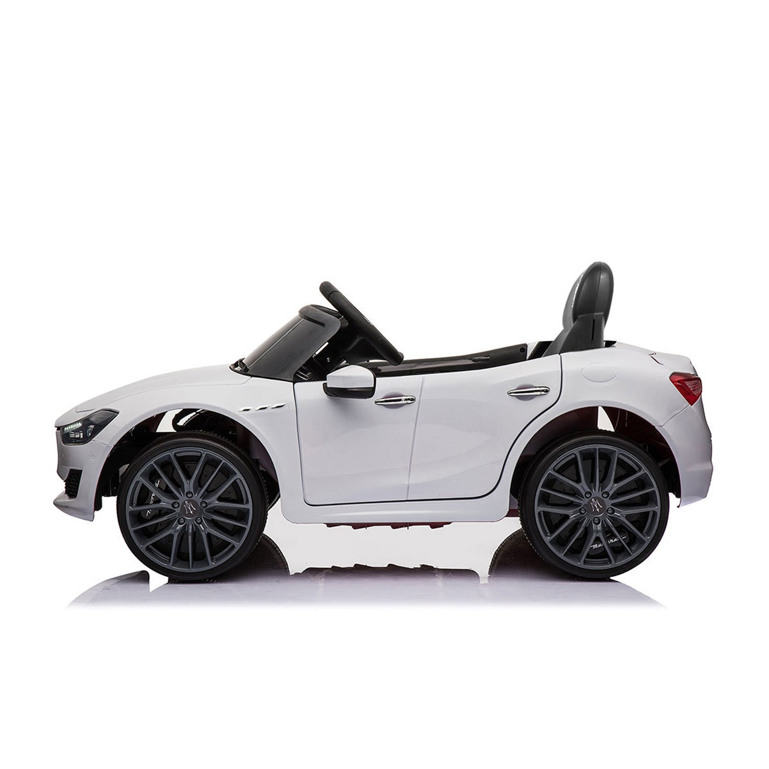 This Cfowner ride on car is officially licensed by Maserati which is a perfect gift for children. Parent can control this toy car by provided remote control, which promotes parent-child interaction. And it also allows children to freely control it to move forward or backward. Just press the foot pedal and go! Whether it is brick road or cement road. Made from high-quality PP material, it is both kid-friendly and durable. Multifunctional ride on car, with build-in music, horn, story, headlights, and taillights, makes the ride more enjoyable. Moreover, featuring MP3 interface, USB port and TF card slot, it also allows you to connect to your own device to play music for your children. While offering endless fun, it also ensures your children’s safety. The spacious seat with safety belt and 2 openable doors with safety lock together provide safe and smooth ride. It is worth mentioning that the retractable handle and wheels help you transport the electric vehicle when not running. Let our ride on car satisfy your little driver’s dream of being a real road adventurer!