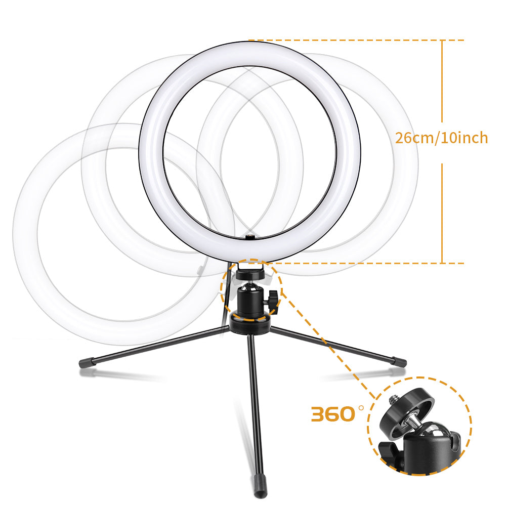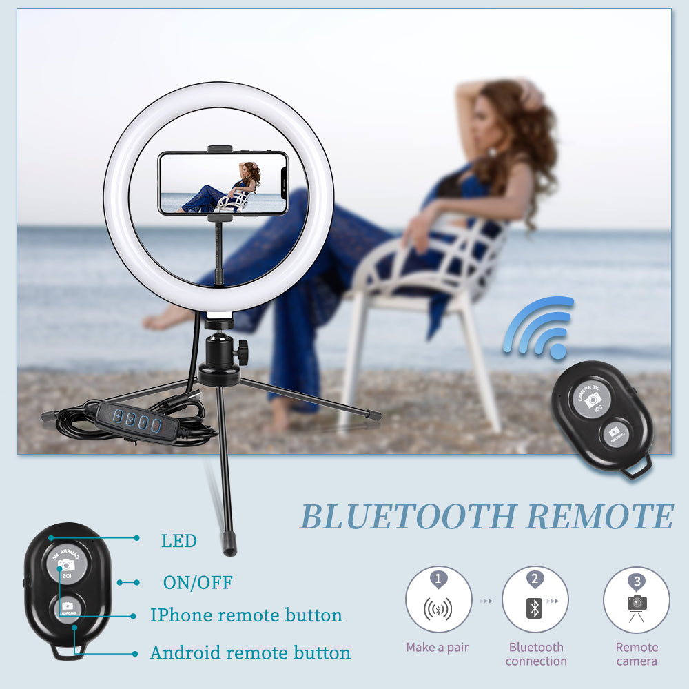 Are you looking for a portable and practical ring light? If so, you can't miss this 10 inch Ring Light Iron Metal Bracket Bluetooth Set, which is featured with extremely long lifespan, low energy consumption, high light efficiency and environment protection. And it's also covered with durable material, offering it a complete protection and perfect heat dissipation. Moreover, our LED ring light can give out bright and pure light to protect your eyes and make the environment around you more romantic and safer.