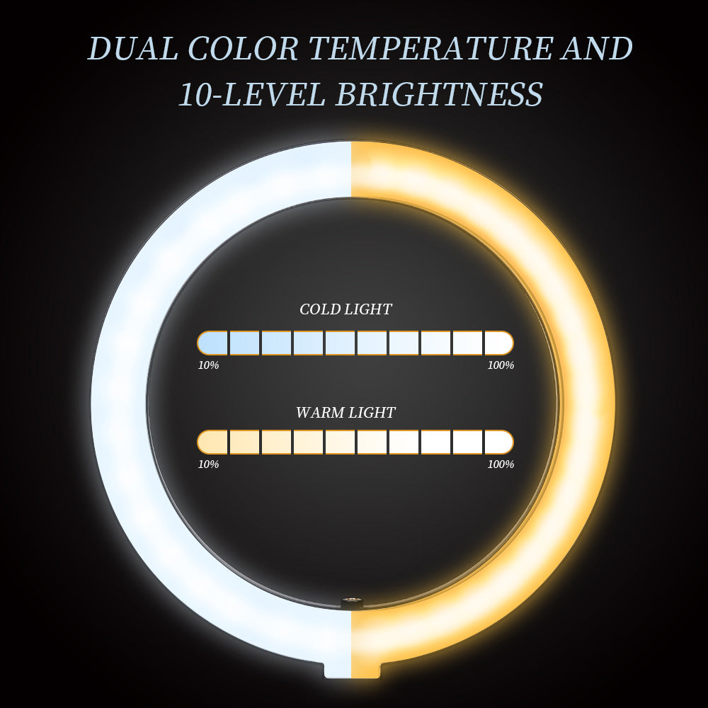 - 【Dimmable Circle Light & Upgraded Lampshade】Including 3-color lighting modes: Warm Light, Cool White, Day Light, each mode has 10 brightness levels, and a total of 30 options will meet all your needs in different circumstances. It is the perfect extra light to take away all the unflattering shadows. Compare to the flat lampshade, the light of the upgraded arched lampshade is more uniform and balanced, reduce the irritation of light, and protects our eyes. Influencers equipment must have.