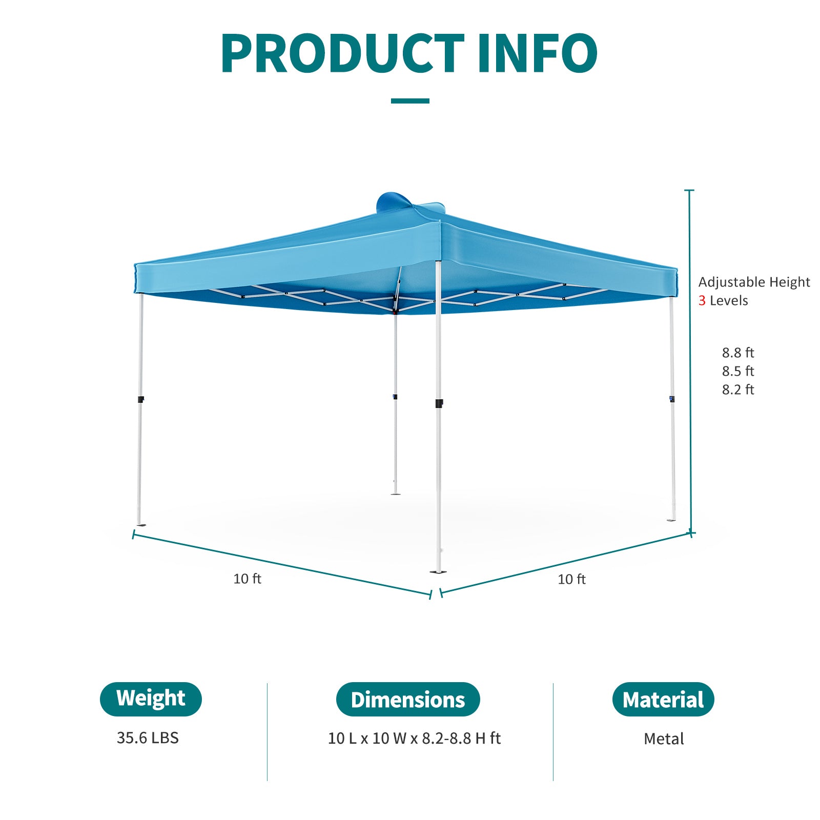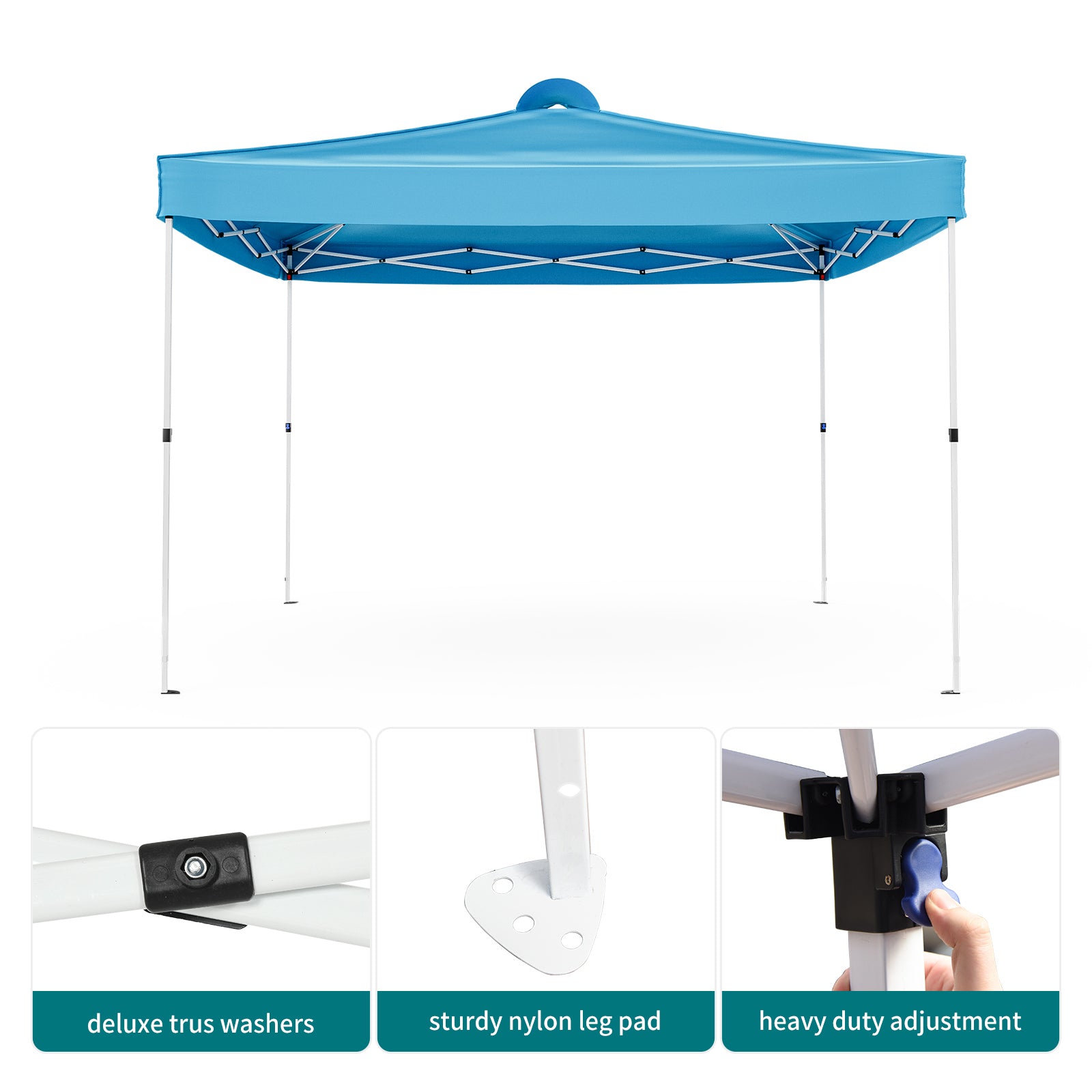 - EASY ONE PERSON SETUP: Easy Pop Up Center Technology design enables One person to easily open and close the canopy from the center without the hassle of locking and unlocking the canopy leg sliders. One pinch-free push, and you’re ready to go!