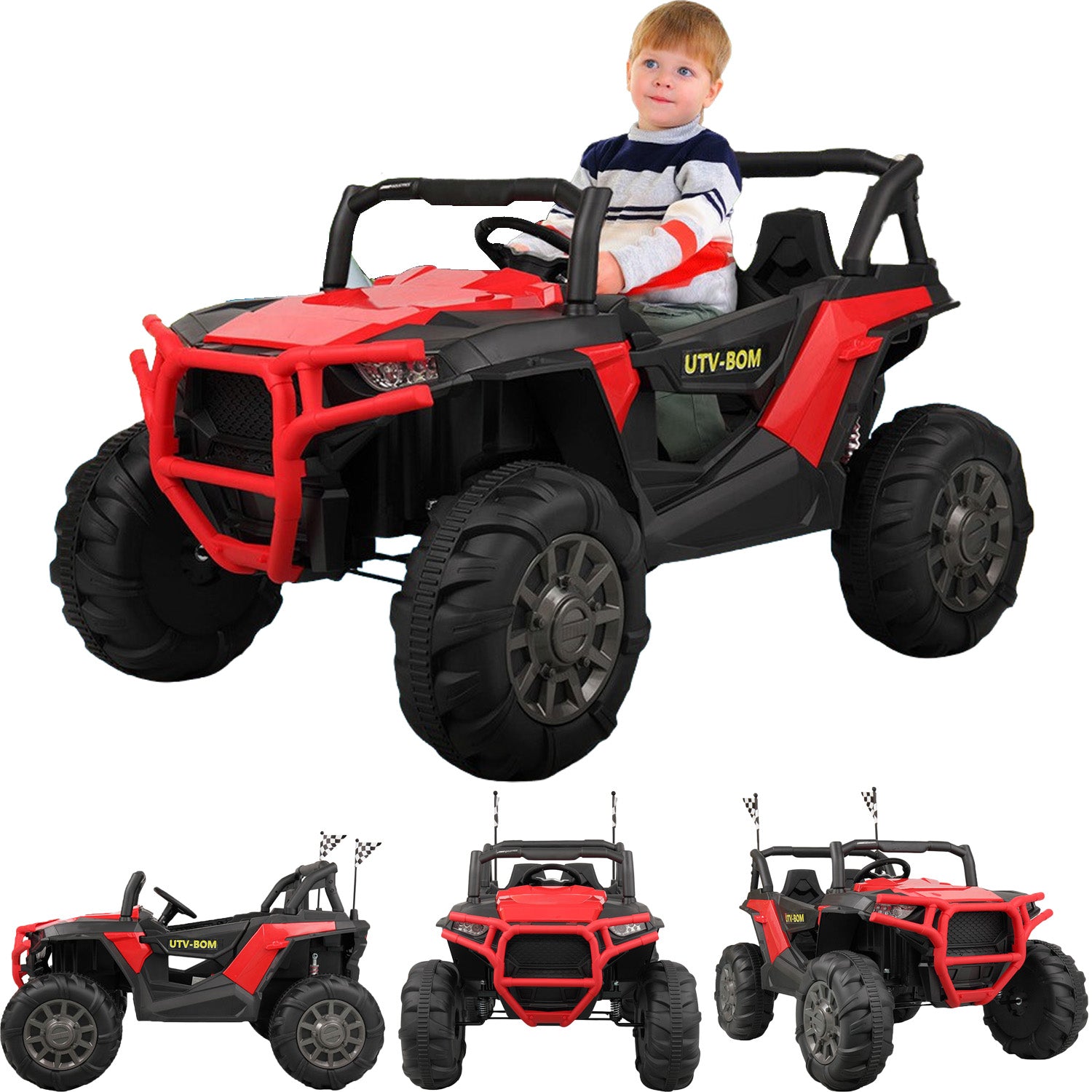 - 【AN ATTRACTIVE GIFT FOR KIDS】: This powerful mini 4-wheel electric SUV with double motors is a fantastic gift for your little adventurer to explore the outdoors. The cool appearance with two flags in the back lets your youngster drive with passion and a sense of role. Equipped with functioning LED lights and entertainment systems, this car will undoubtedly be an eye-catching unit on the road.