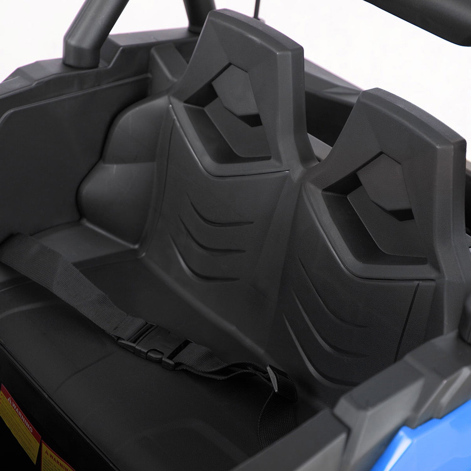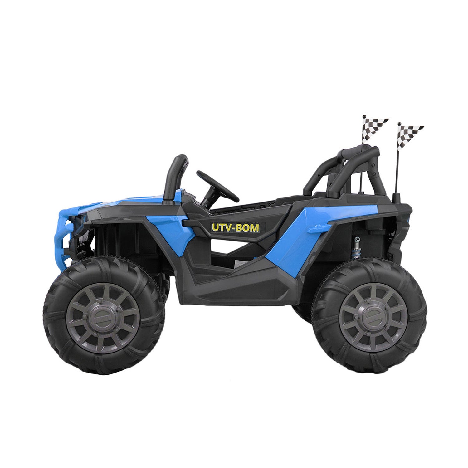 In order to meet your little adventurer’s need to explore the outdoors, UWR-Nite kids ride-on SUV with attractive colors, complete equipment and safety design is a great choice. Equipped with built-in music, volume adjustment, MP3, USB, TF card, Bluetooth, 3 speeds, forward/backward function, buffer beam, and double seats with a safety belt, the 4-wheel kids truck offers a realistic and safe driving experience for little youngster. 4 big sturdy wheels designed with knobby tread and spring suspension offer stable support. The 2.4G remote control gives chance for parents to enjoy the happiness together.