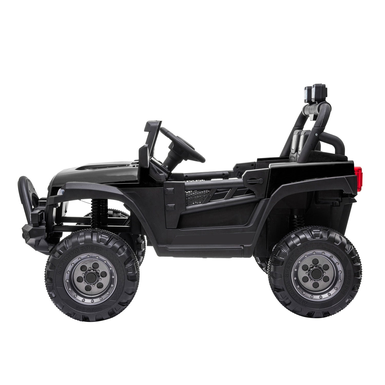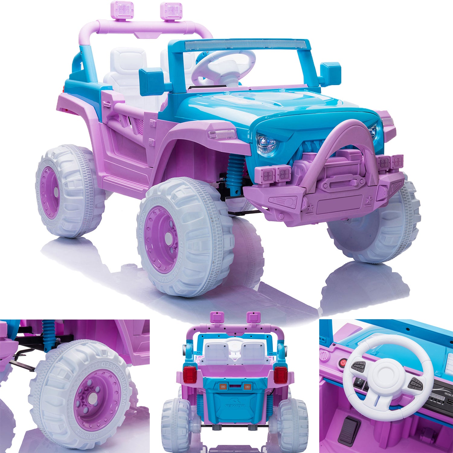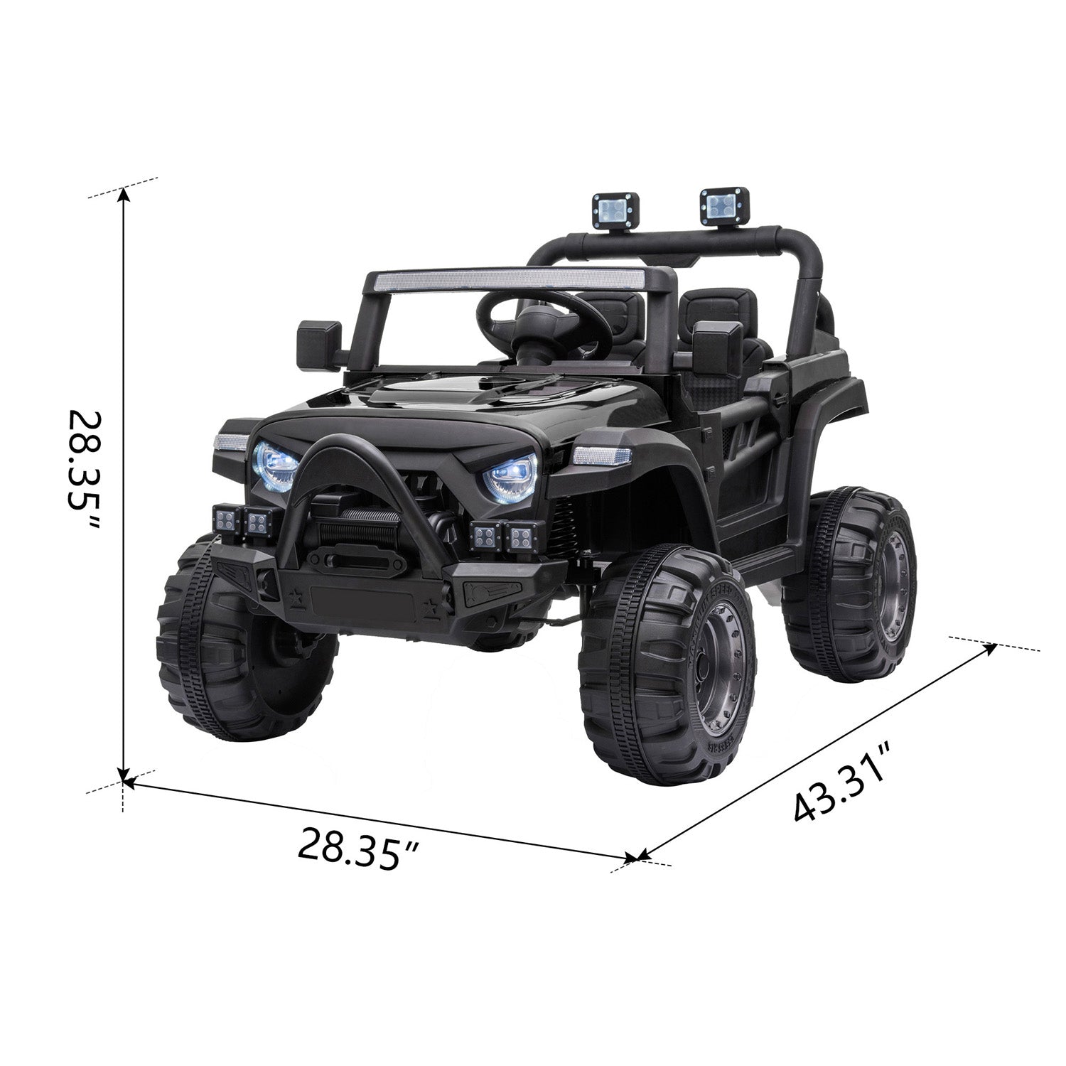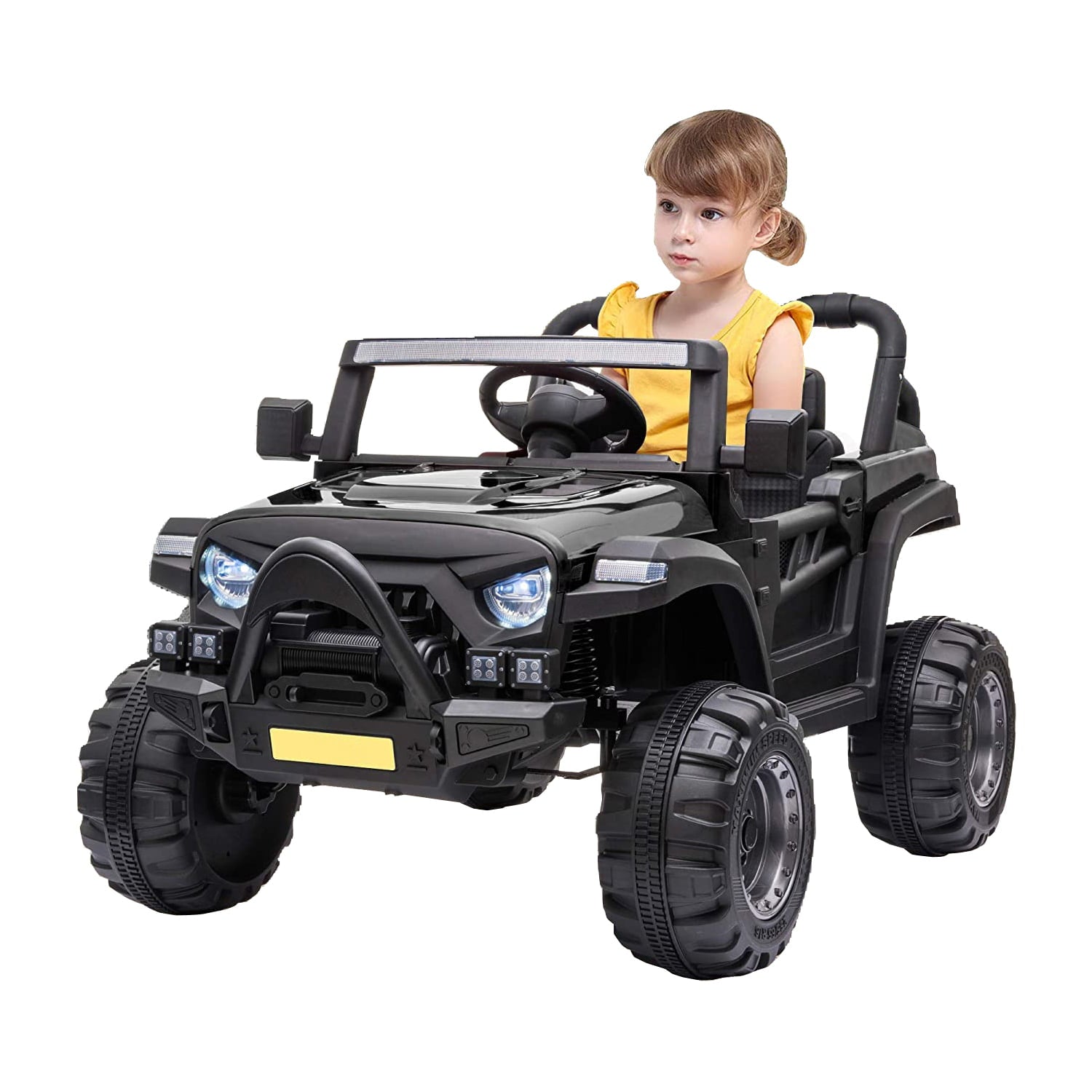 Young drivers will love racing into exciting off road adventures in this UWR-Nite ride-on car. With realistic styling including a distinctive grille roll bars real working doors, front back fenders and a rear storage area plus wonderful colors and a volume-adjustable horn with songs, this vehicle makes your little driver's dream come true. Plus, it has been redesigned with a larger cockpit area and increased wheelbase to give kids more legroom and improved stability. Drives 2 speeds forward and 3 speeds remote control for 2.61 mph max. Each toy is expertly crafted using high-quality materials, tested to ensure long-lasting durability and safe play for your precious little ones to keep both parents and children equally happy.