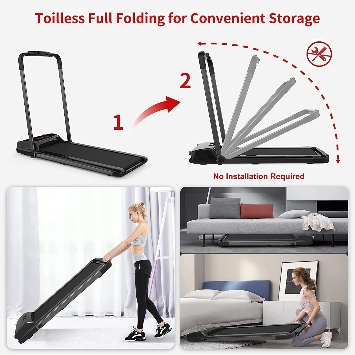 UWR-Nite 2 in 1 Folding Treadmill, 2.25HP Under Desk Electric Treadmill, Installation-Free, LED Display, Walking Jogging for Home Use