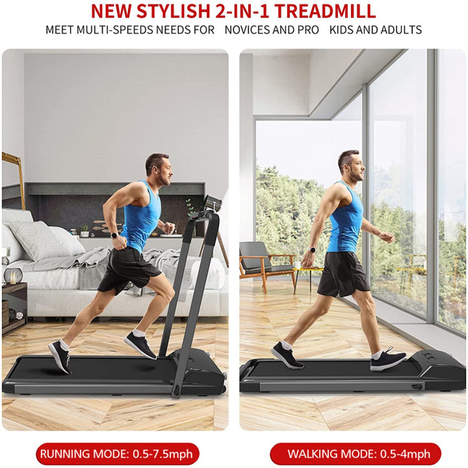 • 2-IN-1 FOLDING TREADMILL-- Compared to ordinary treadmills, our 2-in-1 Superfit treadmill has 2 modes to meet your different sports needs. When the handrail is folded, it can be used as a jogging machine at a speed of 0.5-4mph, so you can walk on it. When the handrail is raised, the running speed is 0.5-7.5mph and you can run to reach your fitness goal.