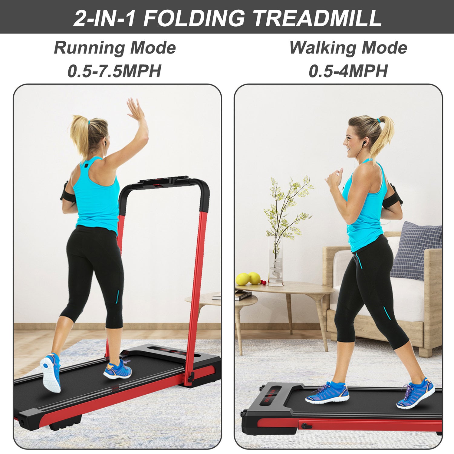 - [Space Saving & Easy Use] This foldable treadmill does not require extra screws when you install it. It is very convenient for you that just need to rotate the knob. Small treadmill for apartment can be placed under the sofa, corner or bed, reducing the floor space and making it ideal for any room. We provide quality warranty for this treadmill.