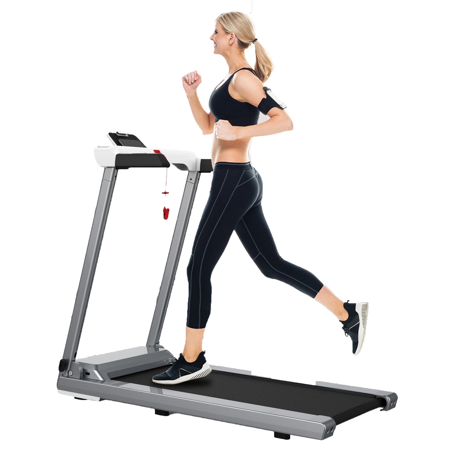 - [Innovative Brilliant Treadmill Design] To burn calories more effectively, this folding treadmill is specially programmed 12 different running programs. With the help of these preset training plans, you can choose the best plan to suits your need. A safety emergency key with a clip connects you with treadmill, stops it immediately in an emergency, and protects you during exercise.