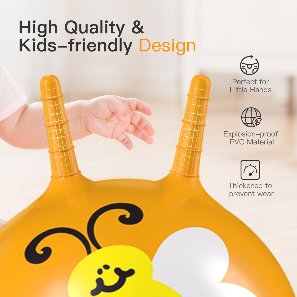 - They’re a fun way for youngsters aged 3 years to strengthen their muscles, improve their balance. Bounce ball with handle can give children endless fun.