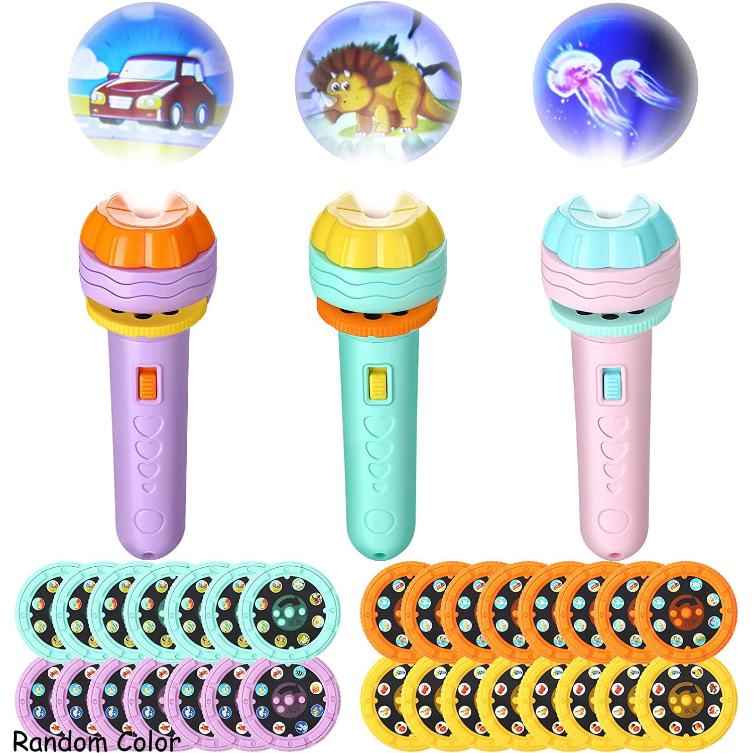 - Sufficient quantity and patterns: There are 3 flashlights each in green, pink and purple. Each flashlight is equipped with 4 projection disks (the color of the projection disk is random), a total of 12 projection disks, and a total of 96 patterns (ie 1 projection disk has 8 patterns), the pattern is almost non-repetitive, and it is full of colorful, bringing you a lot of fun and fun