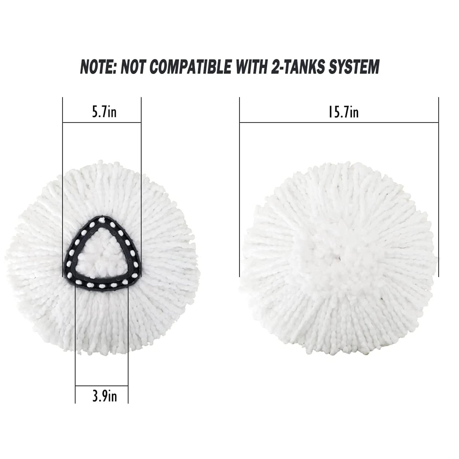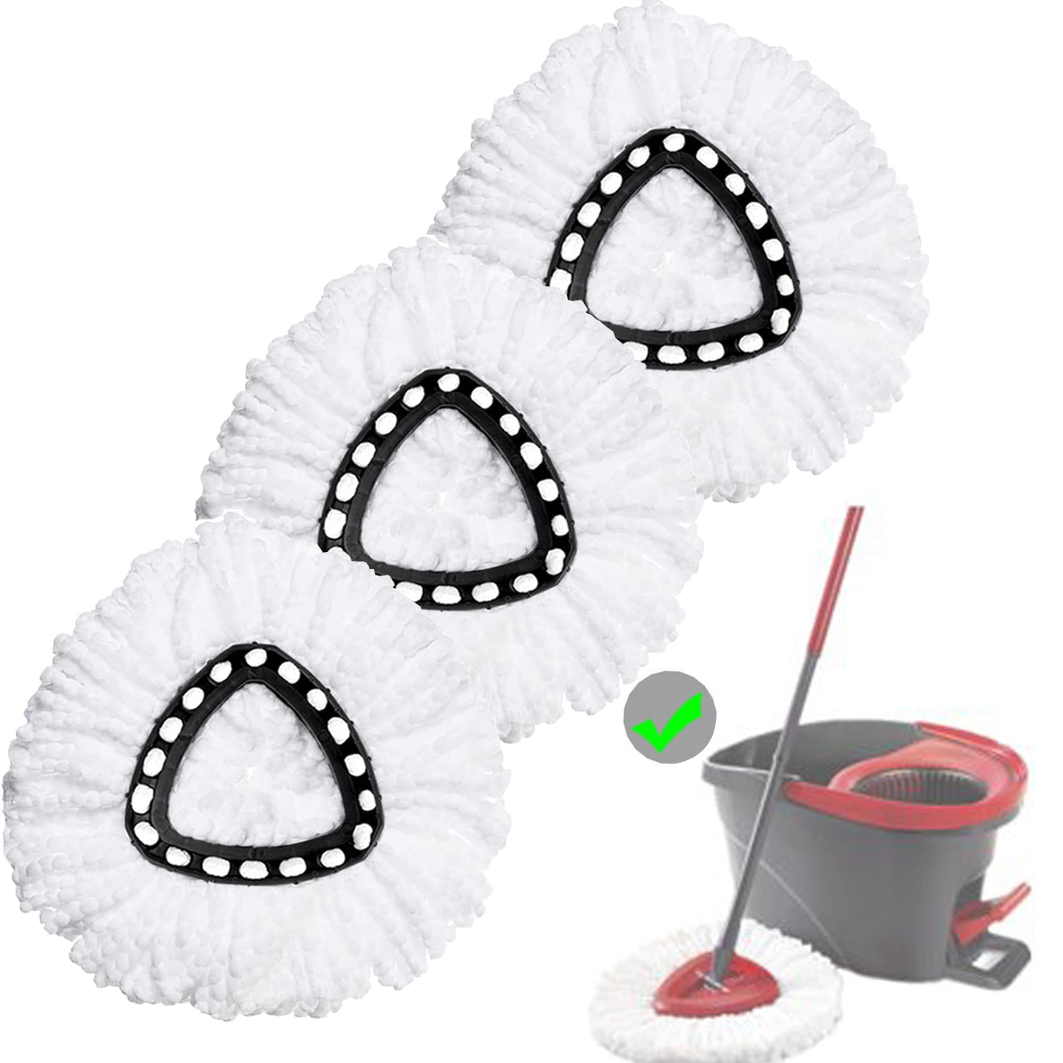 - 【Product Size】 Package Includes: 3 x microfiber spin mop head replacement. Inner triangular rim size 3.9inch and the outer triangular rim size 5.7 inch in diameter. The same size and design as the original, perfect for EasyWring single system.
