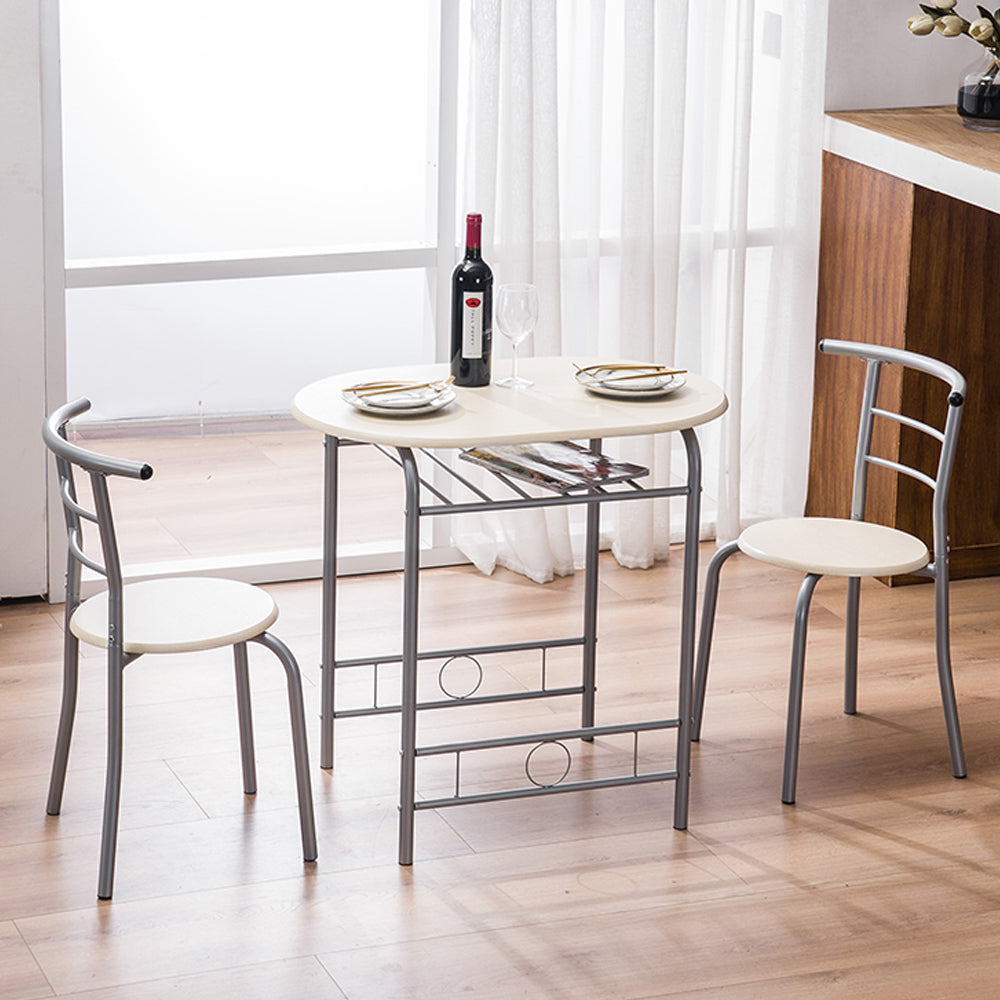 • SPACE SAVING DESIGN : This bistro table set does not take much space due to its compact size. The back of the chair is curved and fits perfectly to the edge of the table, so the table and chairs set can be a compact unit when not in use, great solution for small spaces, condo, kitchen, restaurants, apartment and more, In addition to the desktop, there is an extra shelf under the desktop that can be used to store your items , such as wine, cups, fruits, snacks, newspaper, magazines, etc.