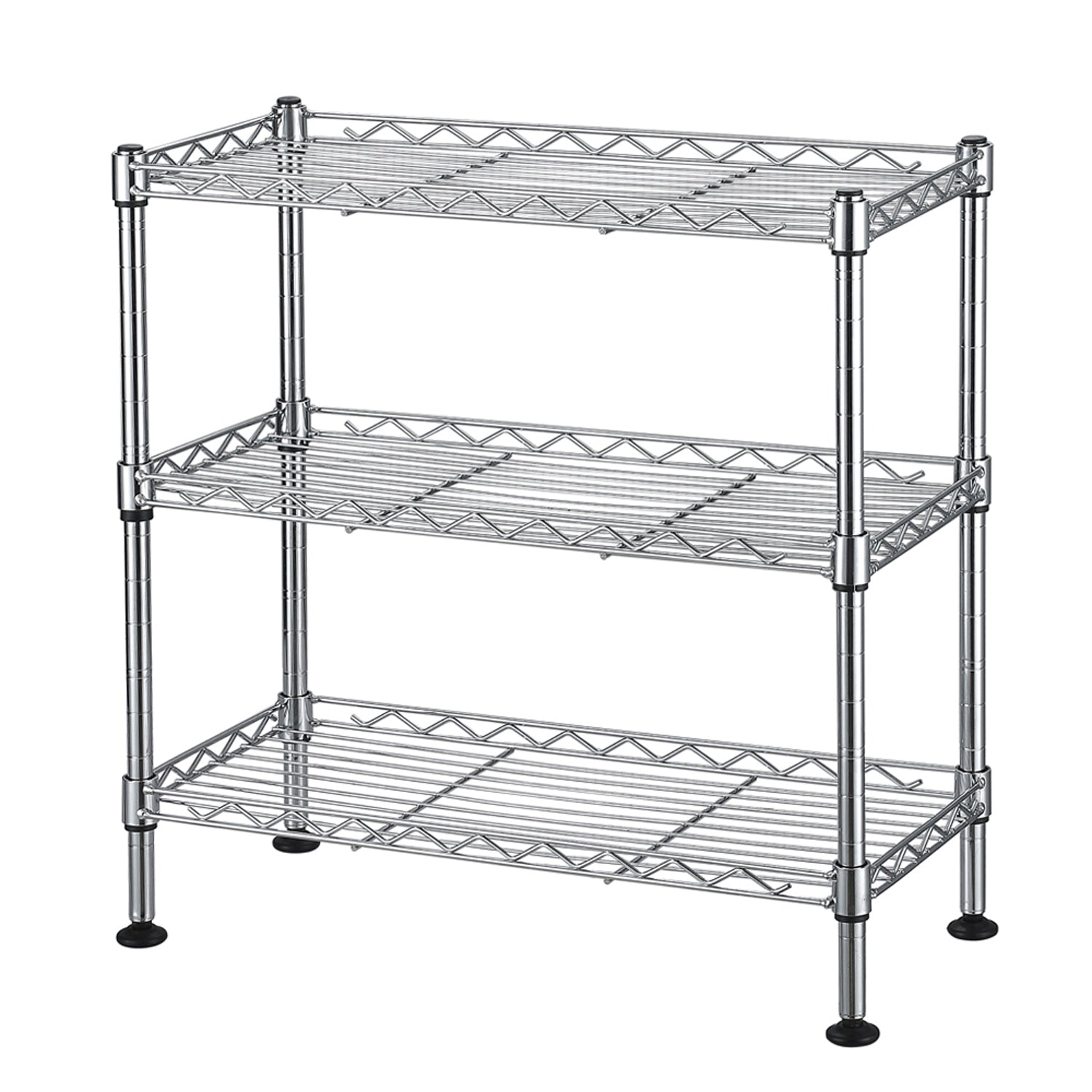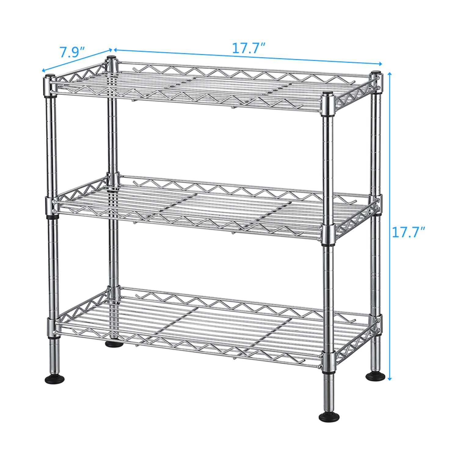 UWR-Nite 3 Tier Adjustable Storage Shelves Unit Rack, Heavy Duty Storage Shelving Unit, Steel Organizer Wire Rack, Silver (17.7"L x 7.9"W x 17.7"H)