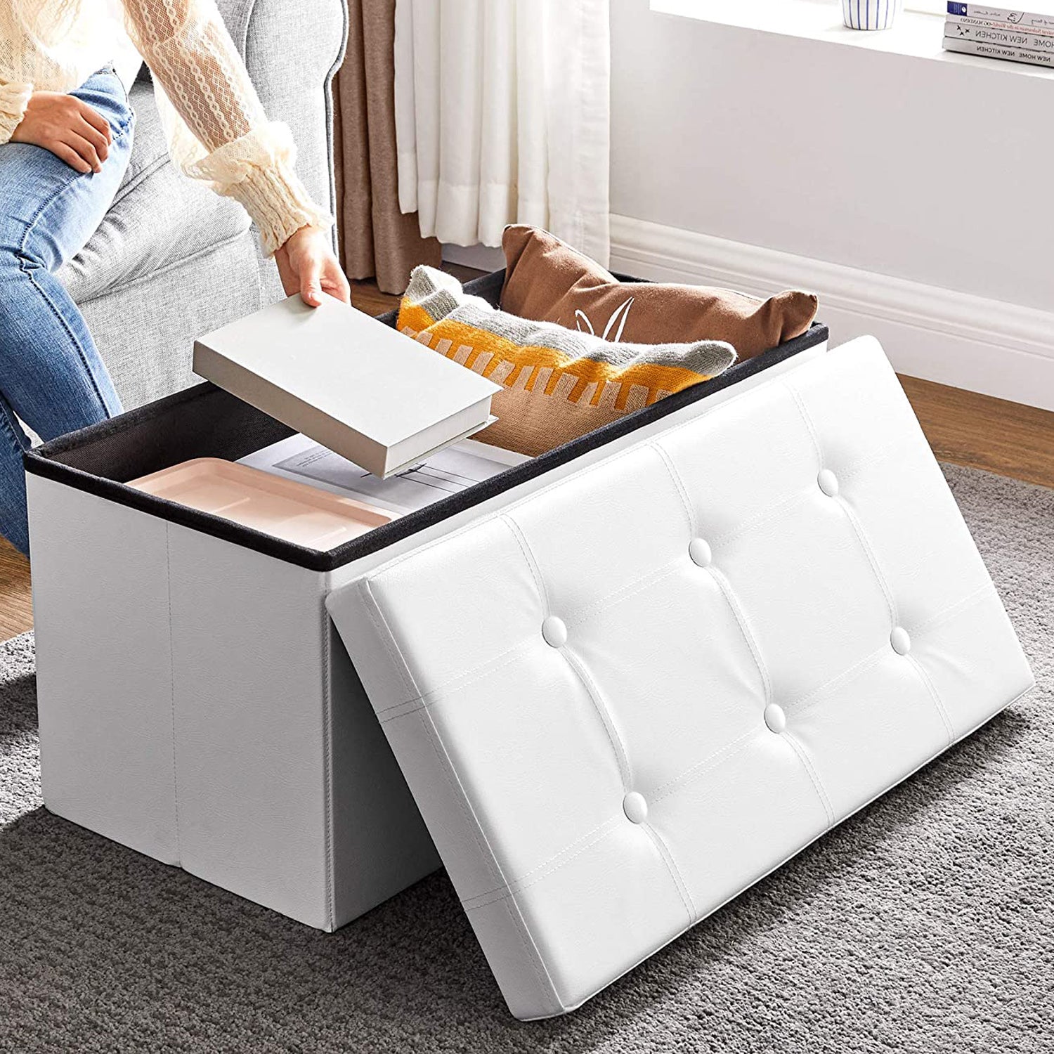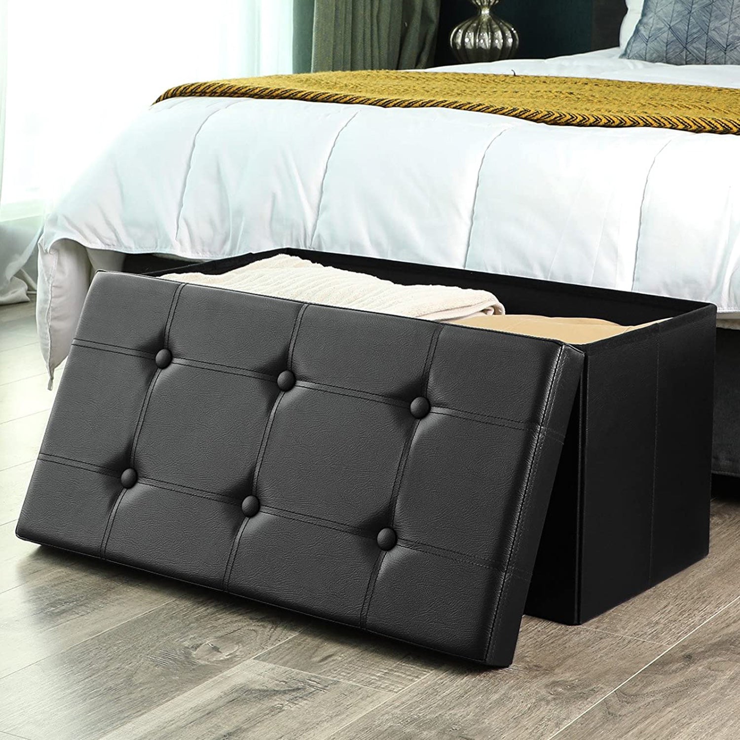 UWR-Nite 30 inches Folding Storage Ottoman, 80L Storage Bench for Bedroom and Hallway, Faux Leather Footrest with Foam Padded Seat, Support 350lbs.