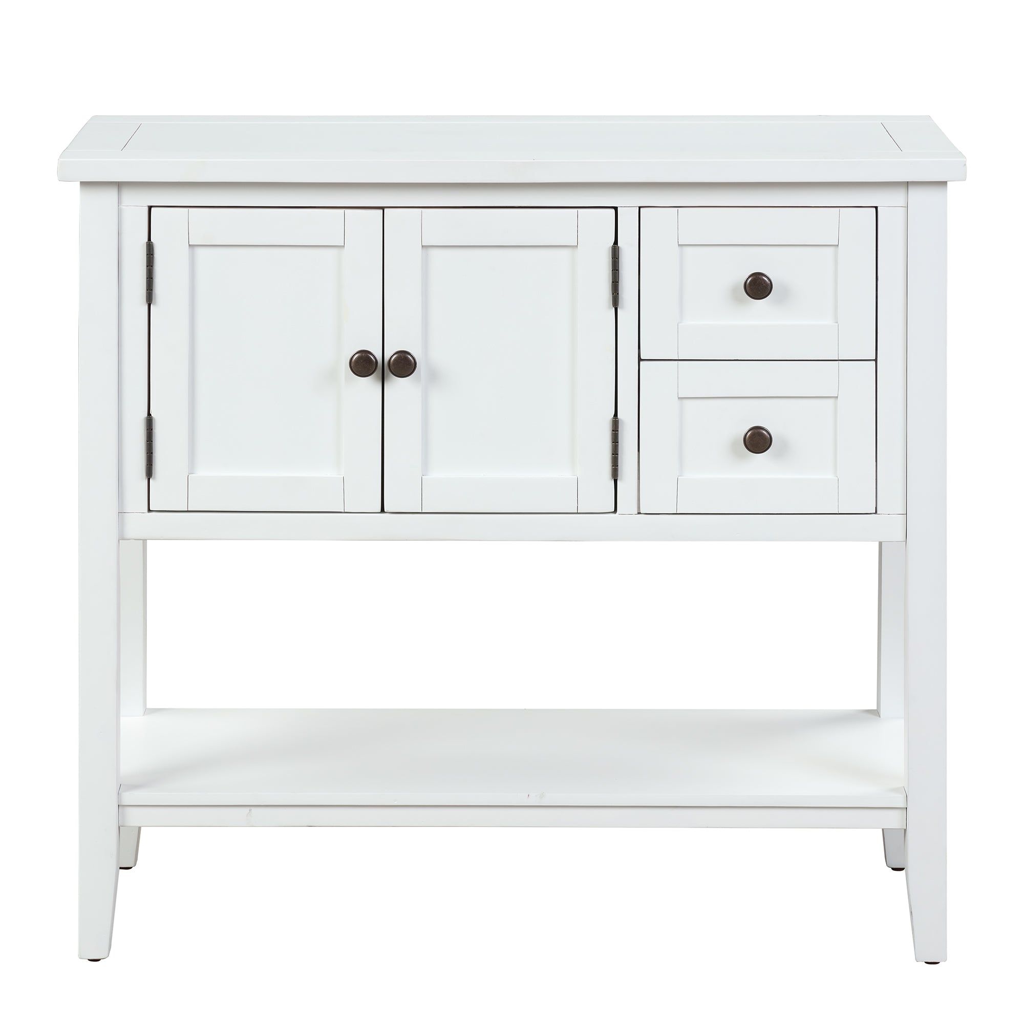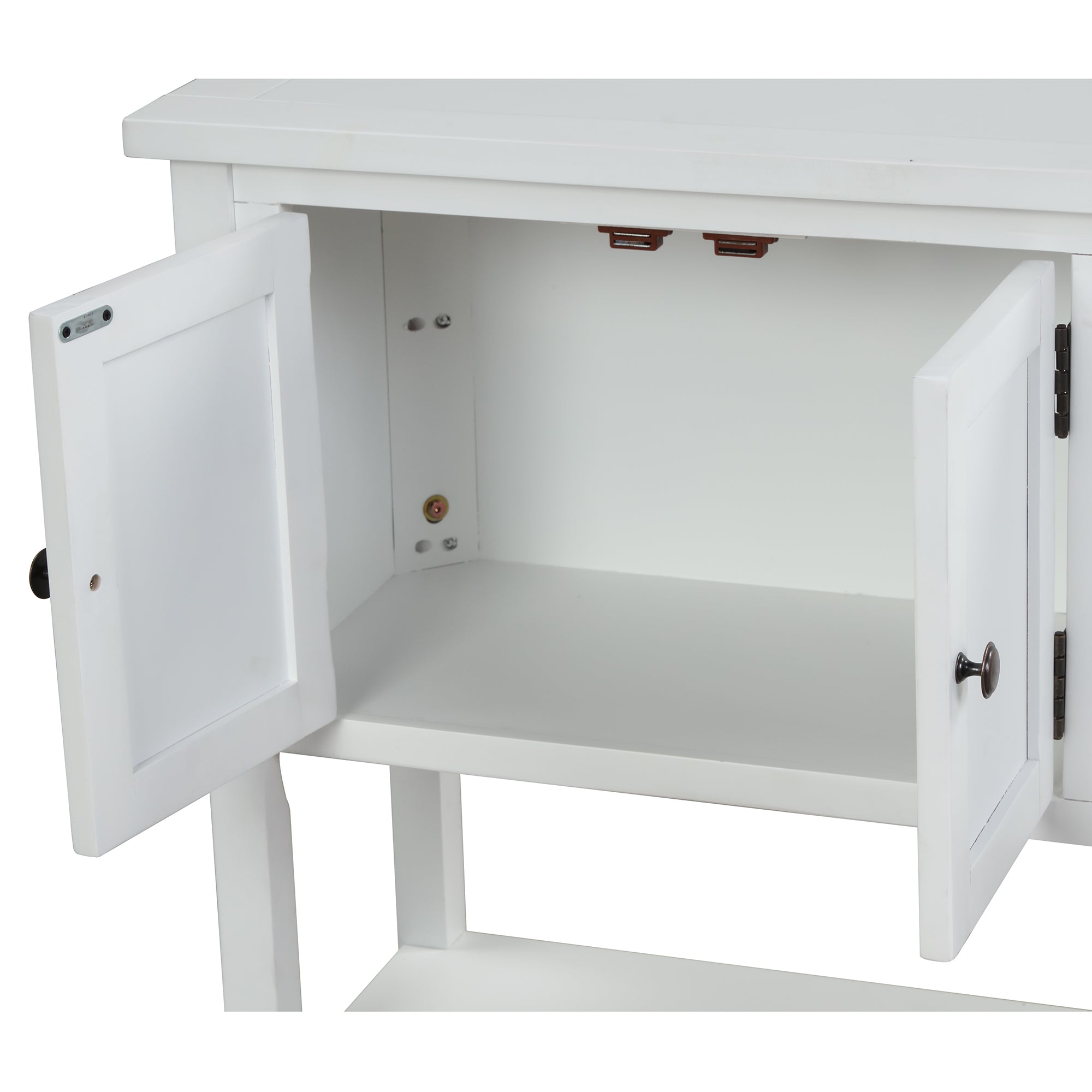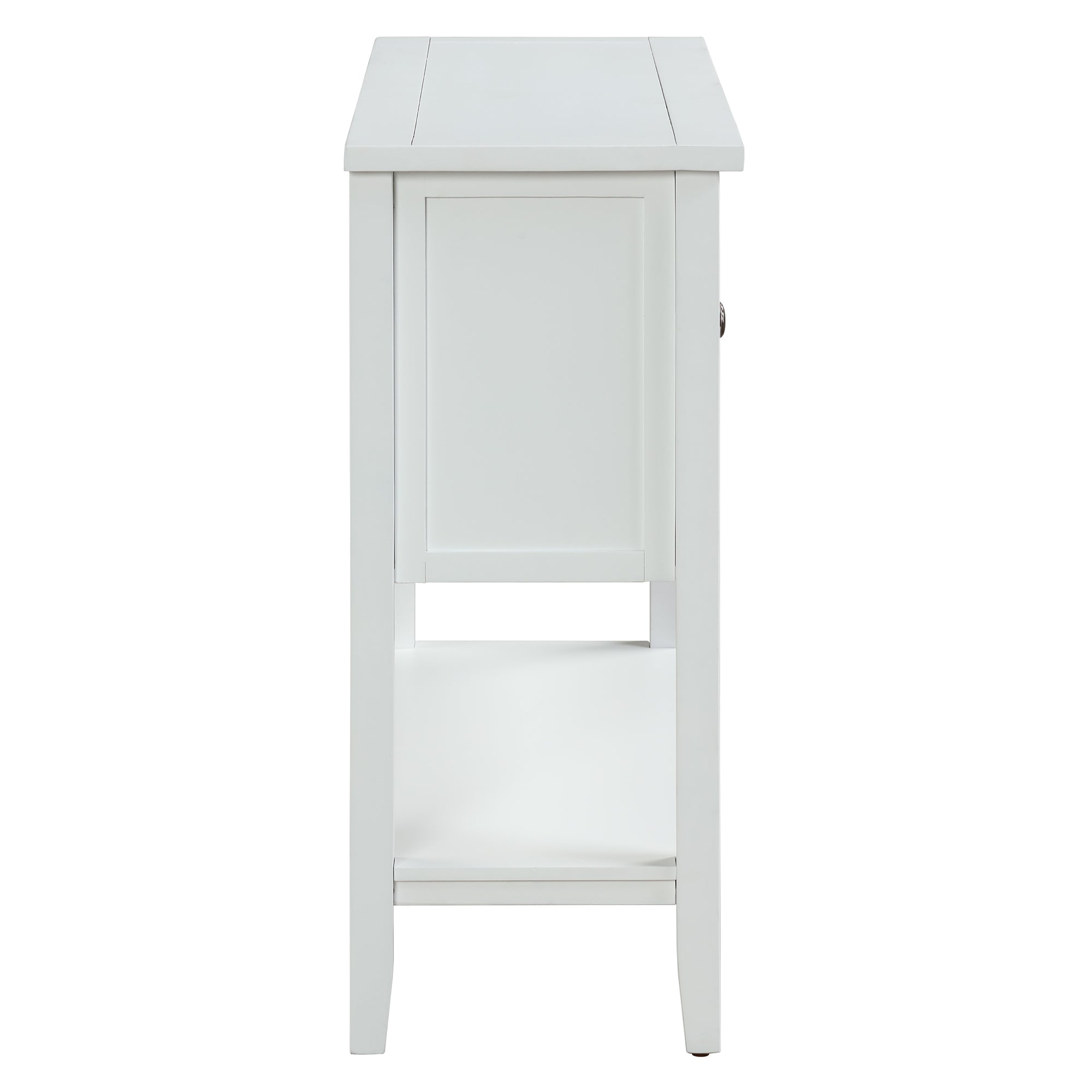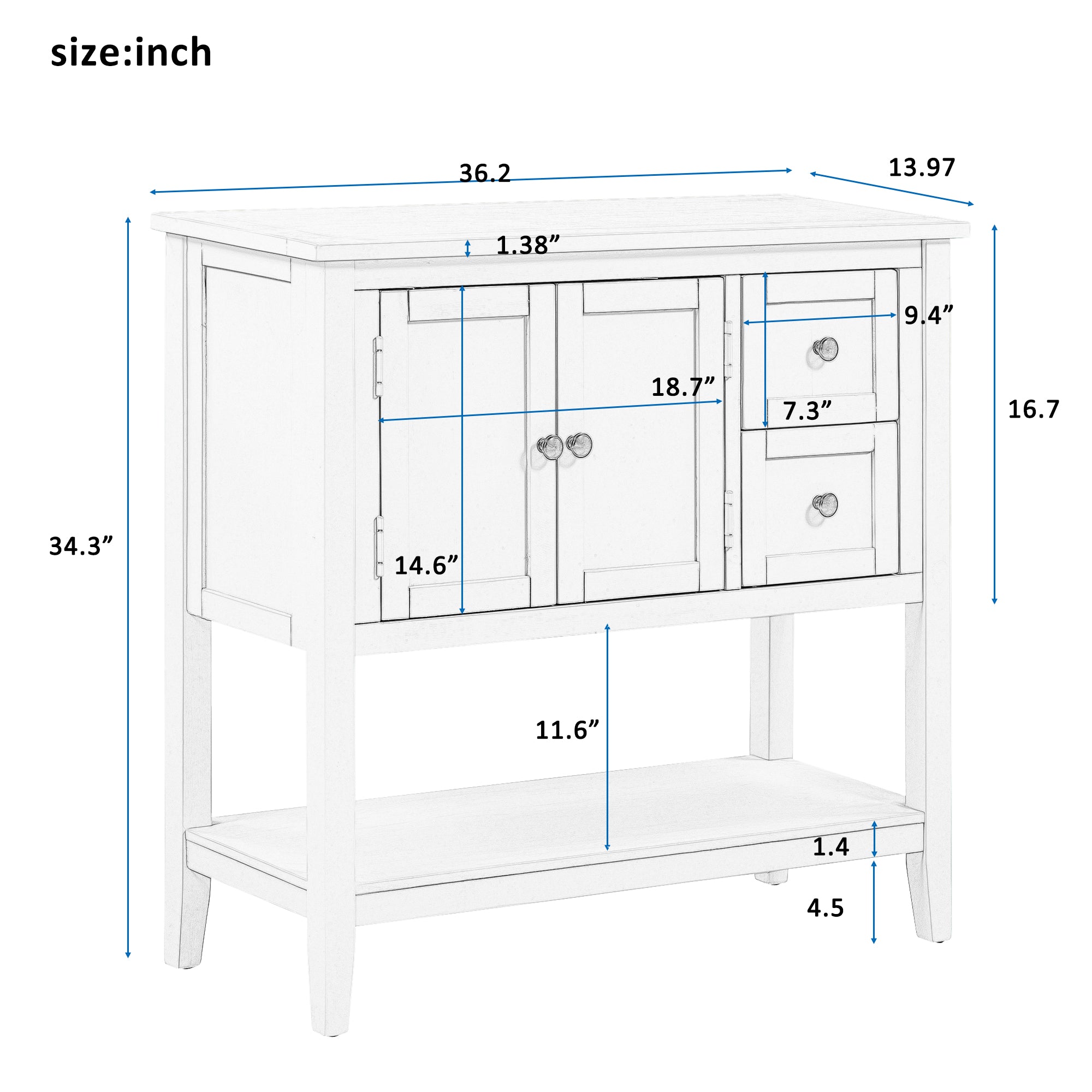 With built-in shelving ranging from the front double doors to the 2 drawers, users will have plenty of space to store their belongings and avoid letting clutter accumulate on the console table.