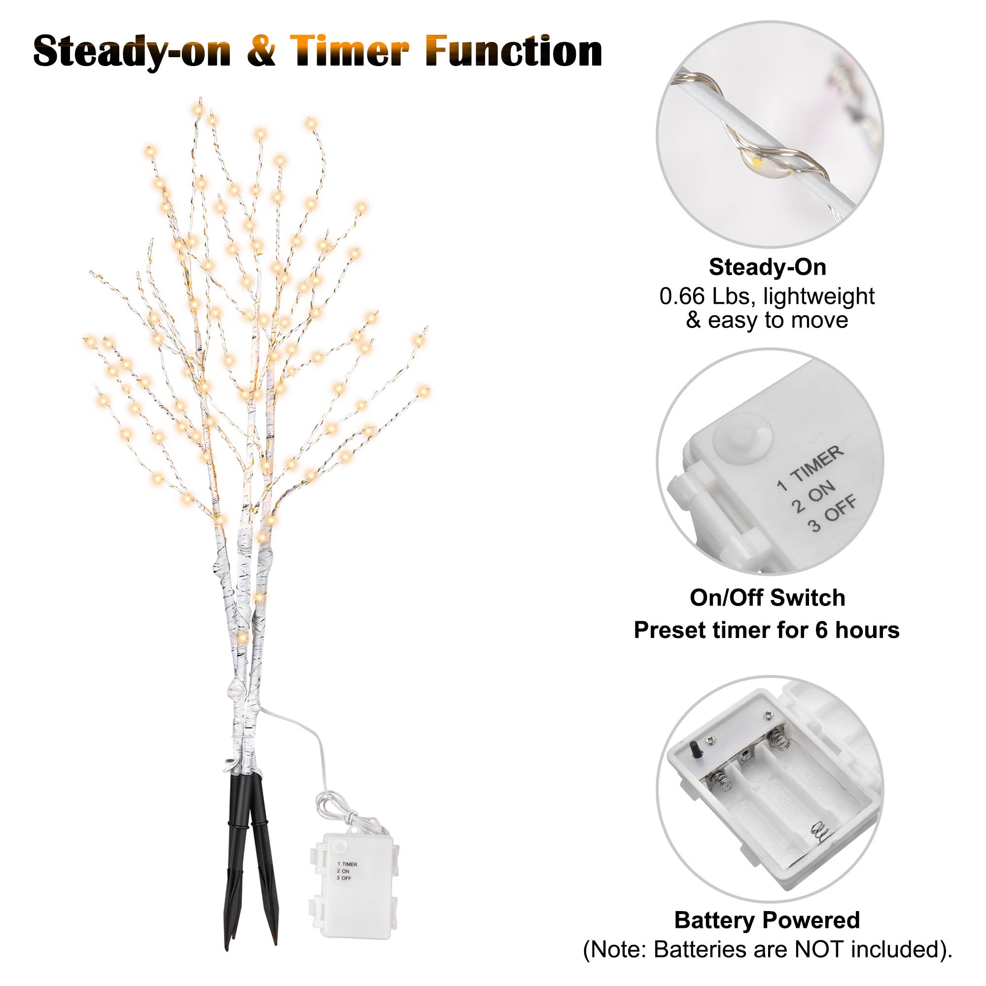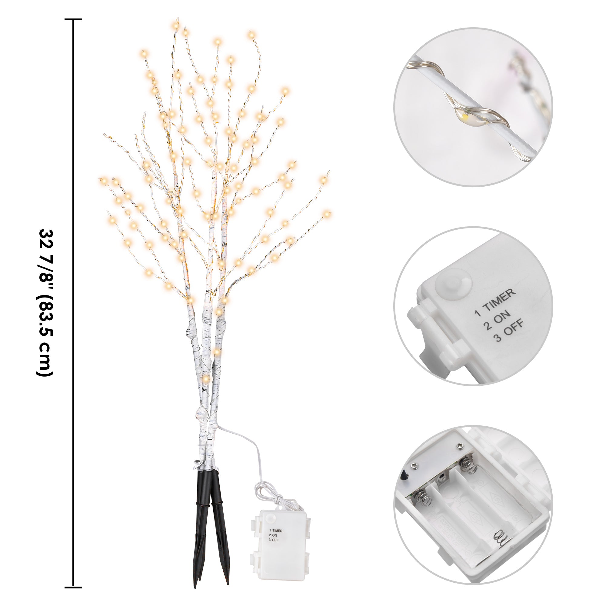 - 【Every package includes 3 pcs lighted branches】: 32.8 inches tall(bendable, suitable for the most vase), bright leds in total. 3 pack branches lights are powered by a energy saving Timer 3AA battery box(batteries not included).