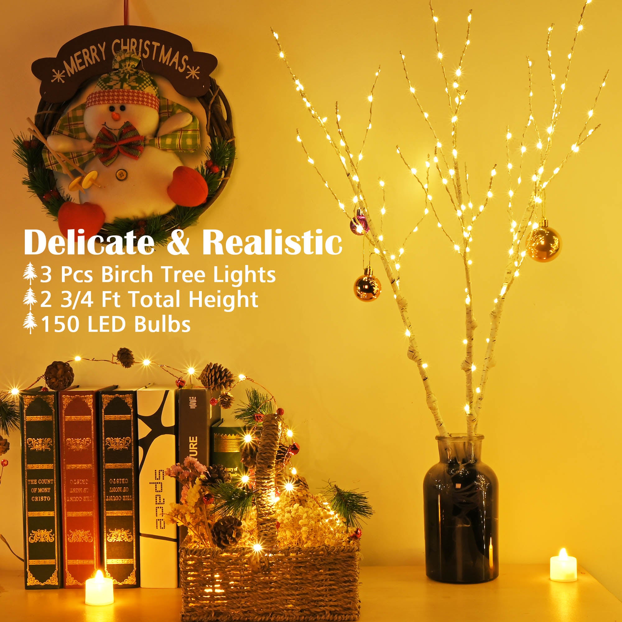 - 【Lifelike twig branches with warm white led lights】: this branch lights spice up your room, it is the eye-catching decoration for your vase, floor, home, table, living room, bedroom, fireplace, office, kitchen etc.