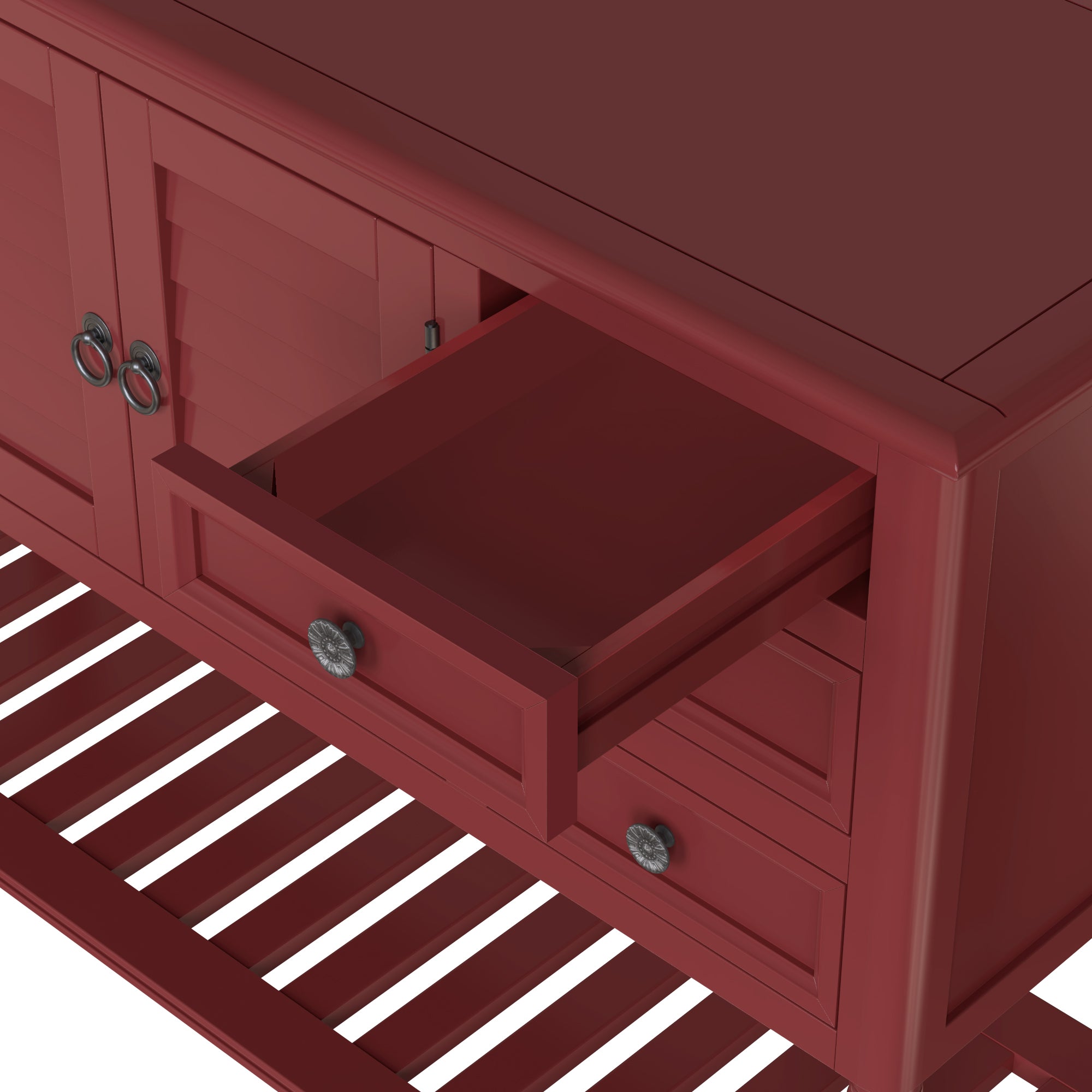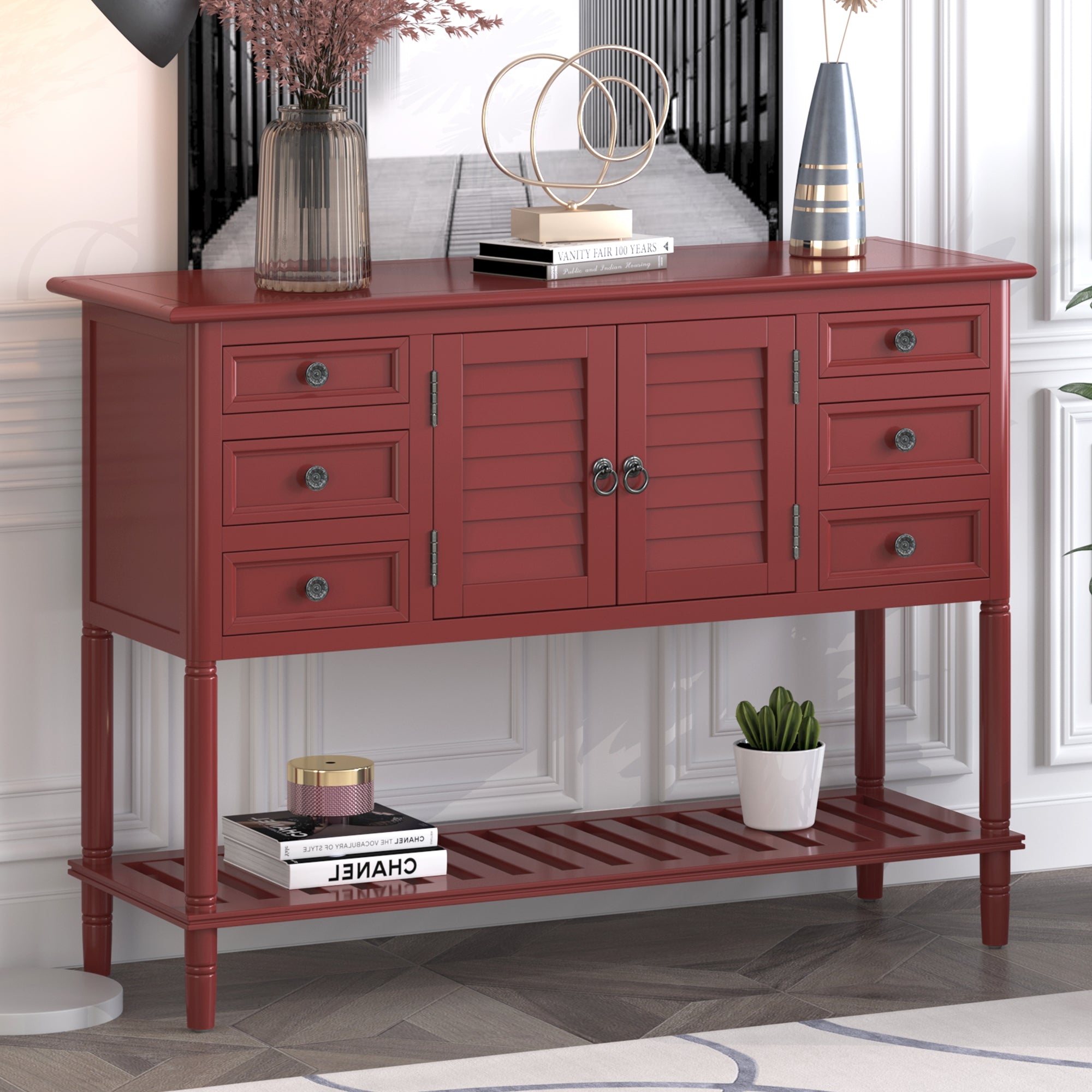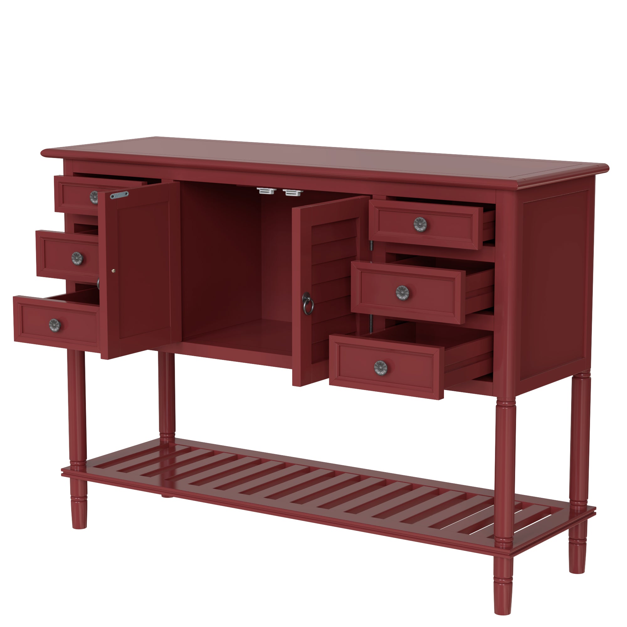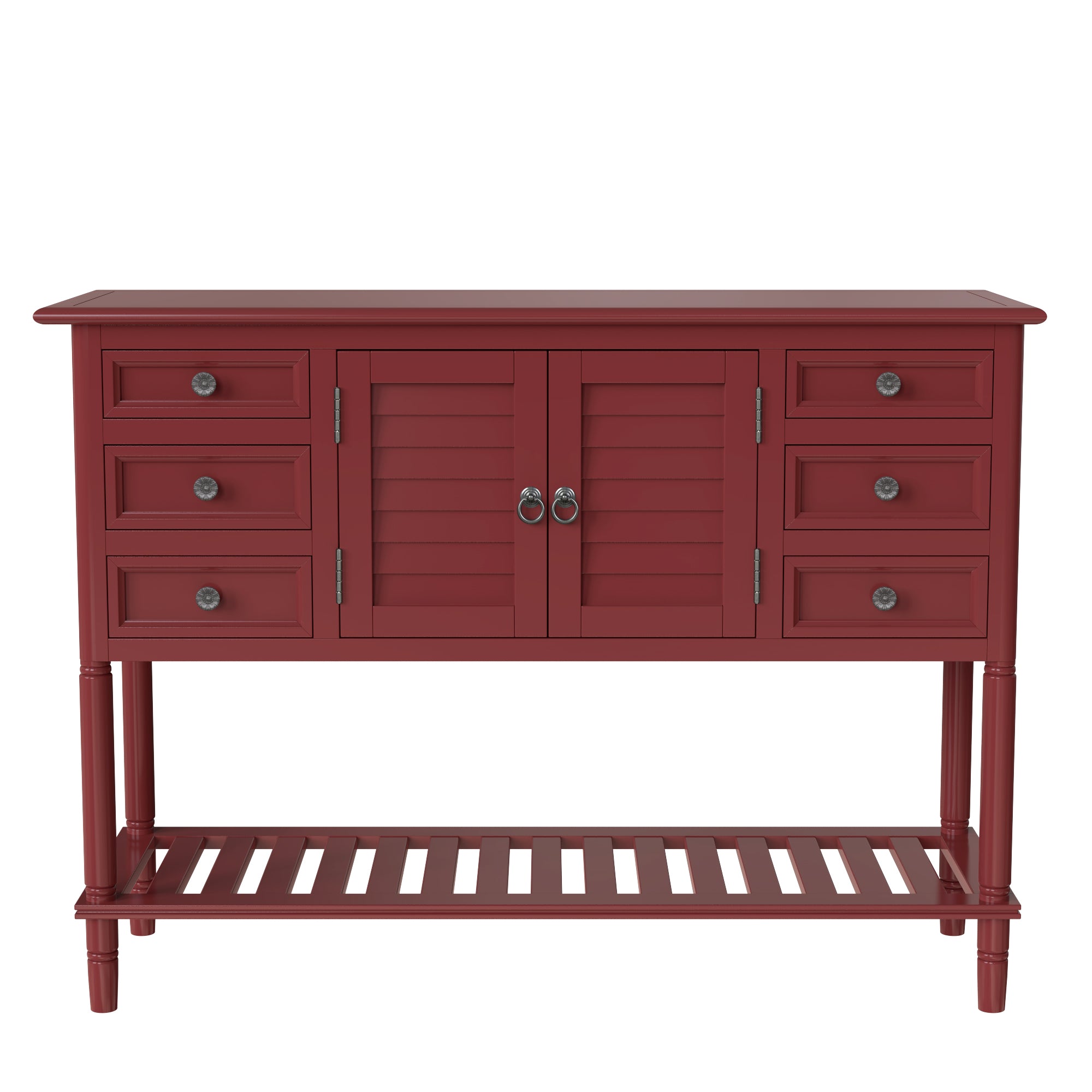 Effortlessly fill in that blank space in your home with this console table, designed to fit all of your needs and more. Crafted with a classic vintage appearance, this table comes complete with two front-facing cabinet doors that open to reveal a spacious interior, perfect for stowing away your larger necessities and keeping them out of sight. The drawers minimize clutter, offering plenty of space to hold smaller items such as keys or mails while the spacious bottom shelf is the perfect place for storage baskets, shoes, and more. Crafted with thick Pine and MDF wood slabs and accented with quality iron handles, this piece is manufactured for quality and exudes a high-end appeal that will leave your guests talking.