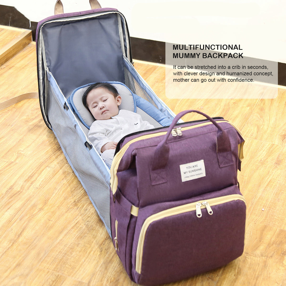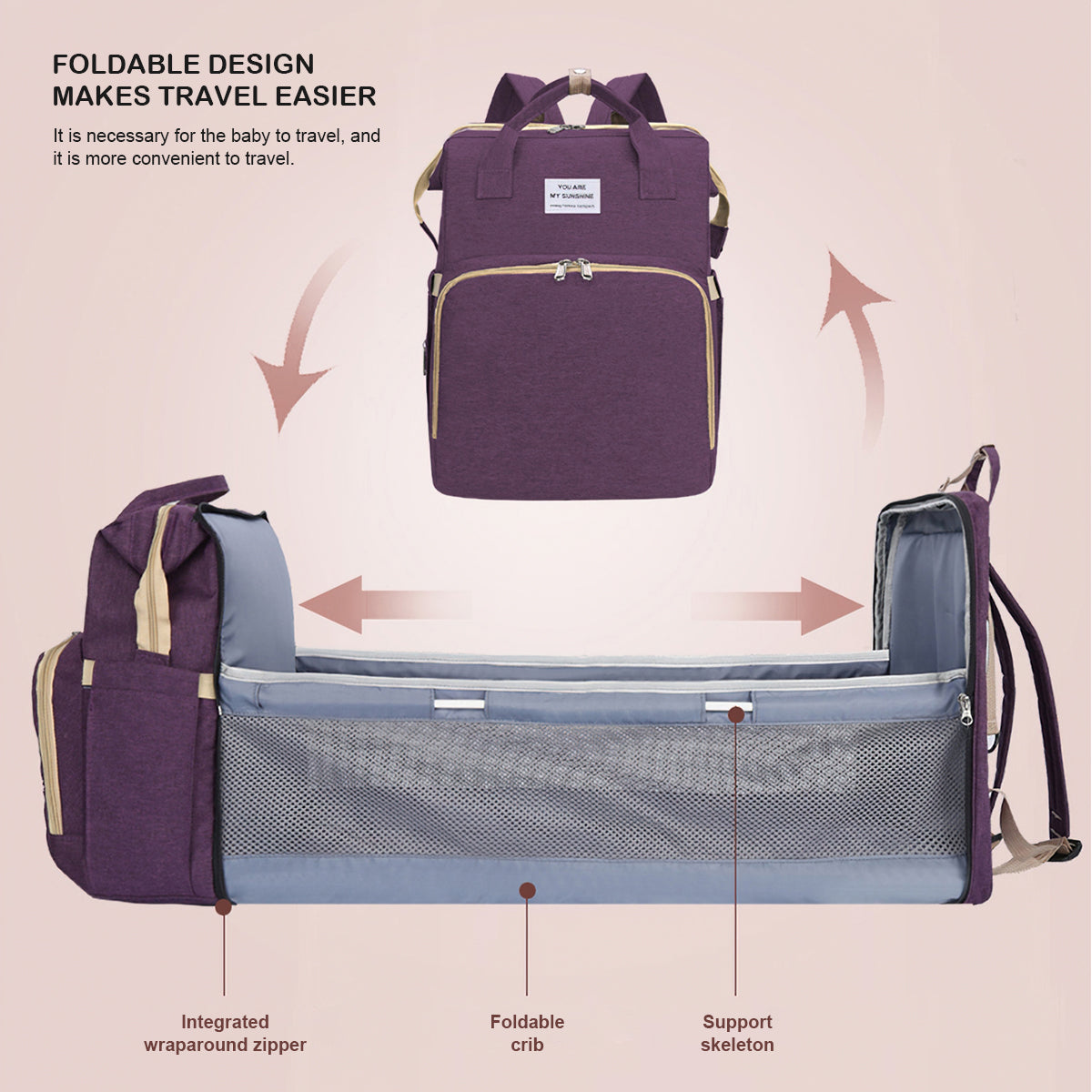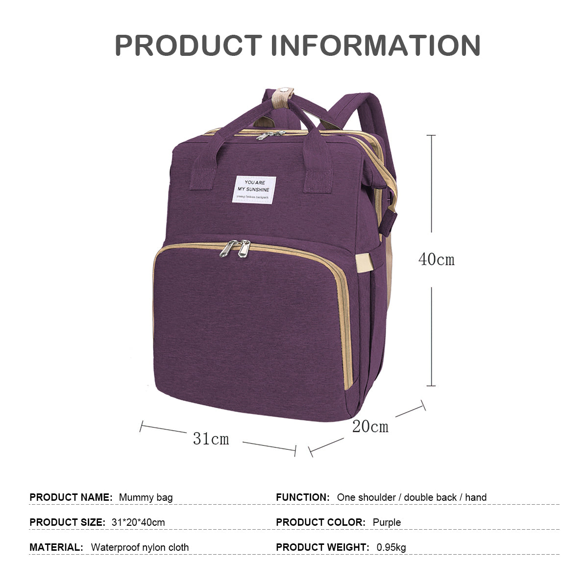 • Comfortable and Convenient: This baby bag can be used as a diaper backpack, a changing station, a baby crib, or it can be connected to a stroller with a buckle on the shoulder strap.