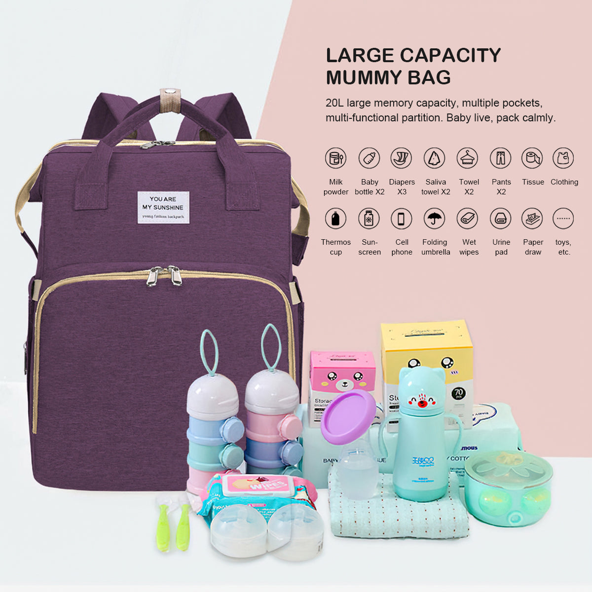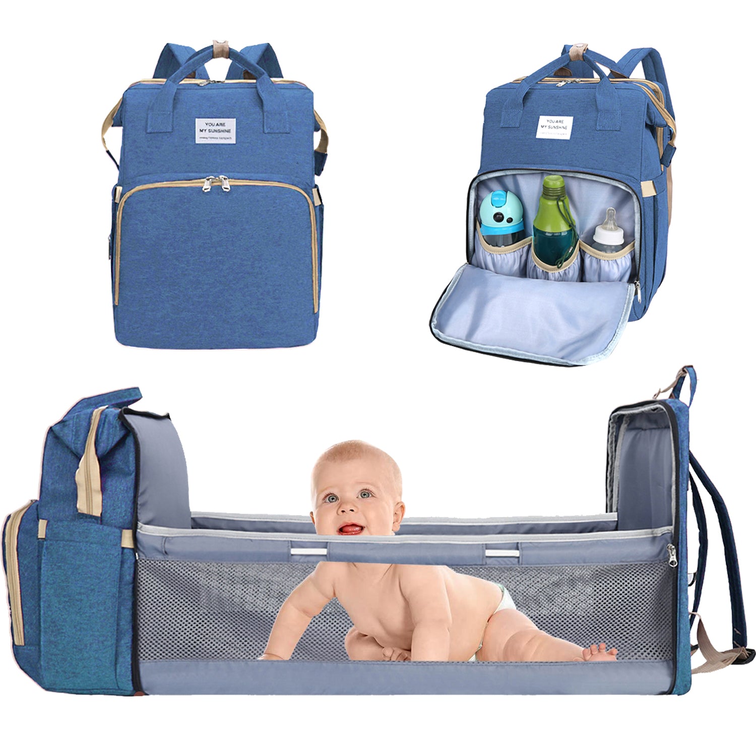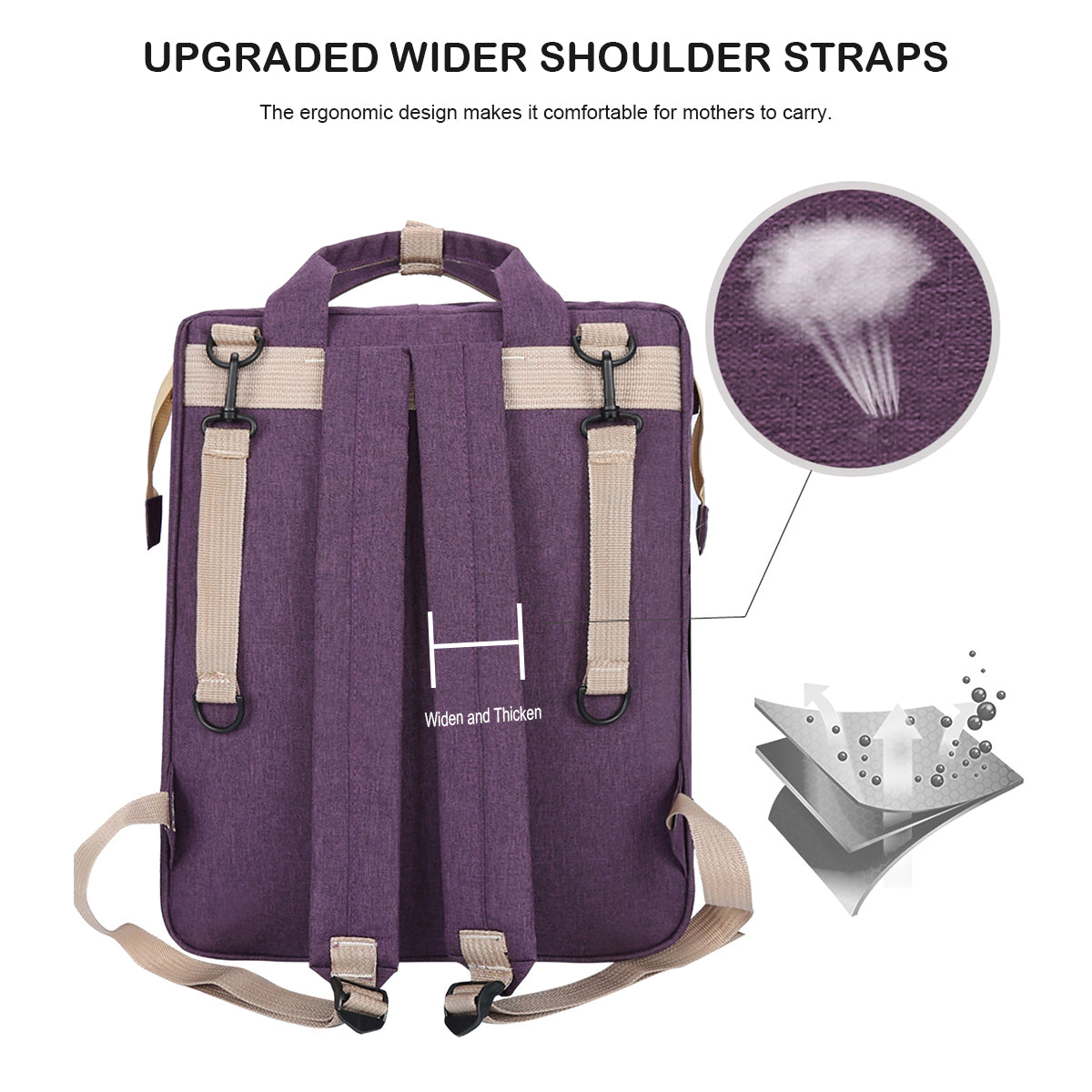 • Comfortable and Convenient: This baby bag can be used as a diaper backpack, a changing station, a baby crib, or it can be connected to a stroller with a buckle on the shoulder strap.