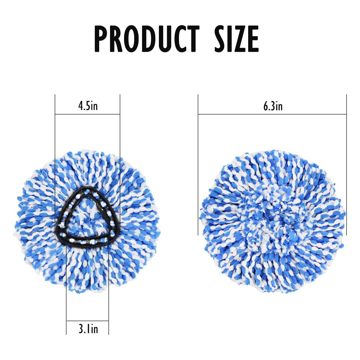 • 【Product Size】 Package Includes: 6 x microfiber spin mop head replacement. Inner triangular rim size 3.1inch and the outer triangular rim size 4.5 inch in diameter. The same size and design as the original, perfect for rinseclean dual system.