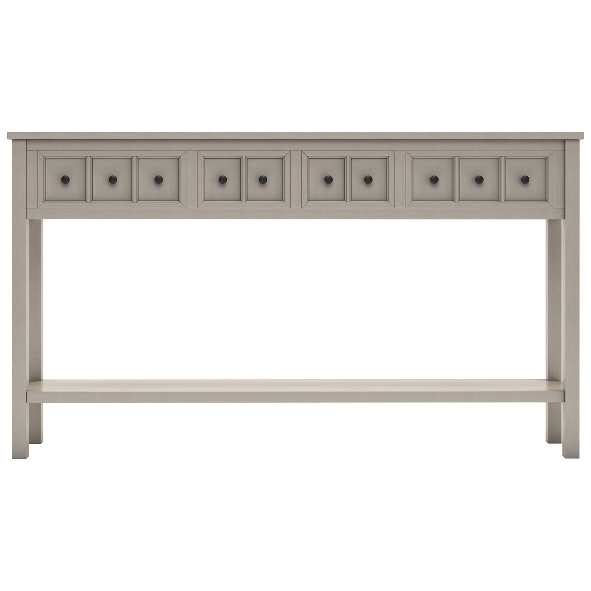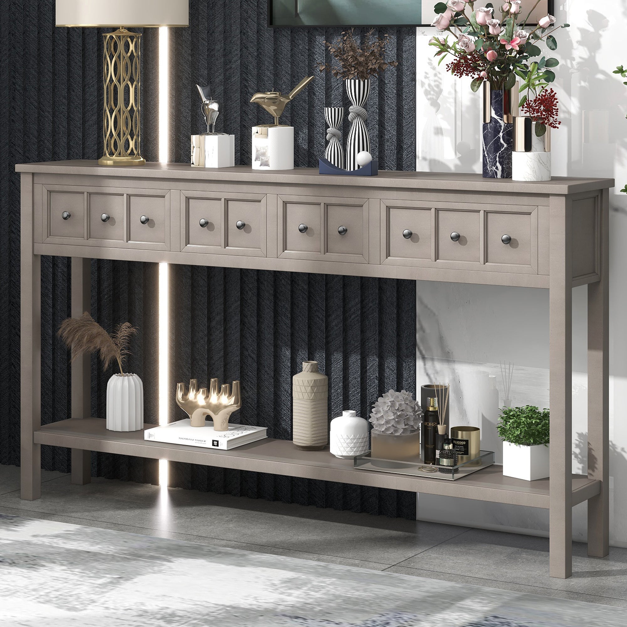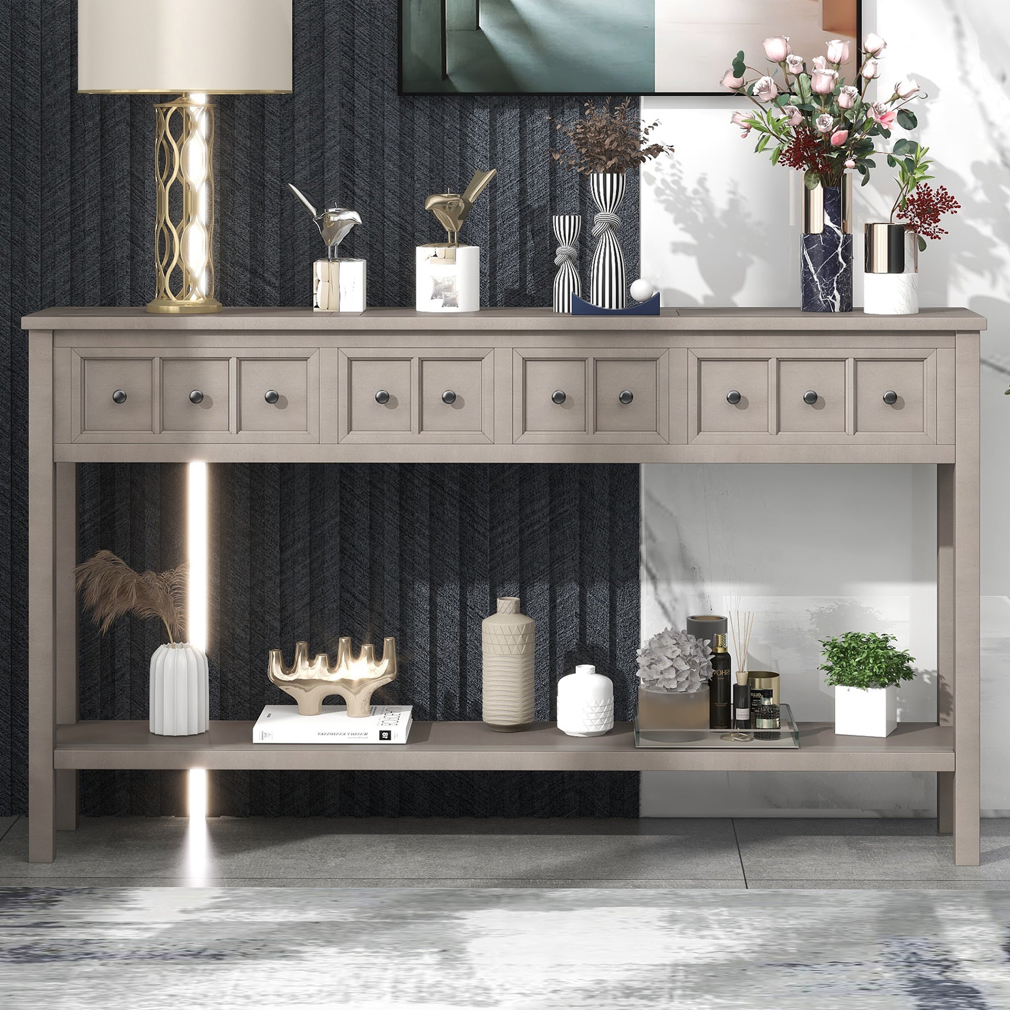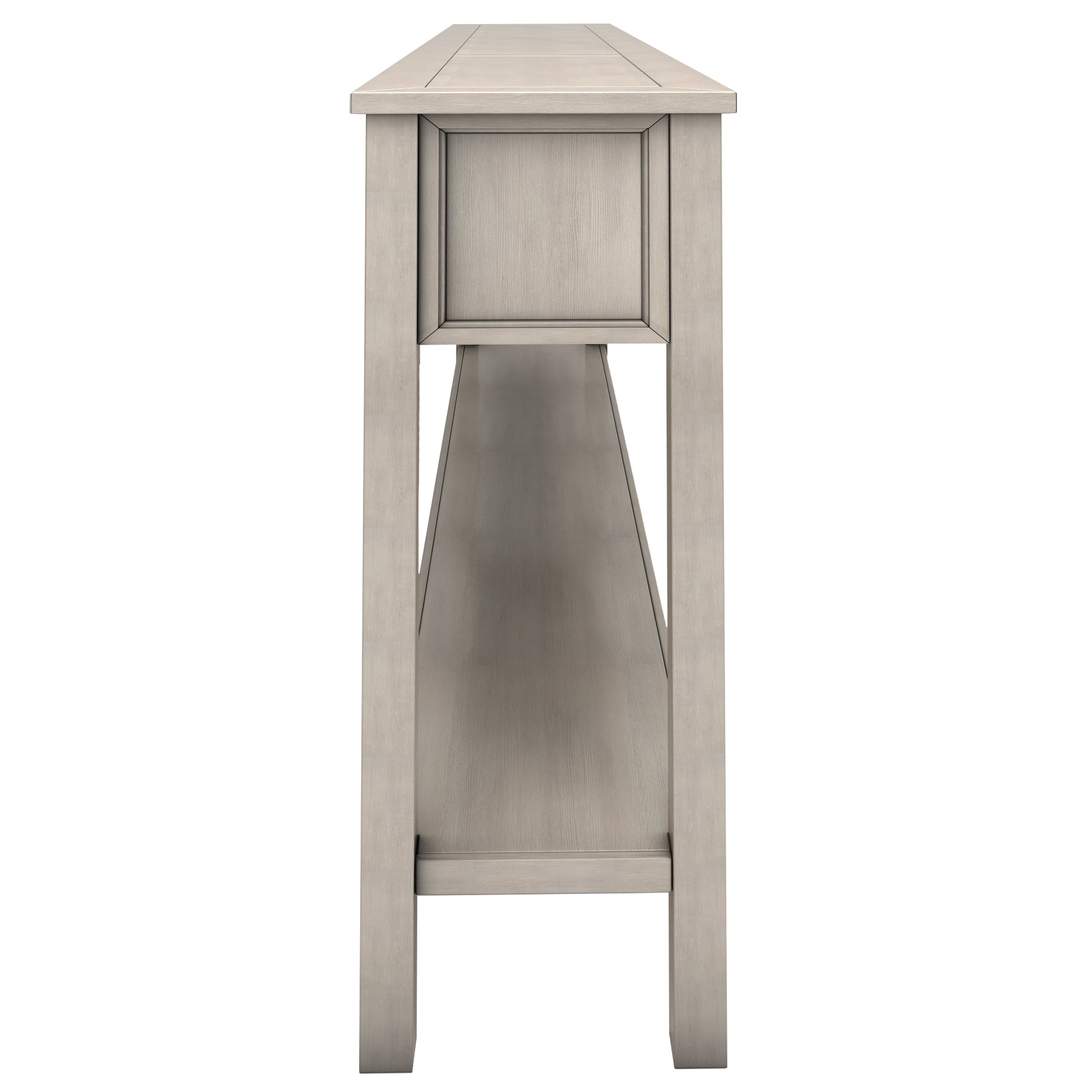 UWR-Nite 60" Mid Century Console Table for Entryway, Long Sofa Table with 2 Different Size Drawers and Bottom Shelf, Gray Wash