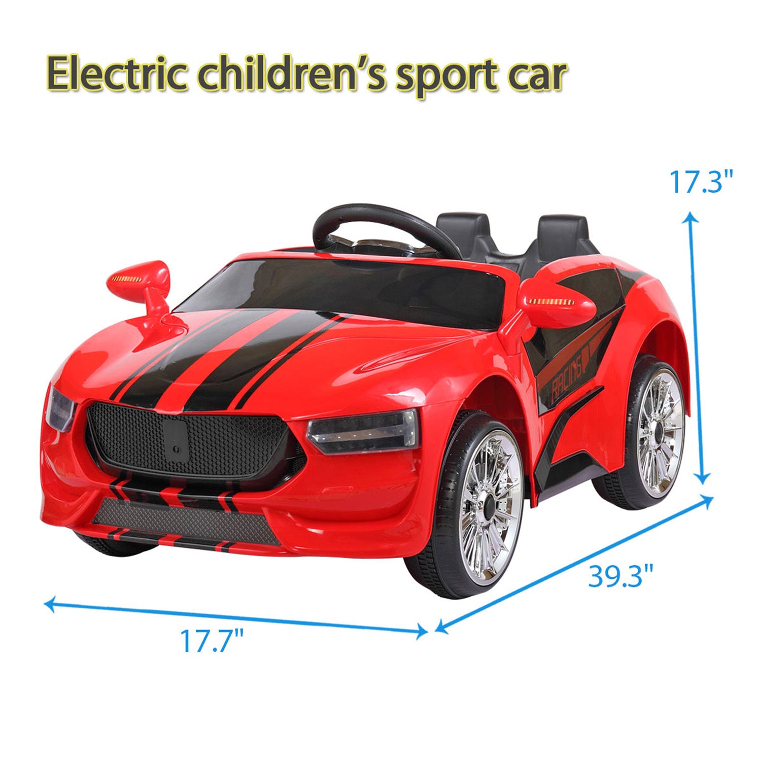 - 🚘【PERFECT GIFT FOR KIDS】: This charming and fantastic electric kids ride-on car (39.3”L x 17.7”W x 17.3”H) designed with a realistic appearance and bright LED headlights is undoubtedly a wonderful gift for your little adventurers at the age of 37-72 months. With a one-button start design, this 4-wheel vehicle can be easily operated.