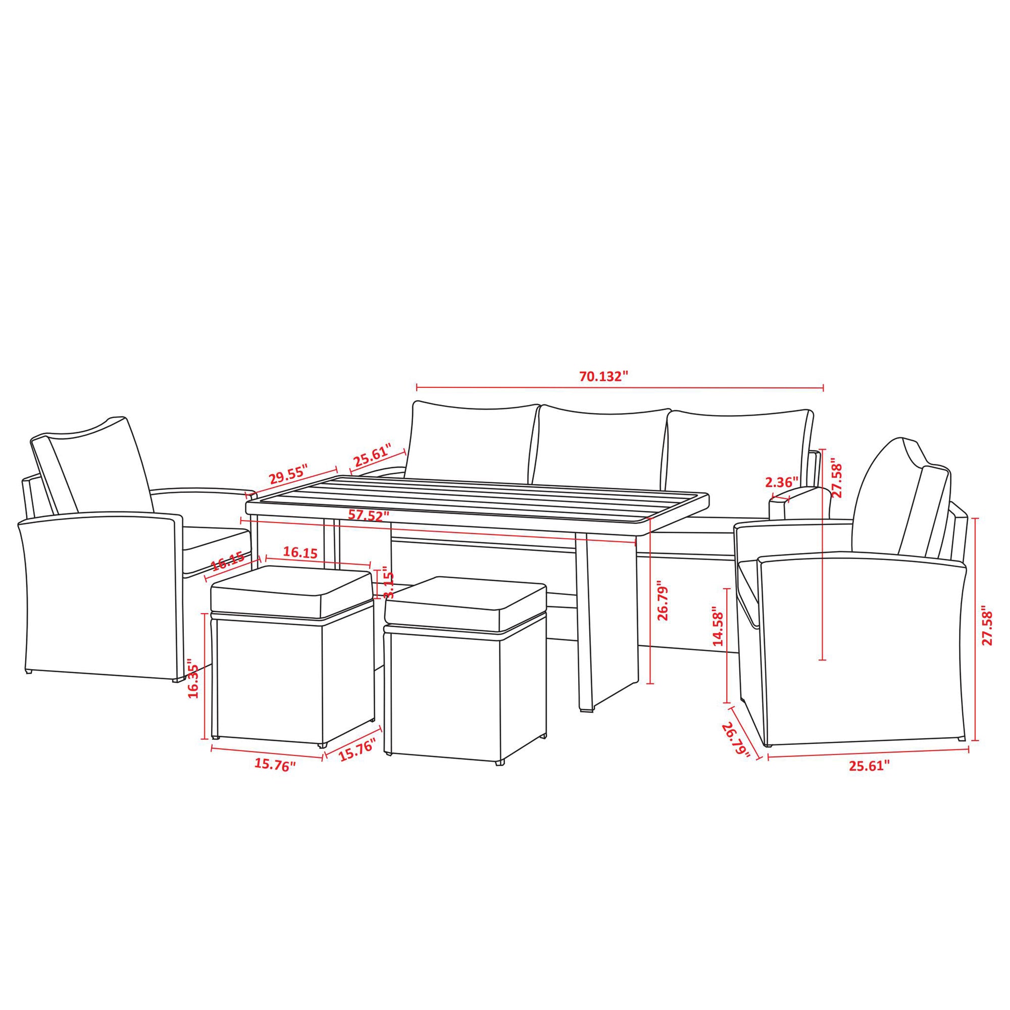 - 【Packing Included】 - You will get 2 x Ottoman, 1 x Sofa, 2 x Chairs, 1 x Table. Complimentary socket wrench is included for your convenience for quick and efficient assembly( usually can finish in 20-40 minutes). All necessary hardware and instructions are also included. Assembly and handling will require two people.