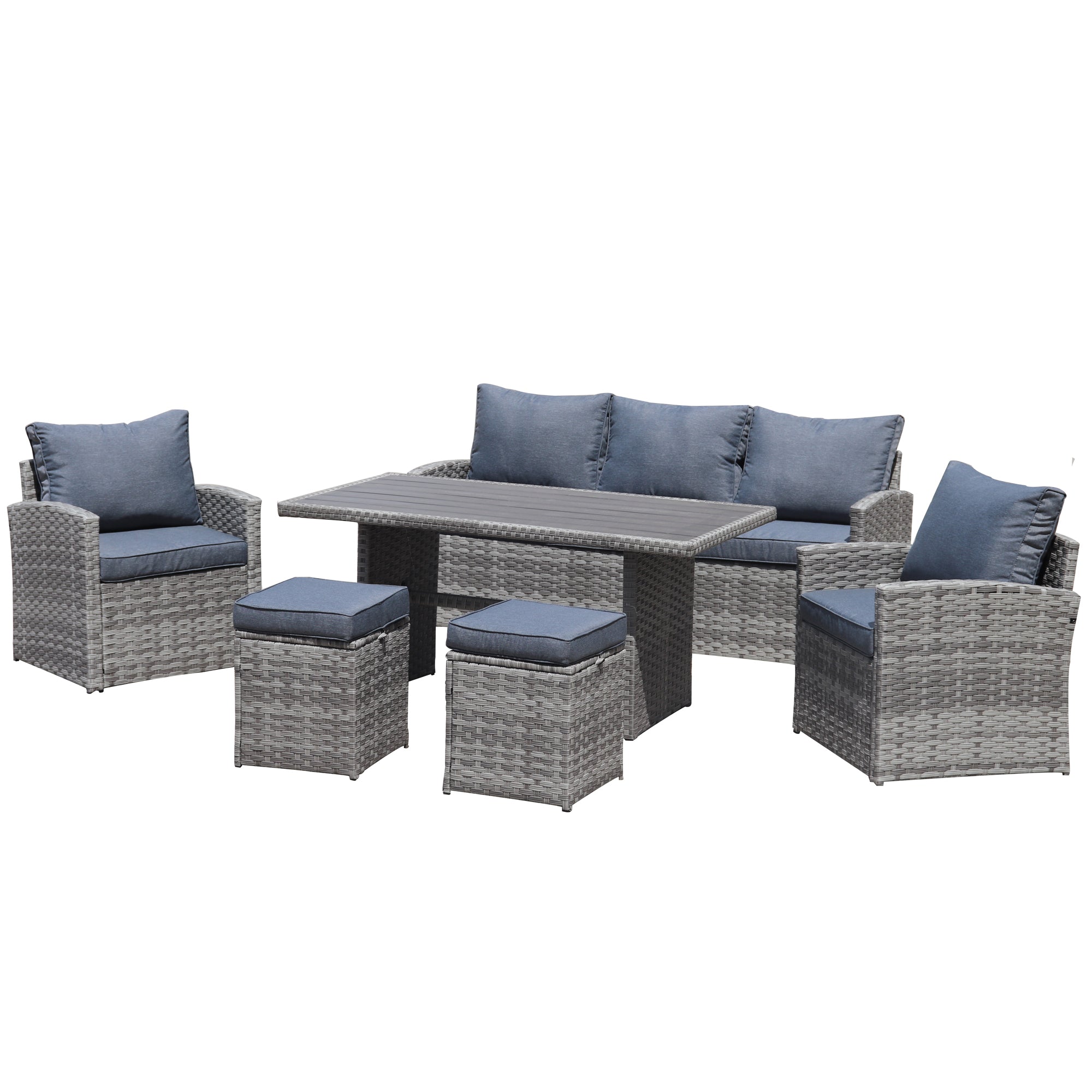 Cfowner 6 Pieces Outdoor Furniture Set, Wicker Rattan Patio Sectional Sofa Sets, Wicker Sectional Patio Set, Patio Dining Furniture with Table & Chair & Ottoman.