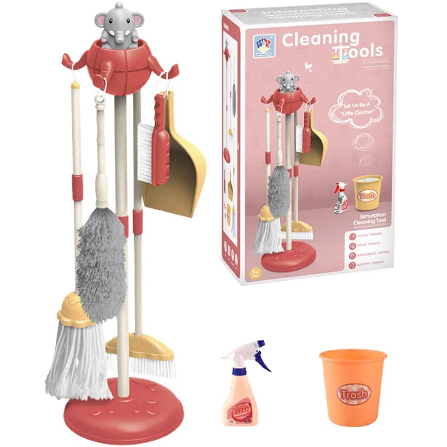 - Inspires hours of pretend play: toddler cleaning set to motivate your child to model independence and use their imagination to have fun; Each cleaning tool gives them an imagined role and pretends task to try.