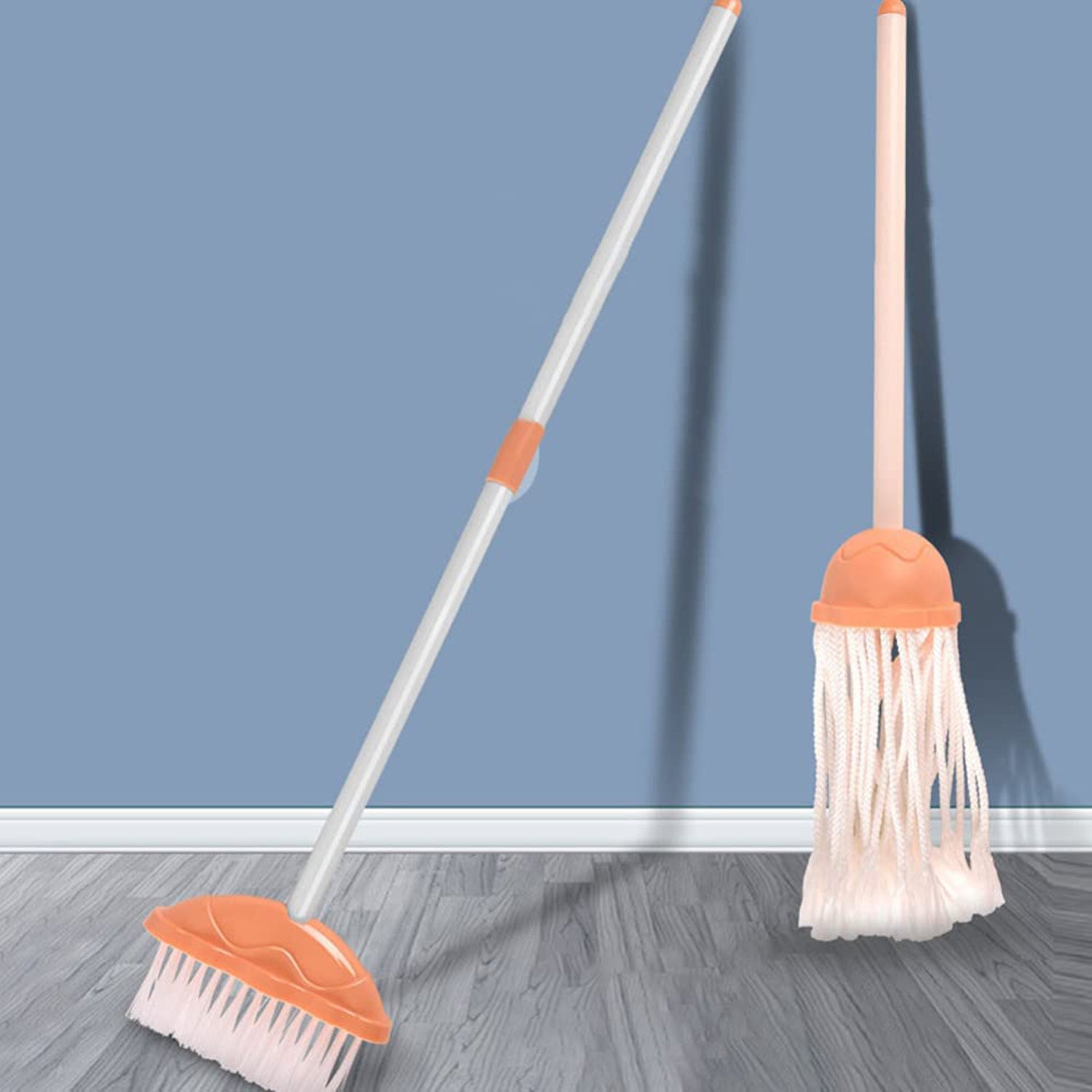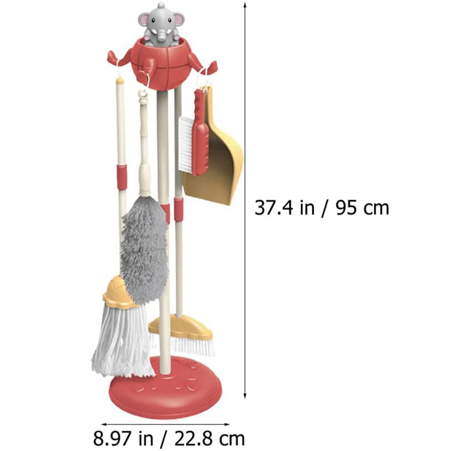 - Great for ages 3-6: kids broom and mop set can dismountable, easy to assemble and store. And the organizing stand comes with 2 poles, for setting the height at 20 inches or 35 inches, easy for your baby to play and hang.
