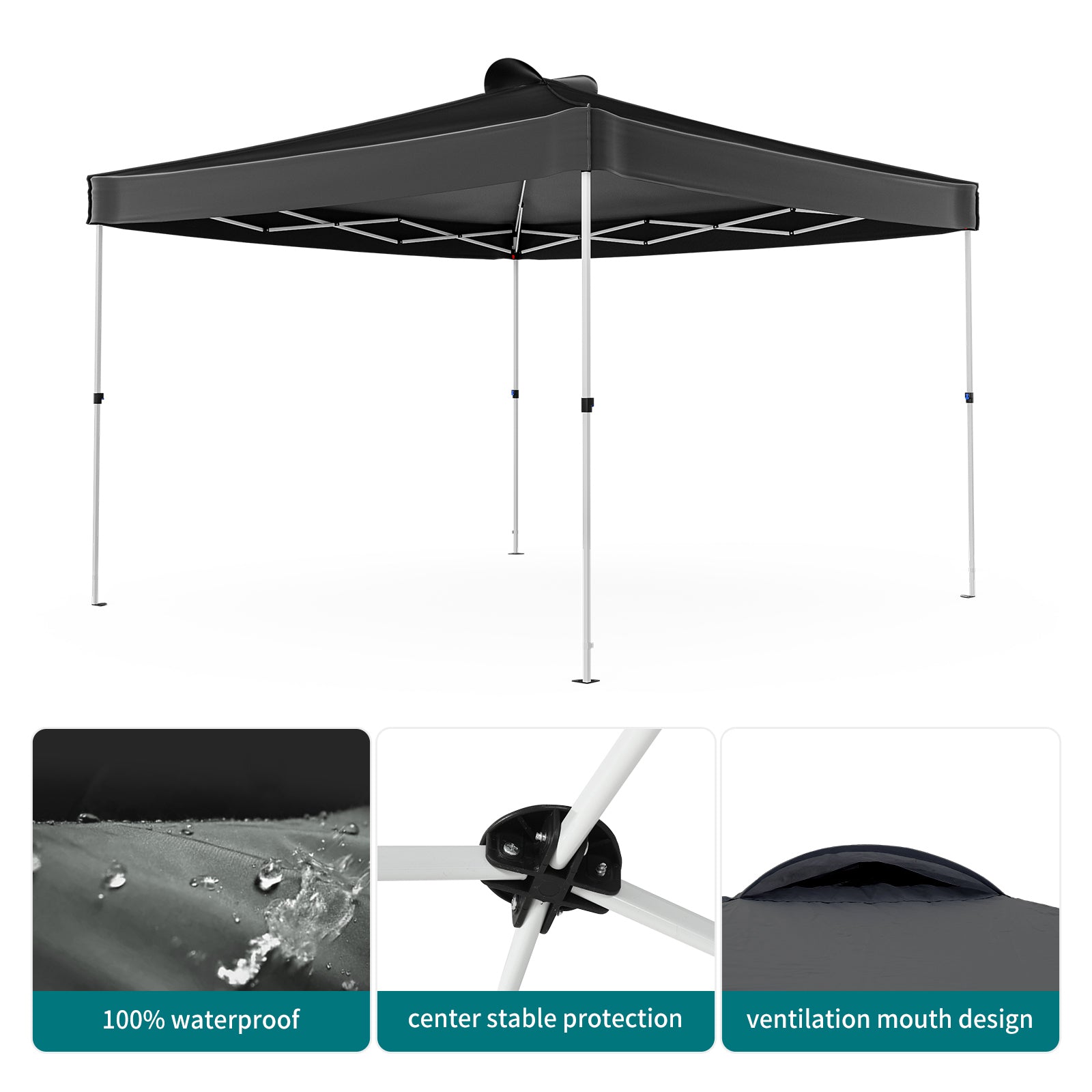 - EASY ONE PERSON SETUP: Easy Pop Up Center Technology design enables One person to easily open and close the canopy from the center without the hassle of locking and unlocking the canopy leg sliders. One pinch-free push, and you’re ready to go!