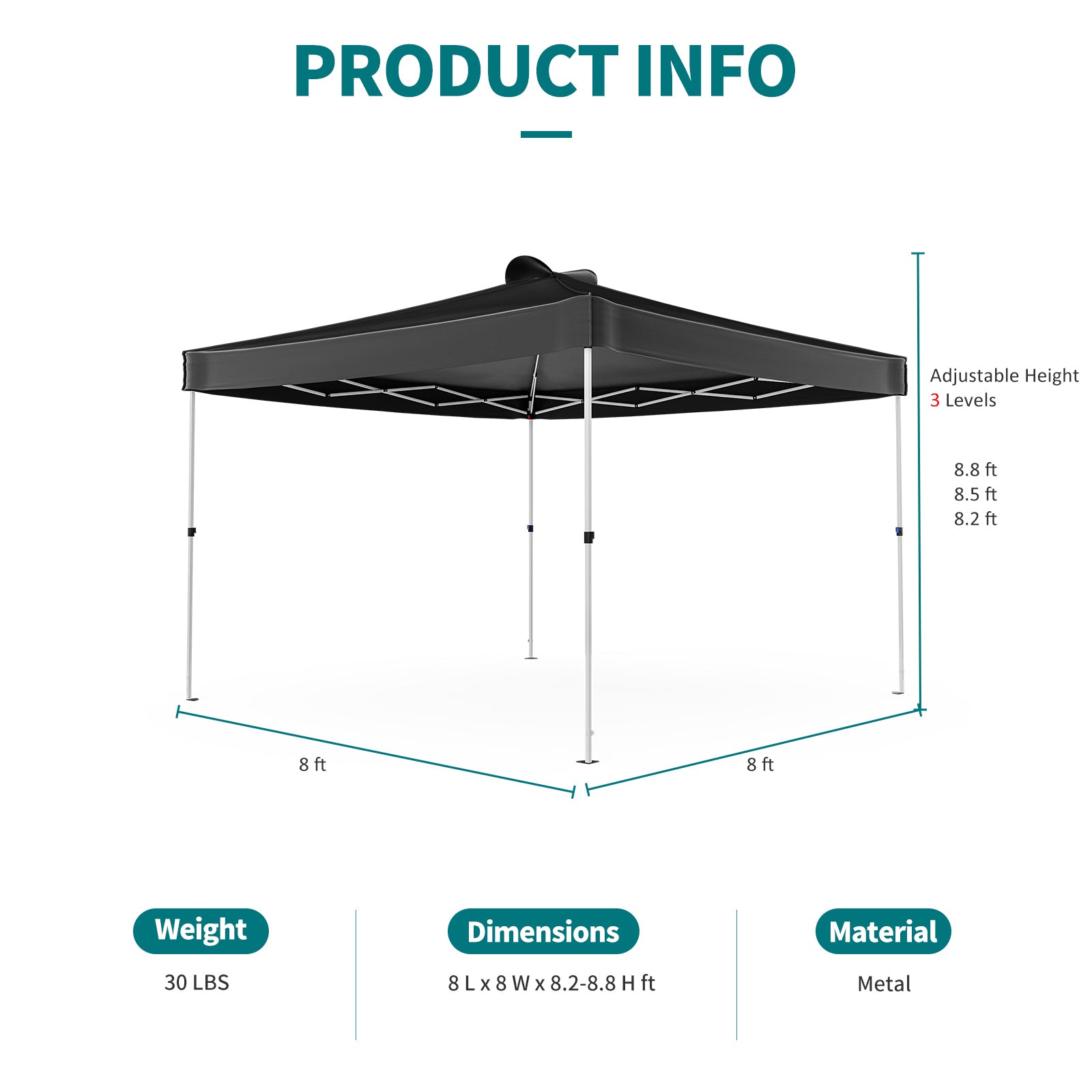 UWR-Nite 8’ x 8' Pop Up Canopy Tent Instant Outdoor Canopy Straight Leg Shelter with Adjustable Height and Wheeled Carrying Bag.