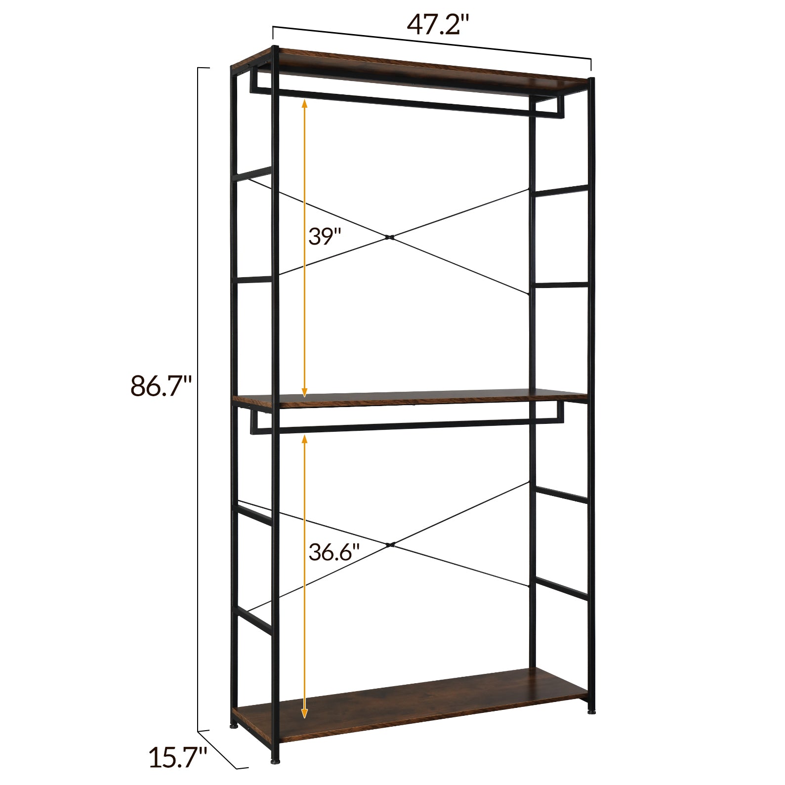 UWR-Nite 86 inches Double Rod Closet Organizer, Freestanding 3 Tiers Shelves Clothes Garment Racks, Large Heavy Duty Clothing Storage Shelving Unit for Bedroom Laundry Room.