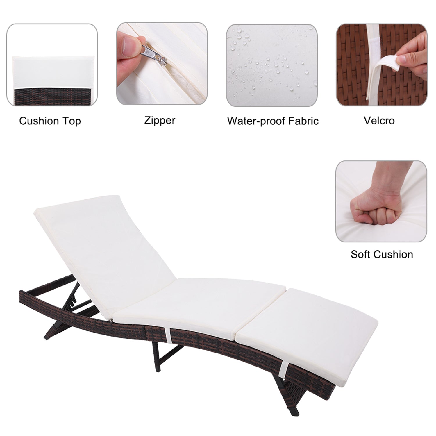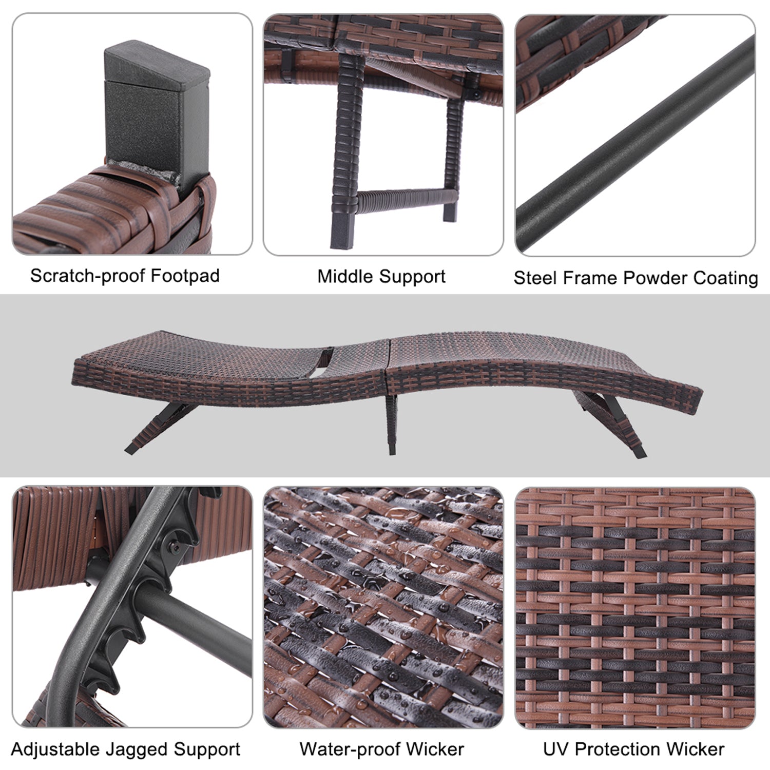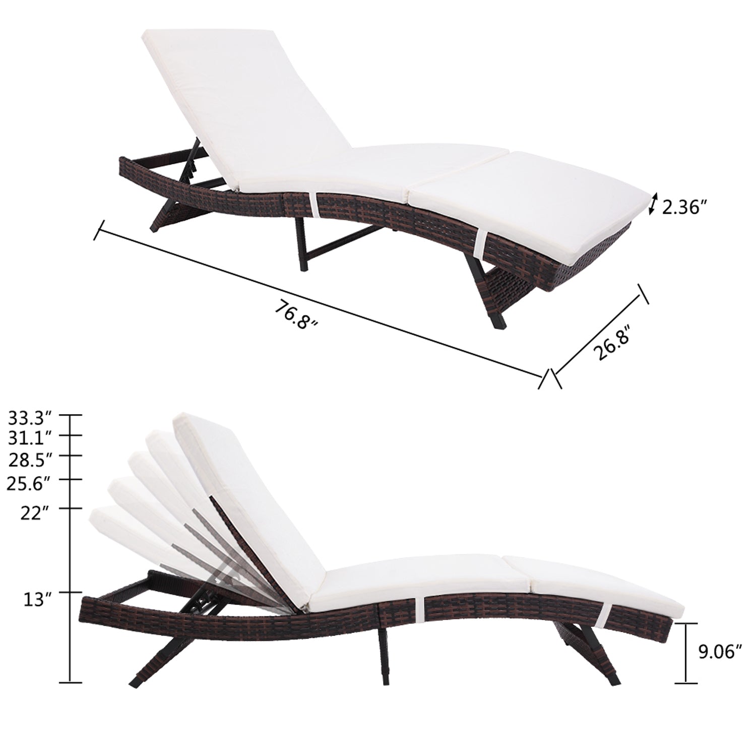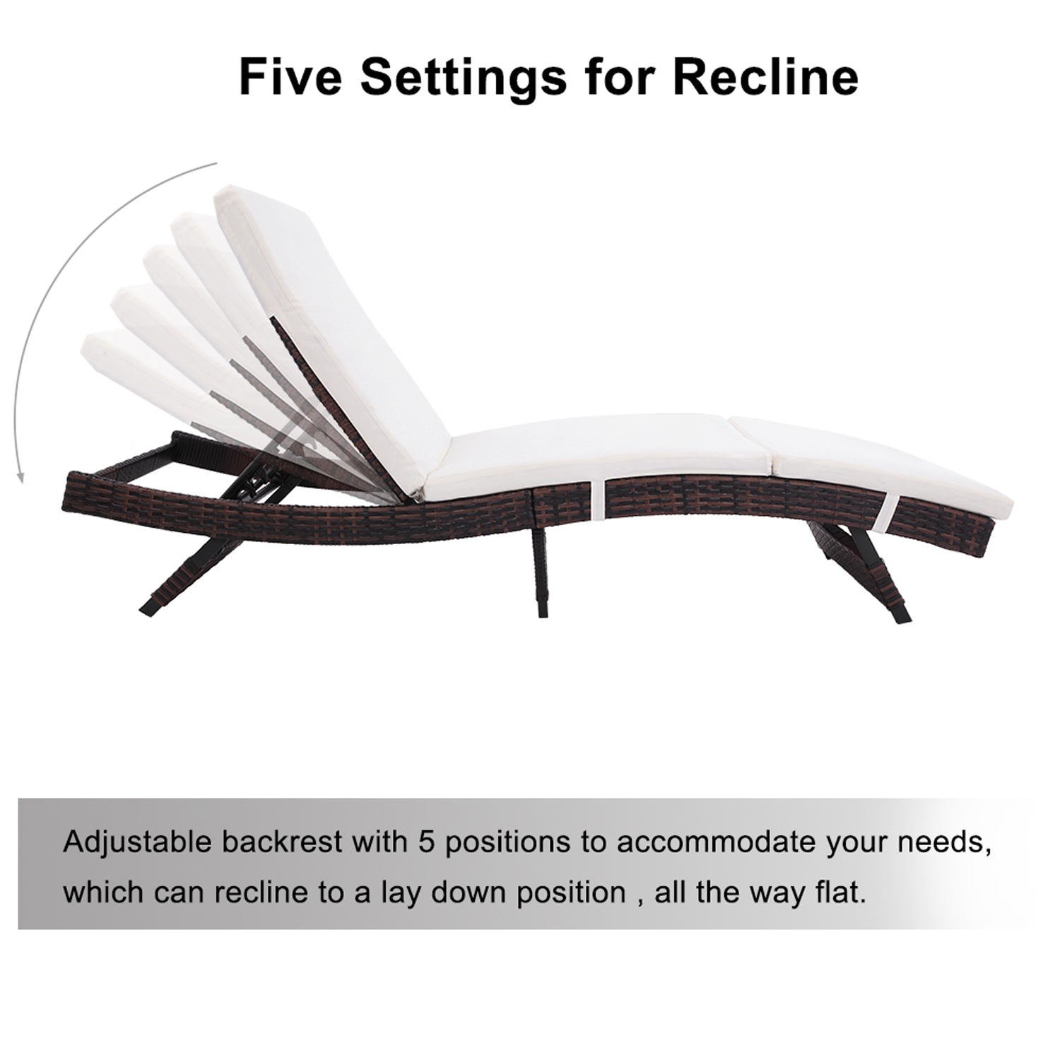 - 【ADJUSTABLE BACKREST POSITION】 There are 4 adjustable options for positioning the back of our outdoor chaise so it can perfectly fit your body depending on your need.