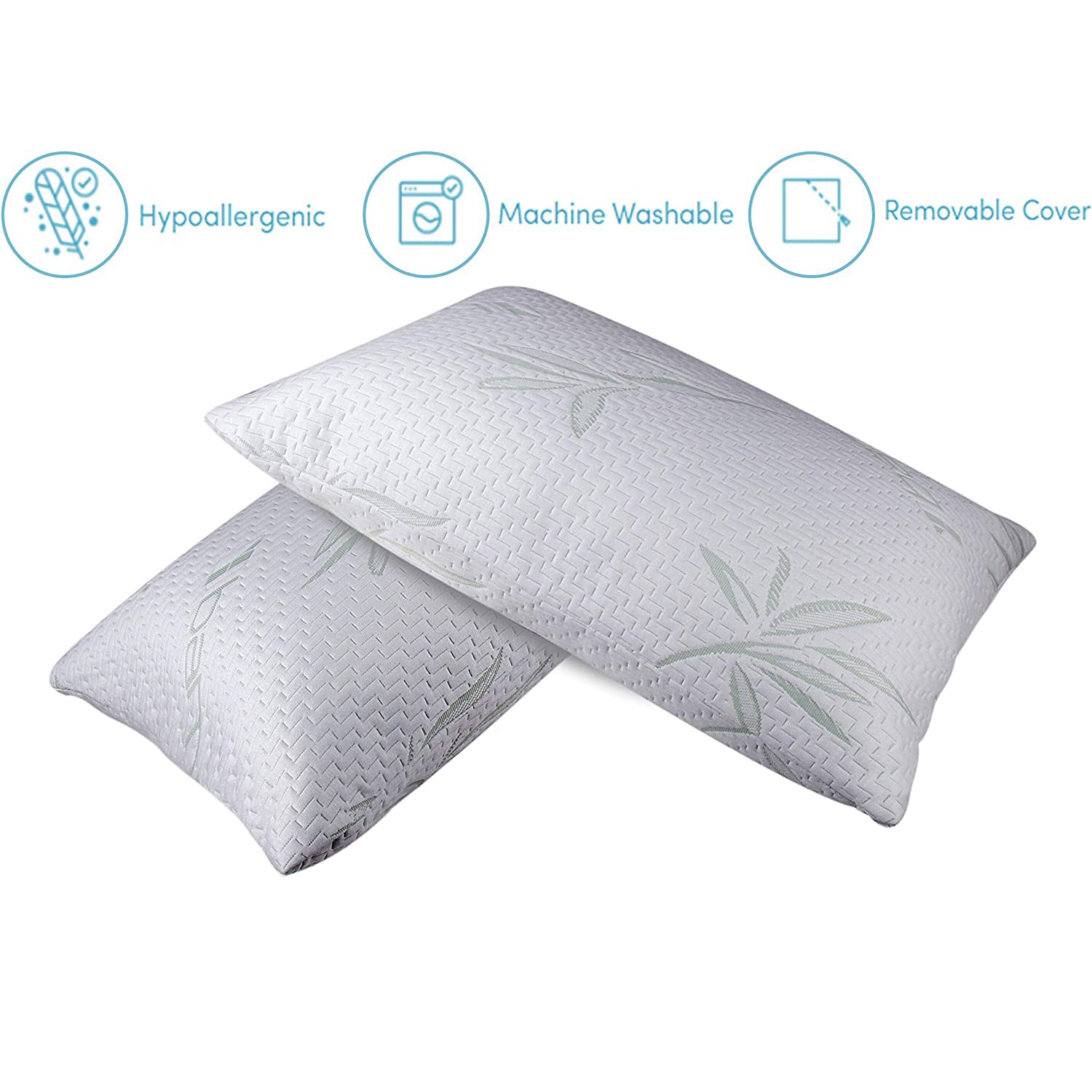 UWR-Nite Bamboo Pillow Memory Foam - Stay Cool Removable Cover with Zipper - Hotel Quality Pillow Relieves Snoring, migraines, Insomnia, Neck Pain (Queen)