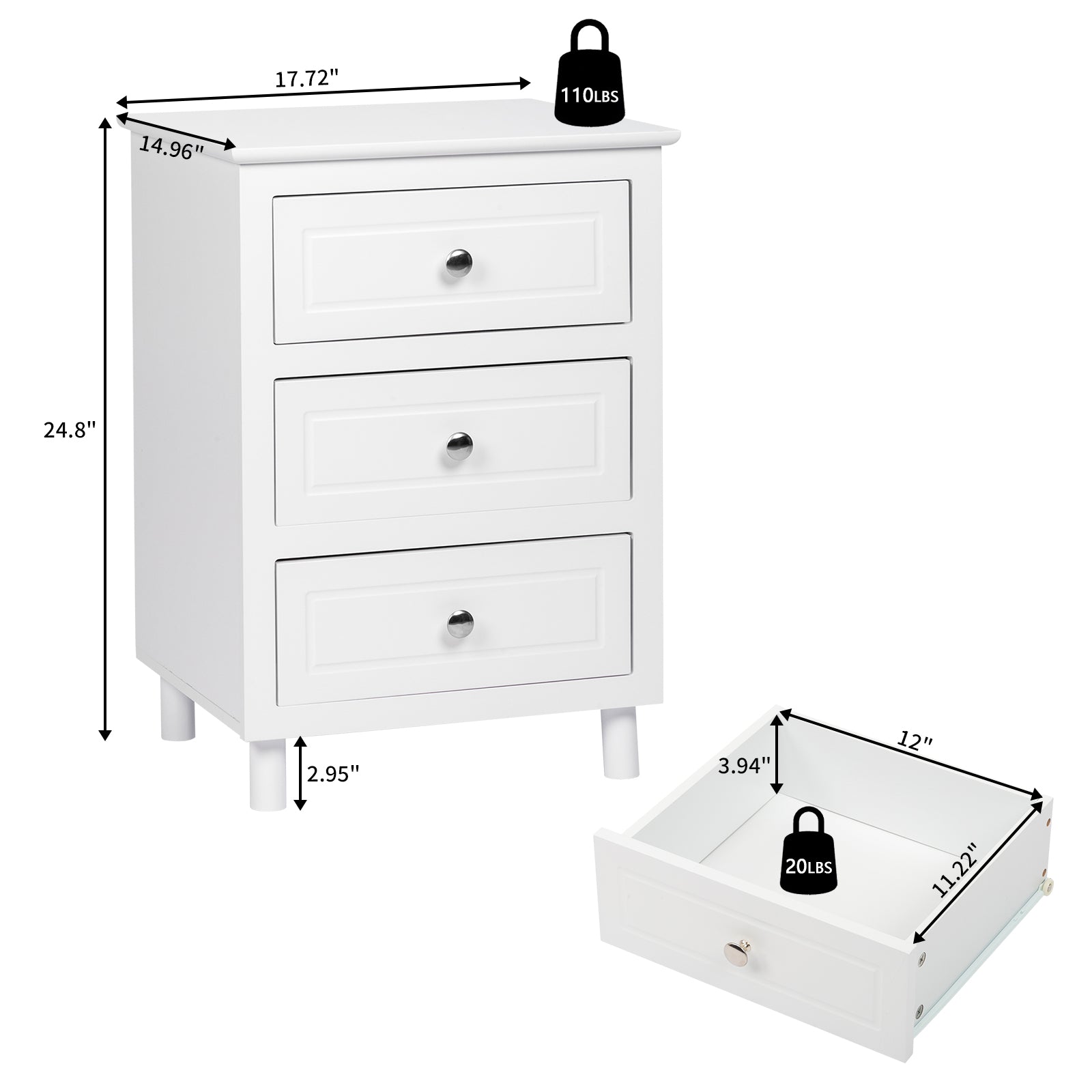 - [Abundant &Sortable Storage]: This 3-drawer side table provides you with sufficient storage space. Besides an open area of 17.75x14.96" on top, you can also have three drawers to to classify and store items.