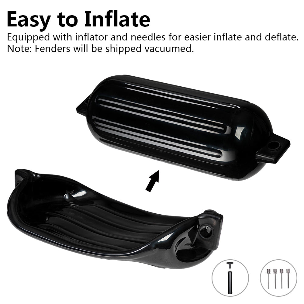 • Easily inflated- If you tired of boat bumpers marine that get flat or deflate, you'll be glad to find these have valves for inflation. You can be in charge of the pressure you desire, very handy to use and take less than 2 minutes to inflate.