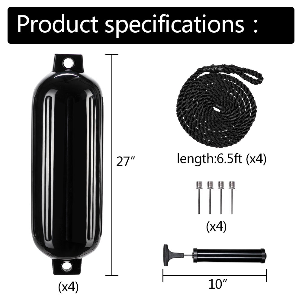 • Warranty and package- 1 year warranty offered by UWR-Nite boat fender. The package contains 4x 8.5 inch boat bumpers for docking, 4x the same color boat fender ropes, 1x air pump and needle.