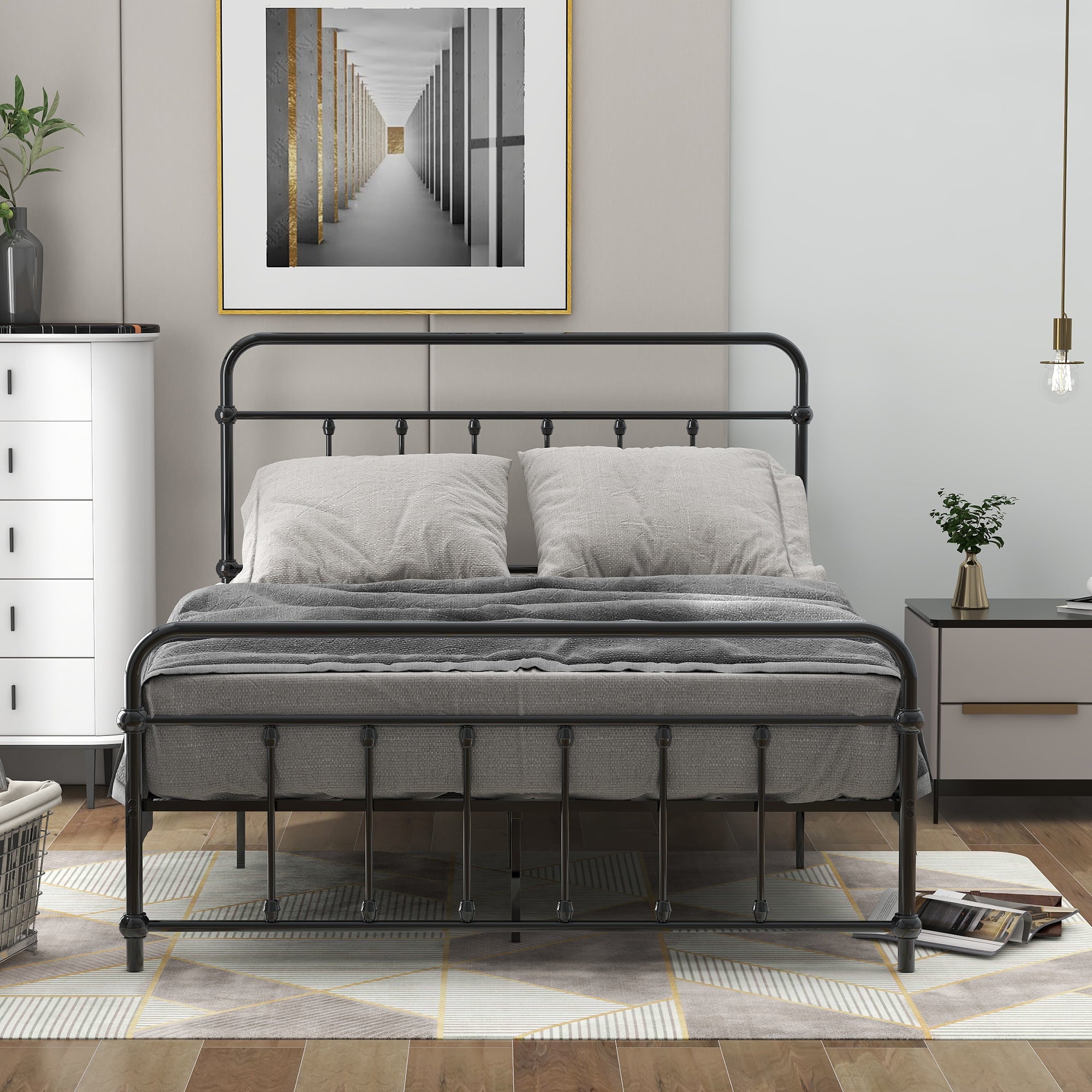 UWR-Nite Classic Metal Platform Bed Frame Mattress Foundation with Victorian Style Iron-Art Headboard, Footboard, Under Bed Storage No Box Spring Needed for Boys Girls Full Size