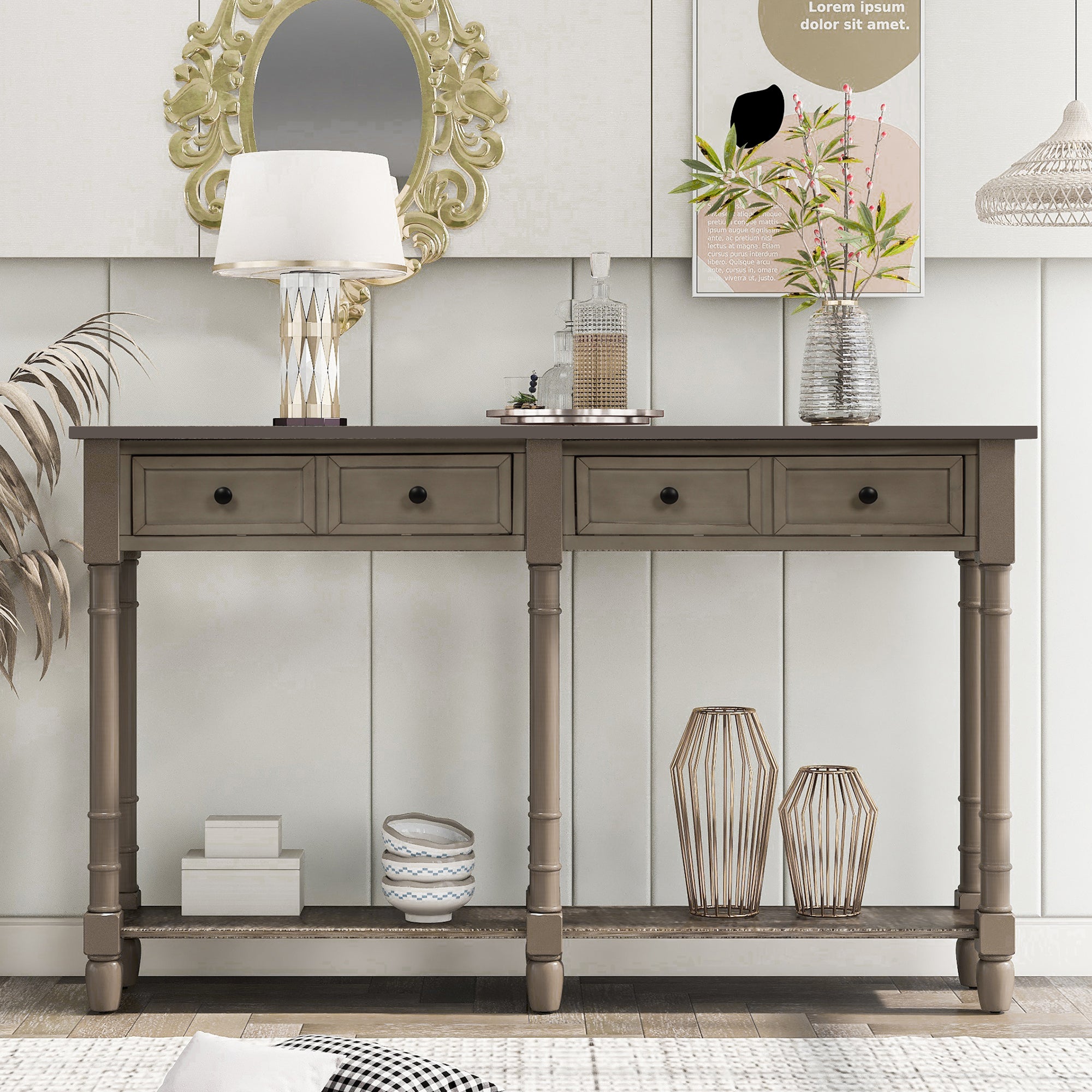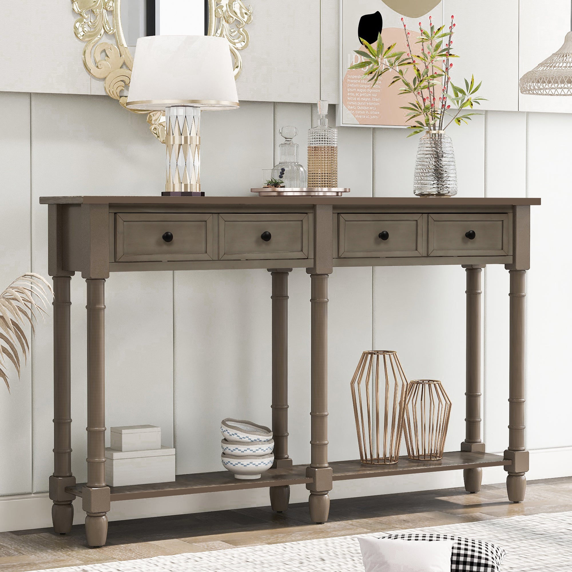 - Our console table is elegant and chic-compatible that fits easily with any decor. Works great to be used as a console table, sofa table and entry table in living room, hallways and receptions.