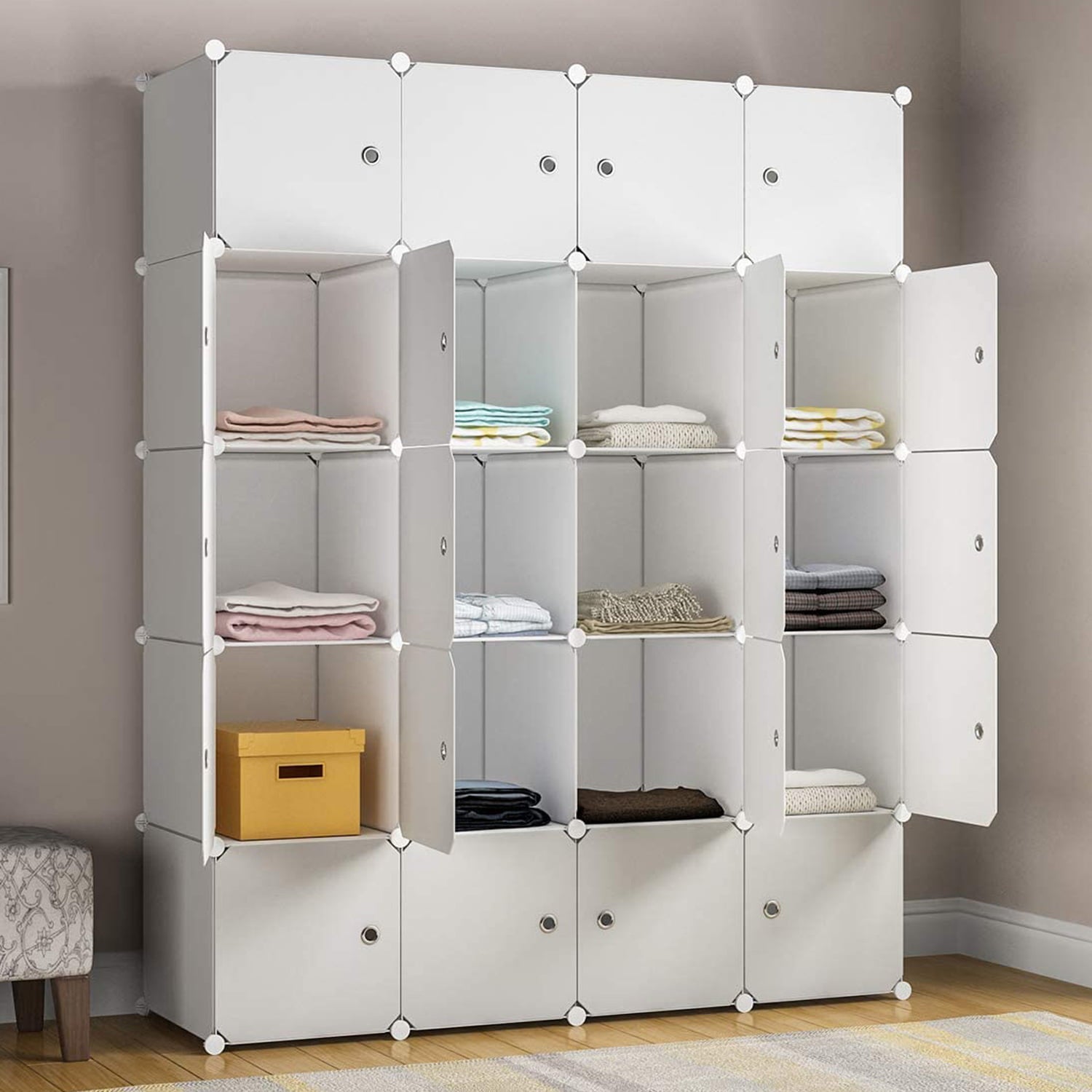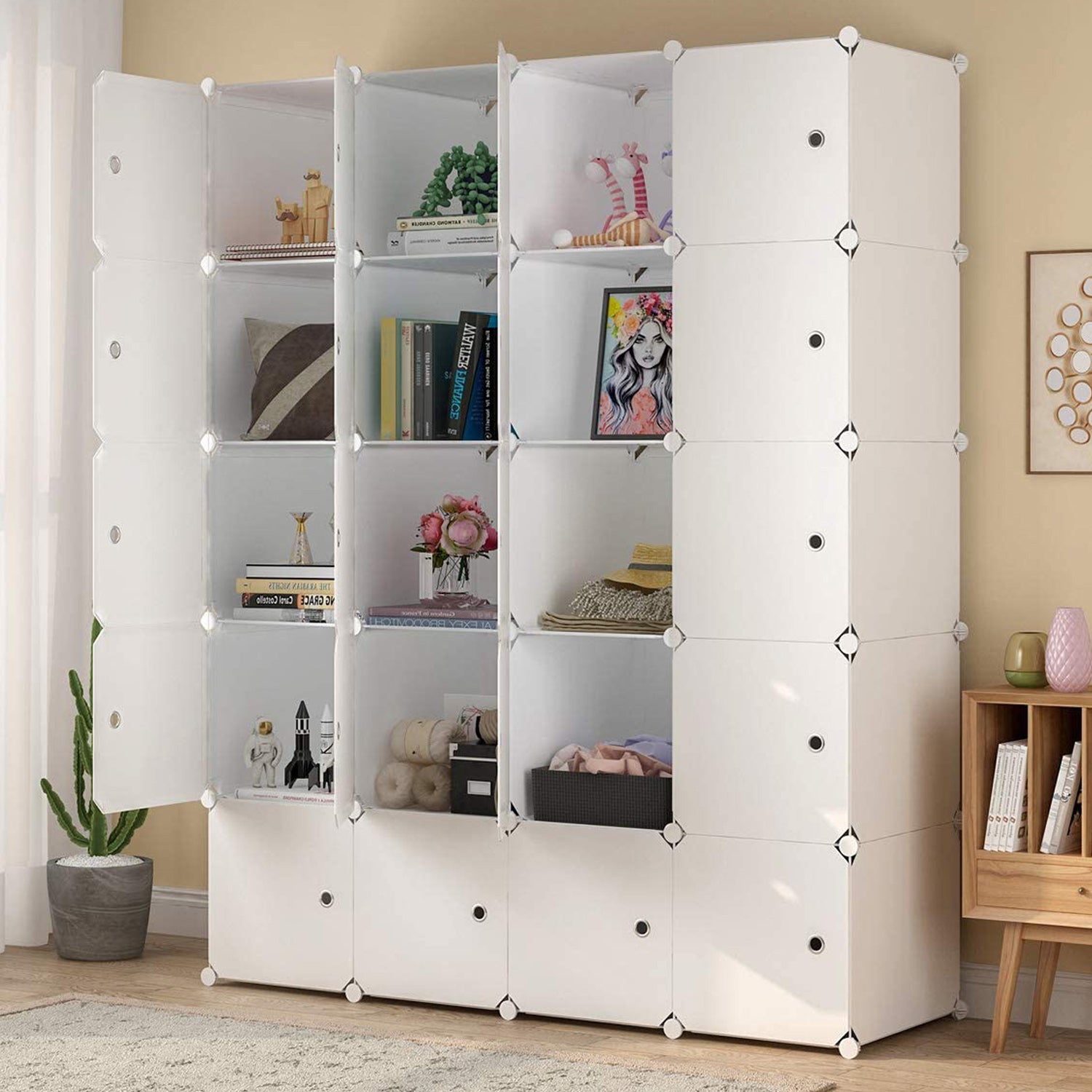 UWR-Nite Cube Storage Organizer, 20- Cube DIY Plastic Closet Cabinet, Modular Book Shelf Organizer Units, Storage Shelving Ideal for Bedroom Living Room Office with Doors