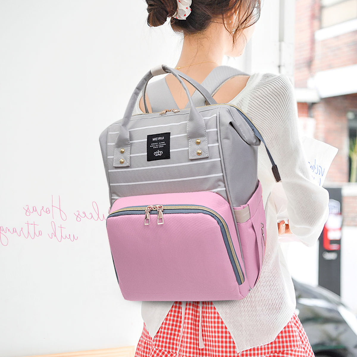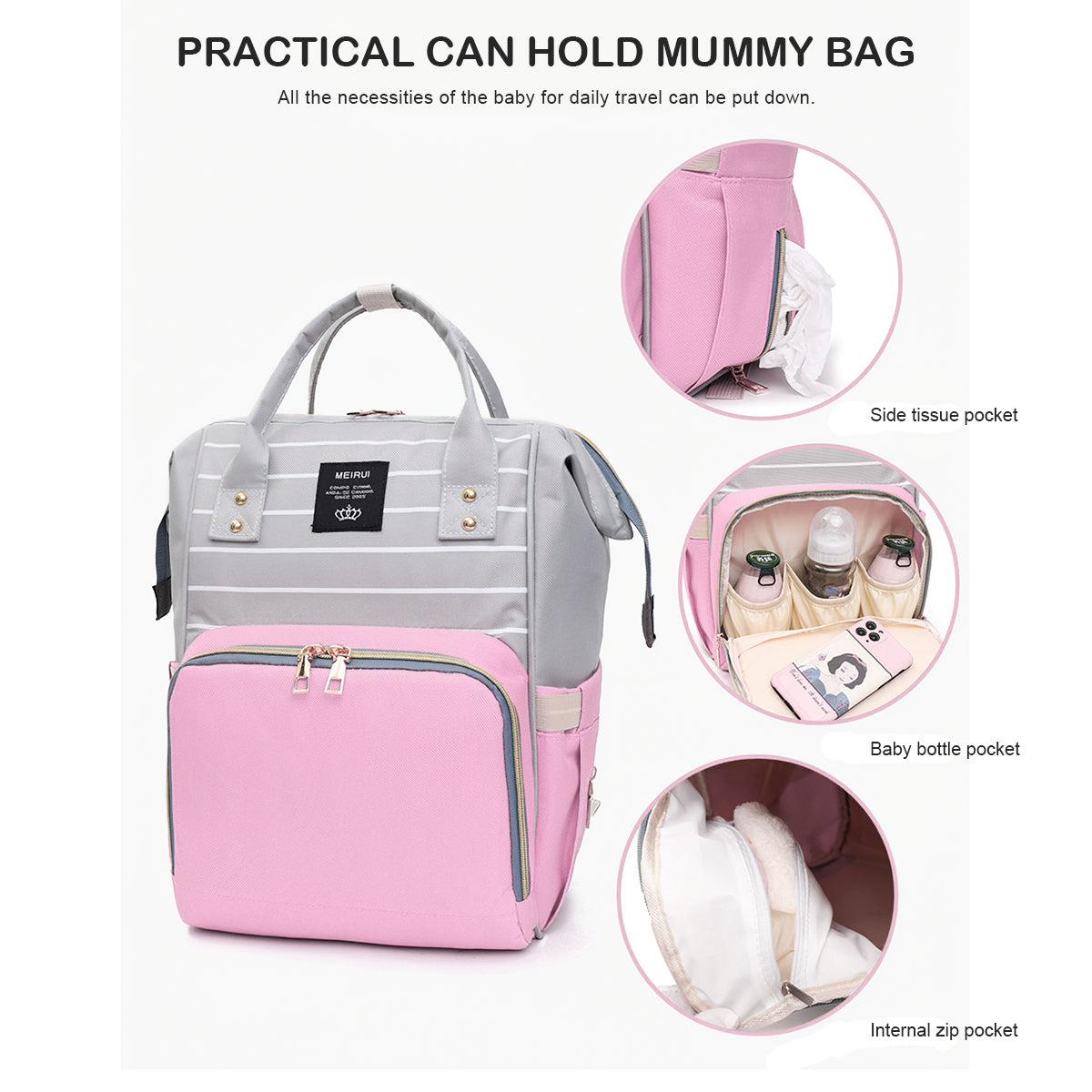 - STYLISH - This backpack diaper bag has contrasting colors and beautiful stripes. It makes you a beautiful mom/dad.