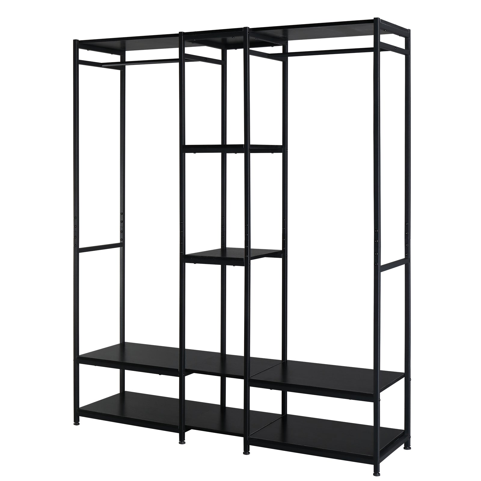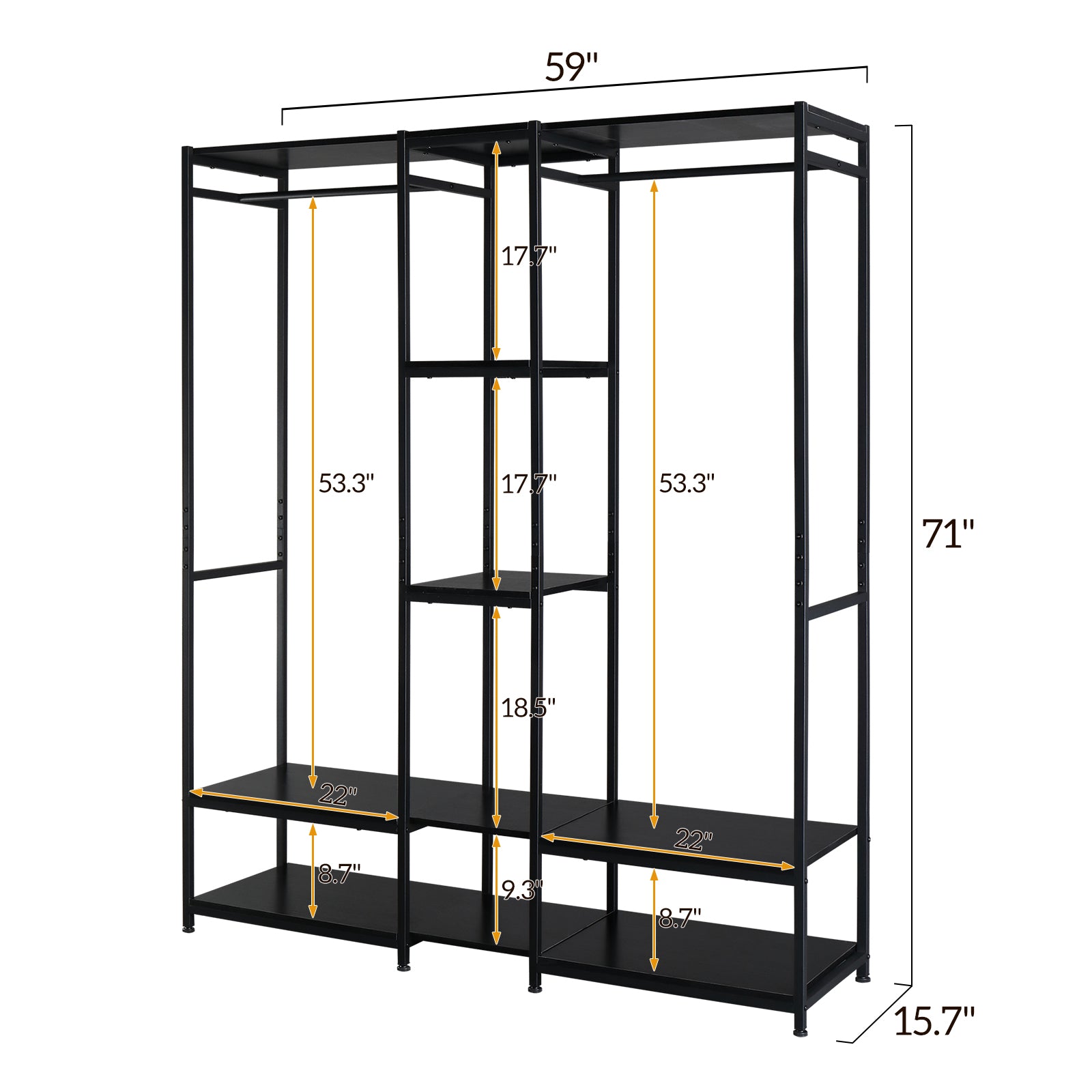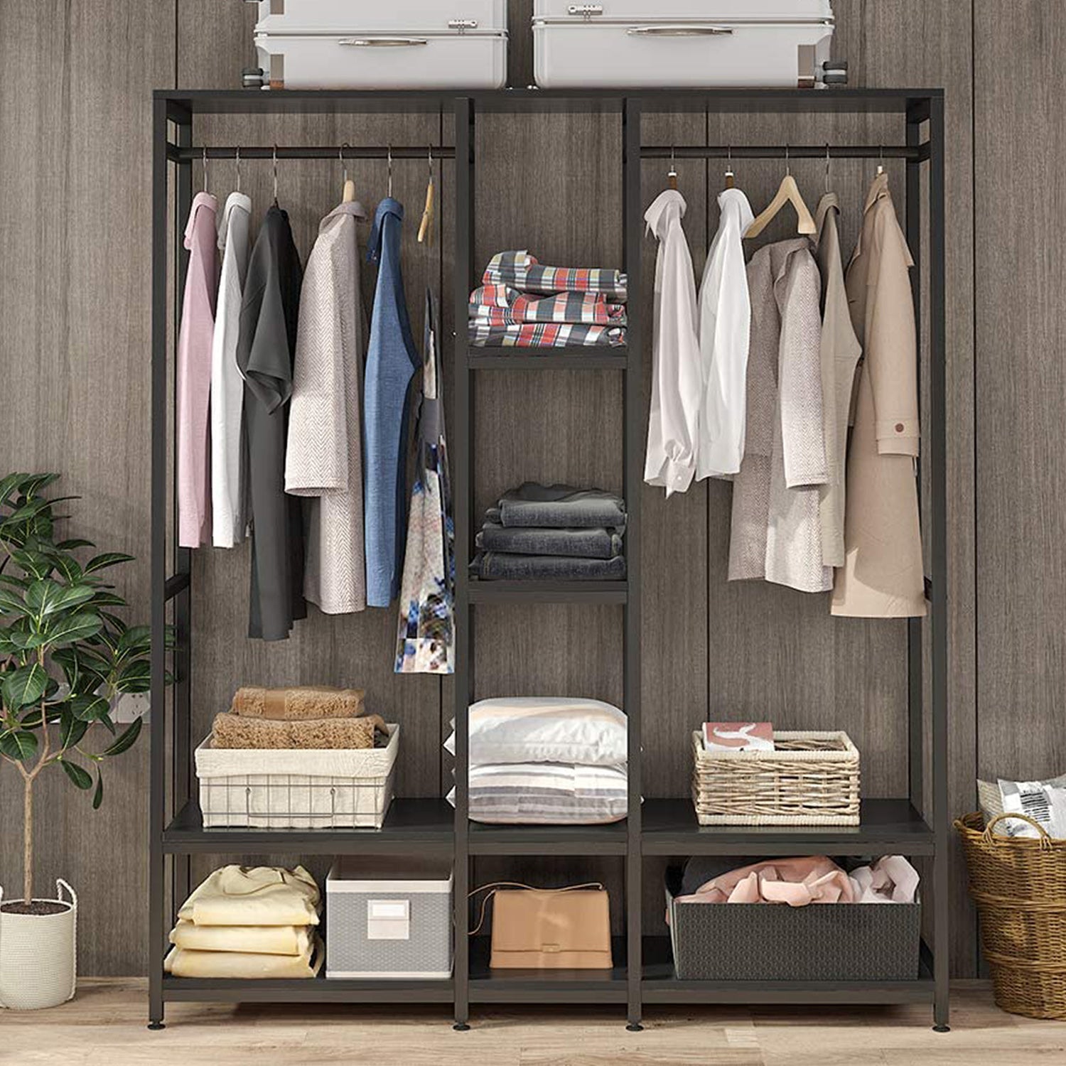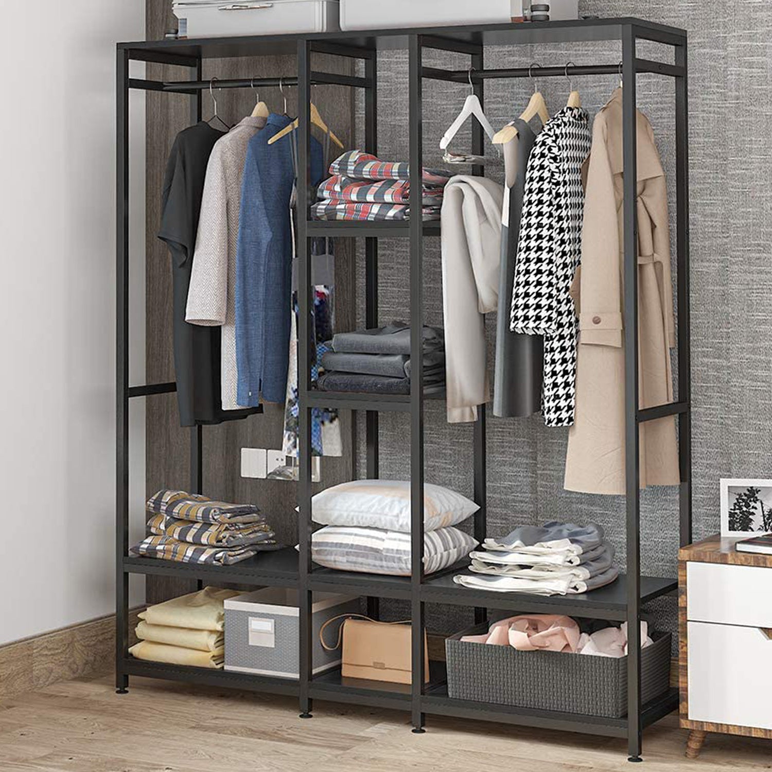 - 【Large Storage Solution】 :Double hanging bars accommodate both long and short garments. Every garment rod hold up 50 lb .4 smaller shelves and 2 bigger shelves ensure you plently of room to place clothes, accessries, shoes etc. And put large box or off-season clothes on the top for added storage.