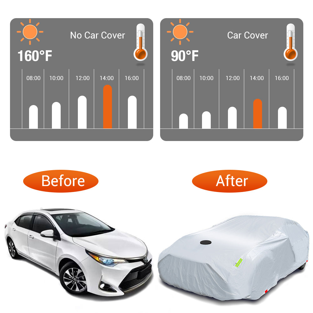 - 【All weather protection 】Lightweight car covers can effectively protect your vehicle from harmful UV rays, dirt, dust, snow, frost, rain, Fallen leaves, industrial pollutants, bird droppings and other extreme weather. Perfect for indoor and outdoor use.