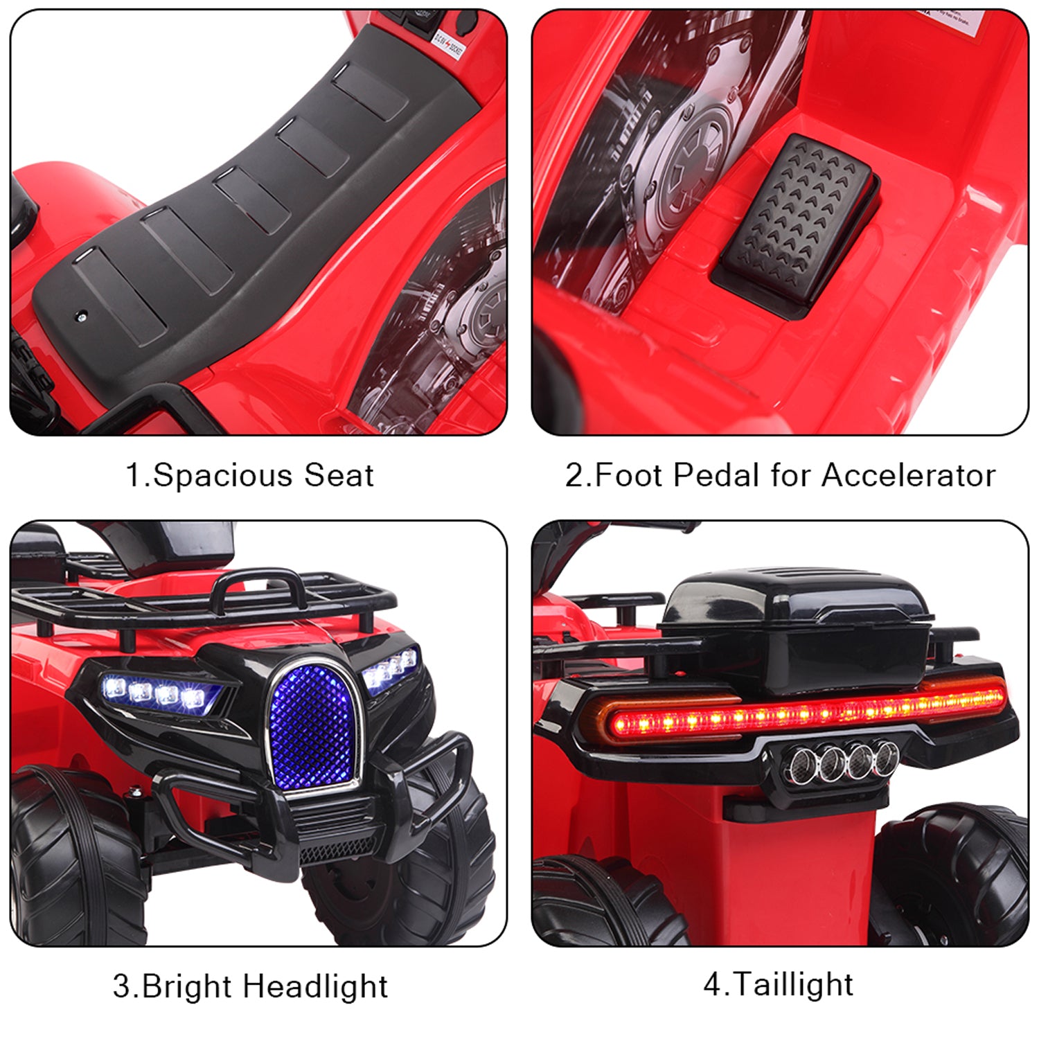 UWR-Nite Electric 4 Wheeler Ride On Car for Kids, 6V Battery Powered Electric ATV Toy Car with Music, Horn, LED Headlights, 4-Wheeler Electric Ride On Toy Car for Kids