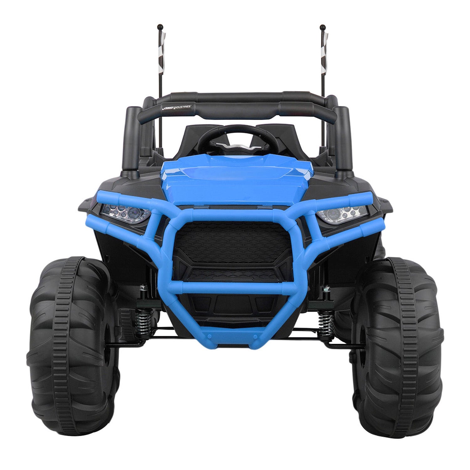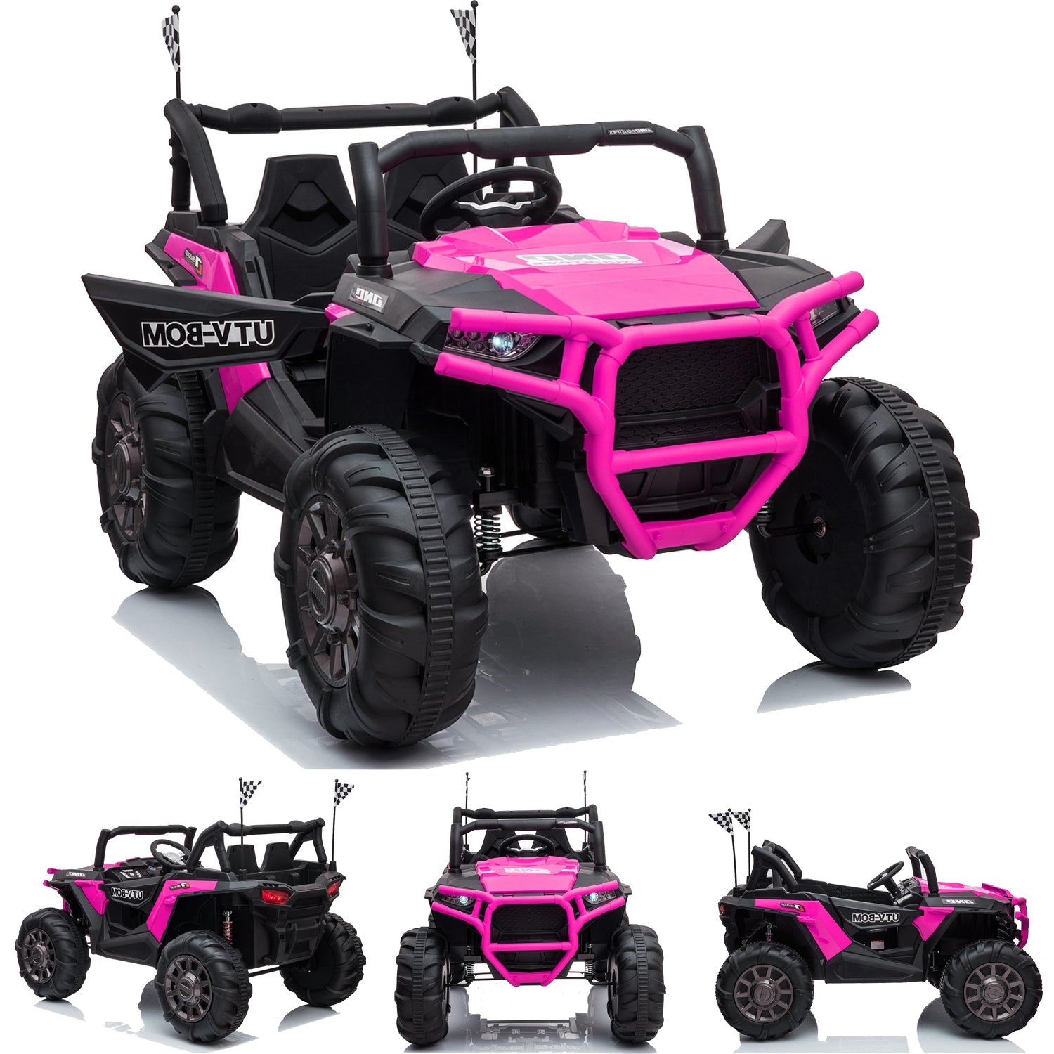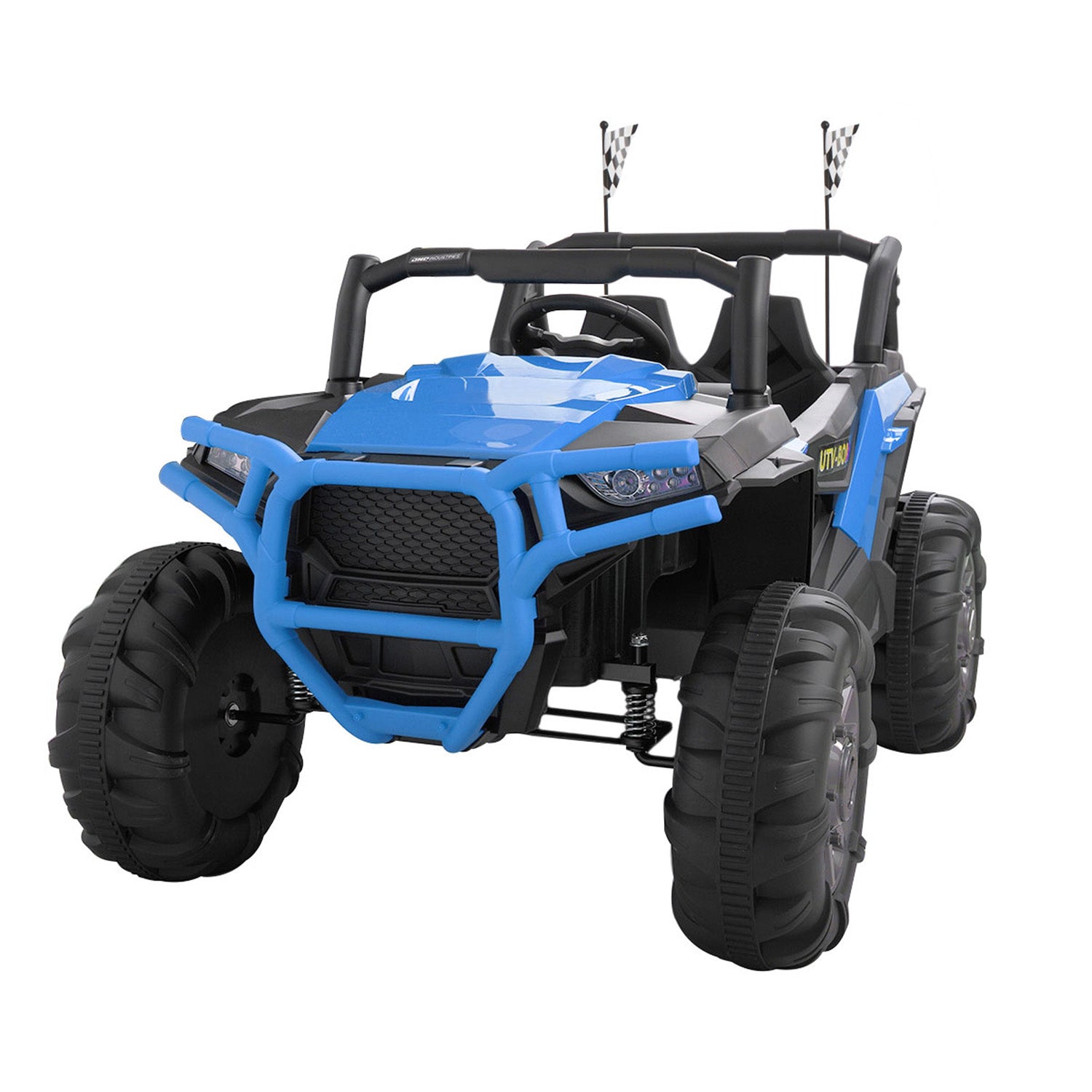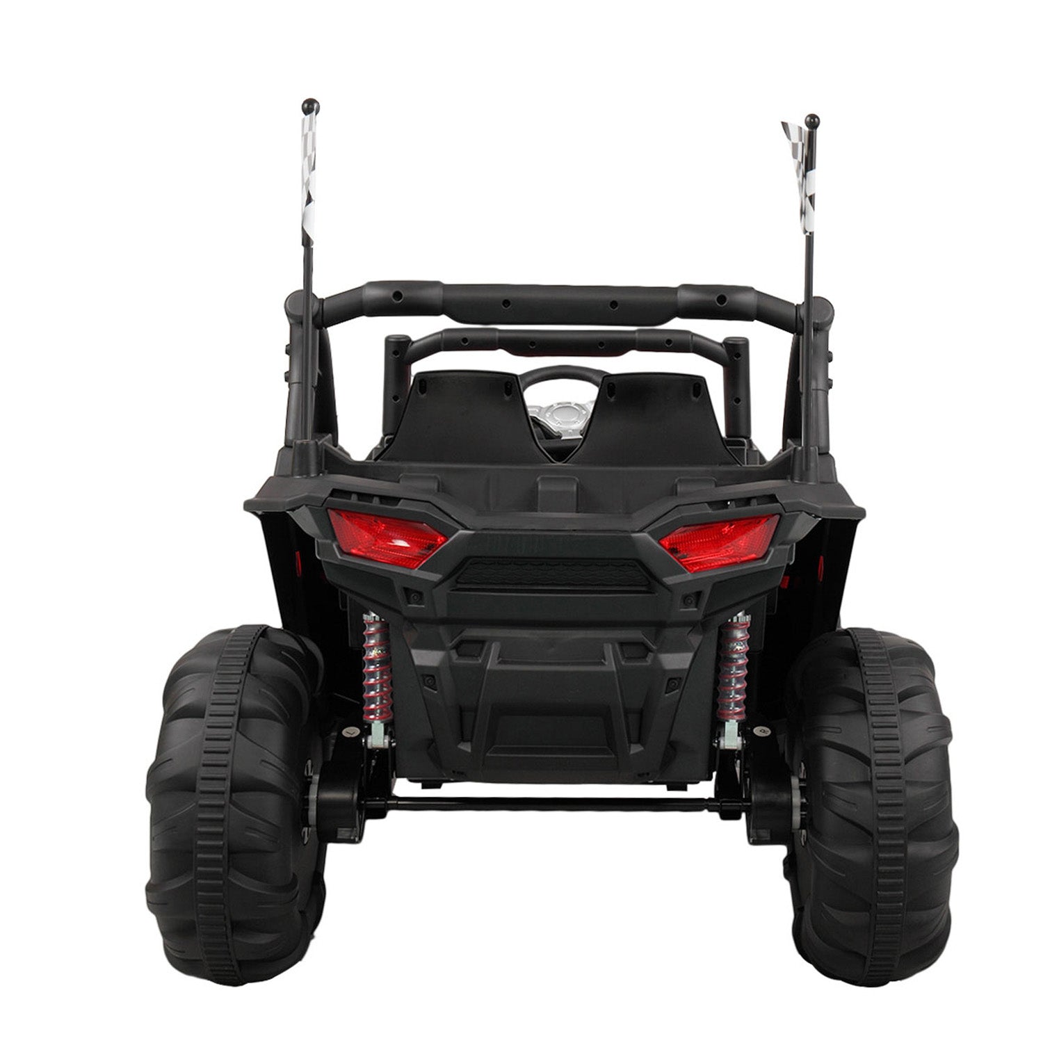 In order to meet your little adventurer’s need to explore the outdoors, UWR-Nite kids ride-on SUV with attractive colors, complete equipment and safety design is a great choice. Equipped with built-in music, volume adjustment, MP3, USB, TF card, Bluetooth, 3 speeds, forward/backward function, buffer beam, and double seats with a safety belt, the 4-wheel kids truck offers a realistic and safe driving experience for little youngster. 4 big sturdy wheels designed with knobby tread and spring suspension offer stable support. The 2.4G remote control gives chance for parents to enjoy the happiness together.