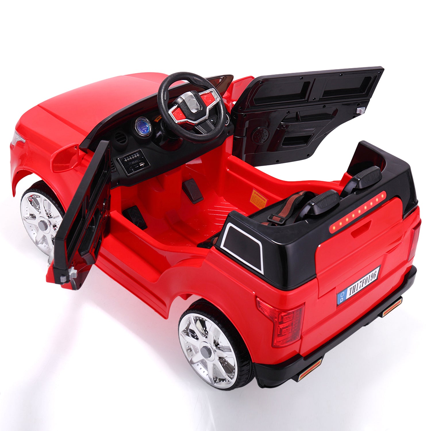This is our fantastic and functional UWR-Nite Kids powered ride-on car for your lovely children. The battery-powered vehicle has two ways to operate. Parent can control this toy car by providing remote control, which promotes parent-child interaction. And it also allows children to freely control it to move forward, backward or stop with the press of several switches. Its beautiful working lights and doors add to the sense of being in a real car while the auto power-off protection system it contains increases its safety. The comfortable seat and mp3 aux provide an enjoyable environment for your babies when playing. The retractable handle and wheels help you transport the electric vehicle when not running. This is a perfect gift for your kids.