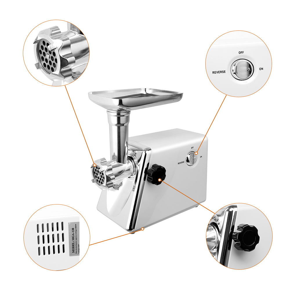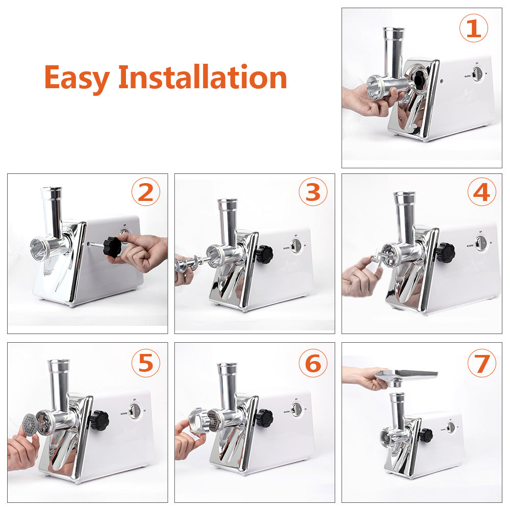 The meat grinder is mainly used for the family kitchen, where you are producing minced meat to make delicious foods. It features a fashionable design and powerful function. Therefore, the electric meat grinder is both simple and practical. With the lightweight and portable, it is easy to use. This grinder, with a power-driven design, is much labor-saving to operate. Crafted from food-grade materials, it is completely safe, rust-resistant, and easy to clean. The flat base sits firmly on the table so you can concentrate on your work. Don't hesitate to bring it home! It surely is worth your investment!